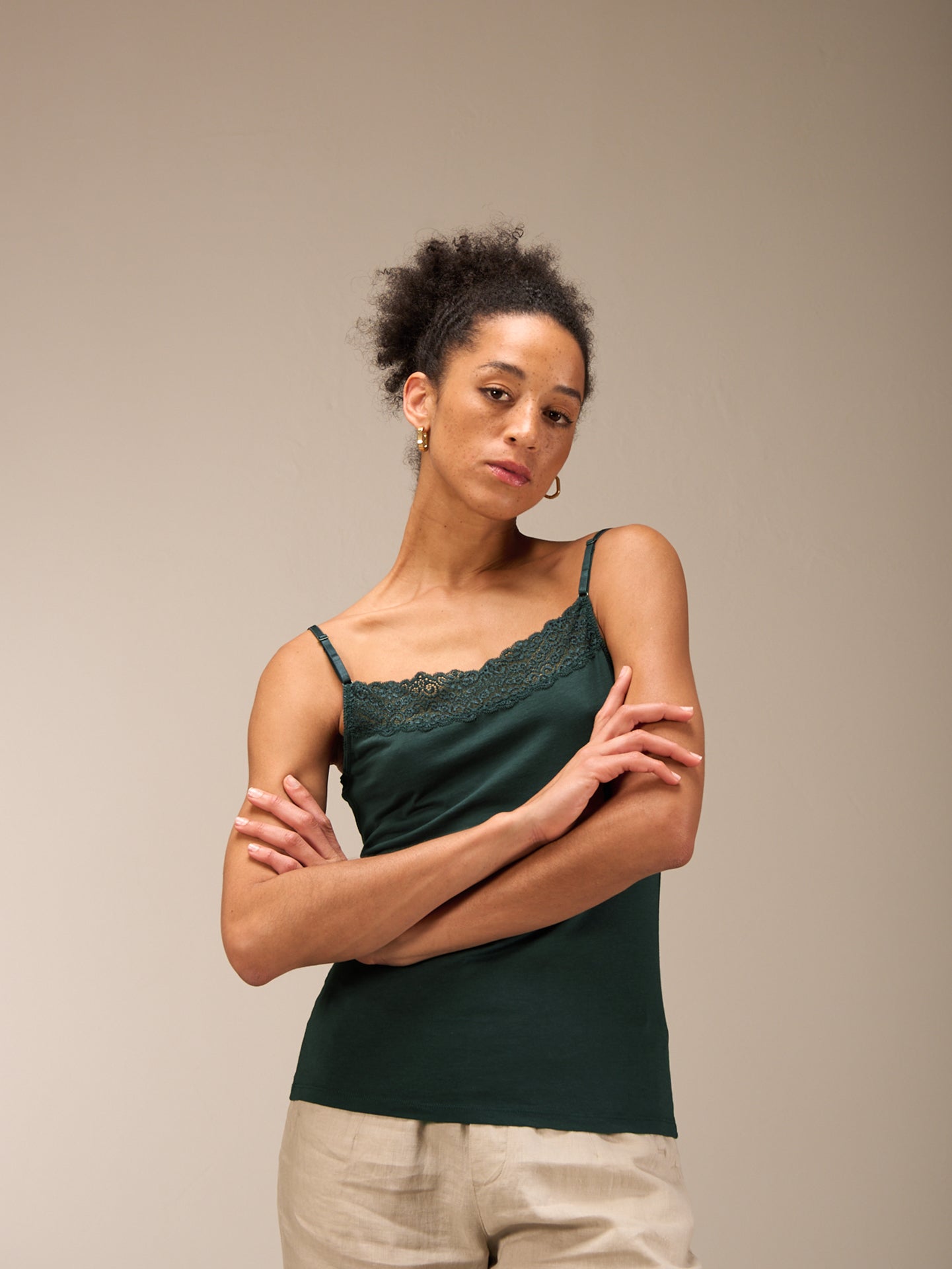 Trägertop mit Spitzenbesatz