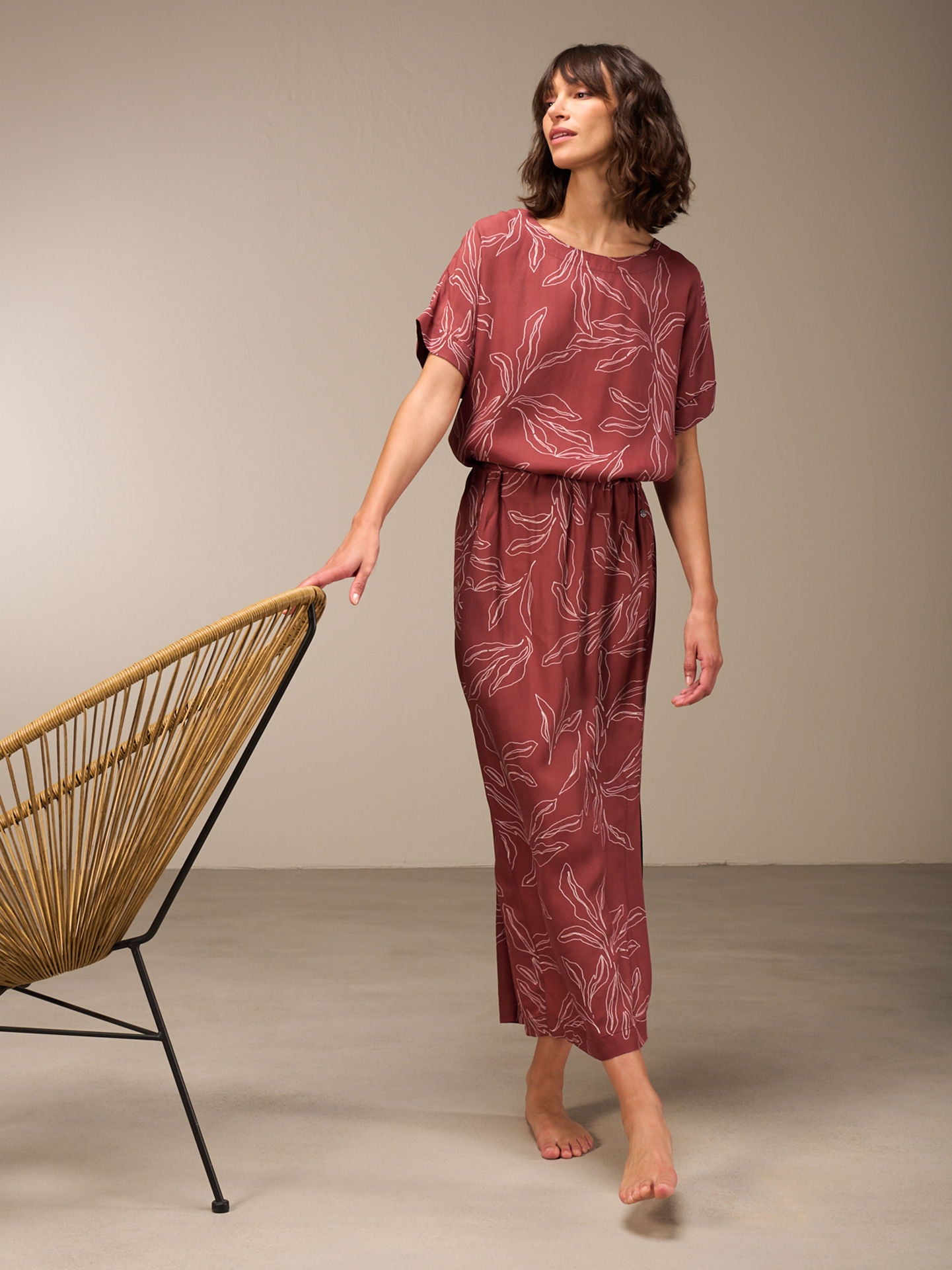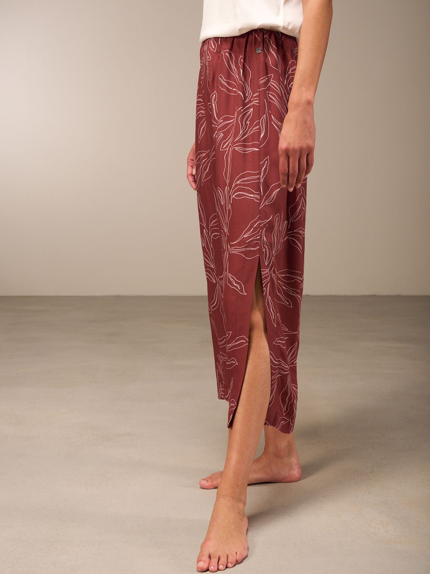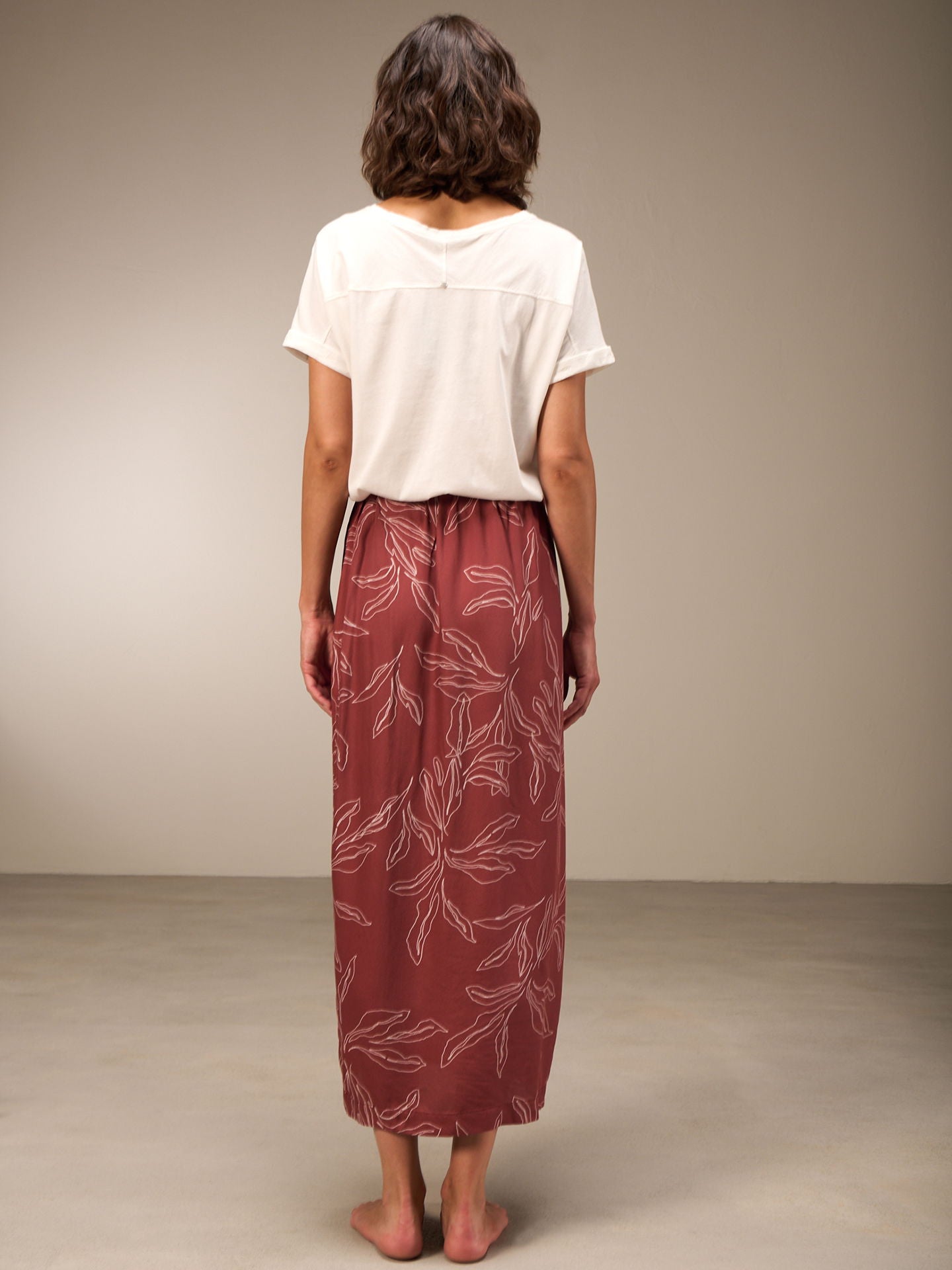 Blickdichter schlichter Rock mit bequemen Gummizug und einem raffiniertem Schlitz für gute Bewegungsfreiheit. Die leichte Crepeoptik sorgt für eine fliessende und feine Struktur.