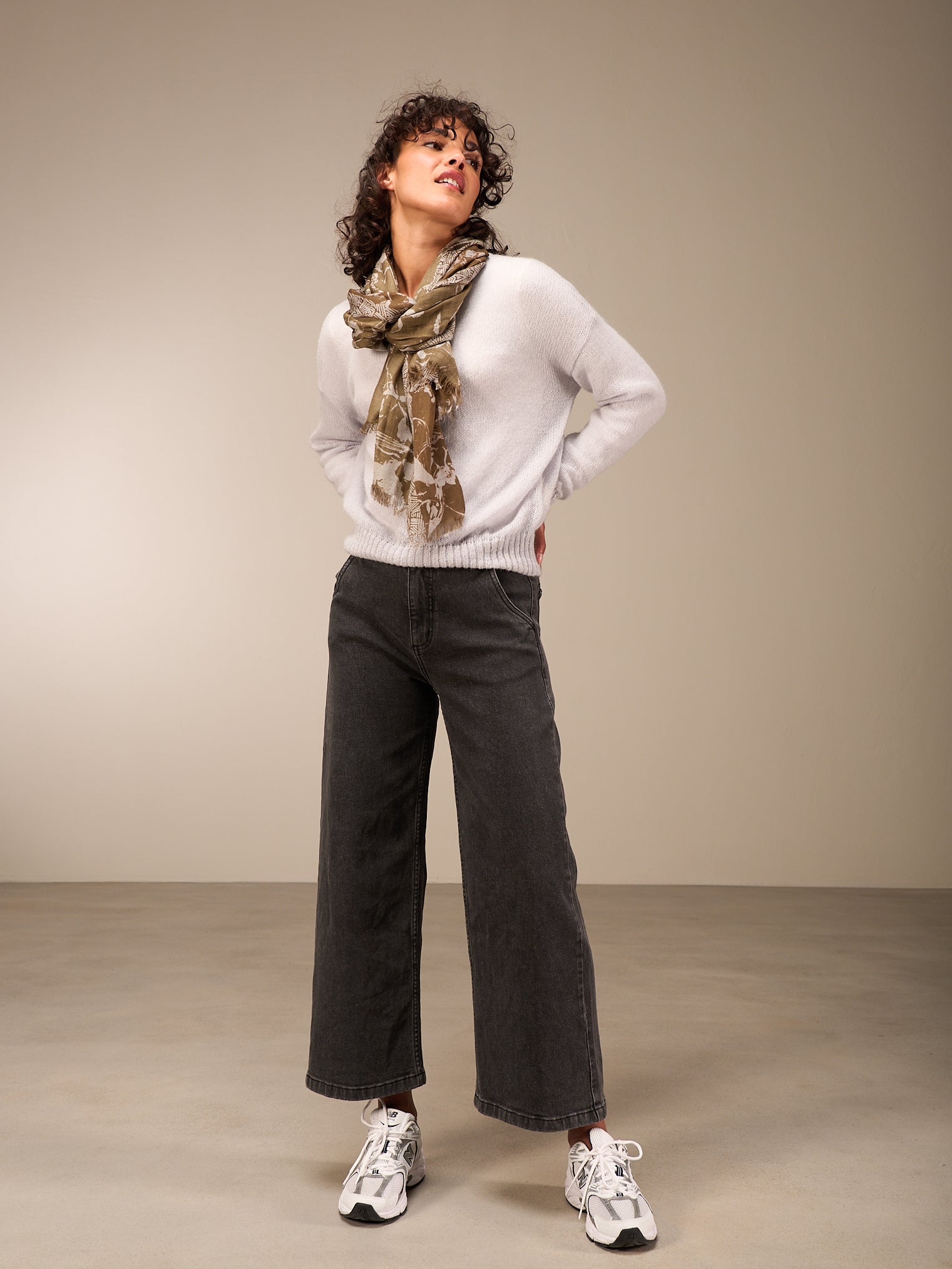 Hochwertiger Schal mit handgezeichnetem Alloverprint in der Grösse 70x200cm. 100% Wolle mit einer gewobenen Kante und kurzen Fransen.
