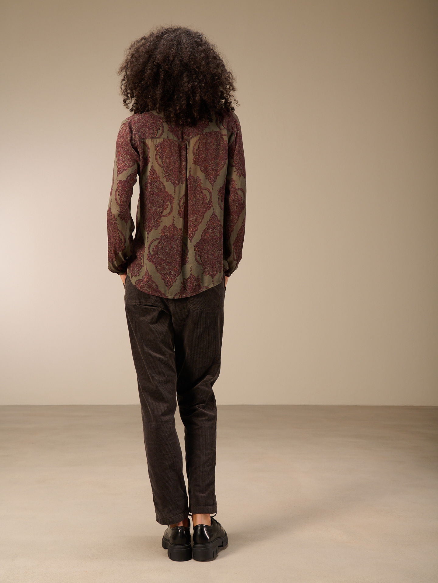 Gerade geschnittene Bluse mit langen Ärmeln die durch den leichten Elastikbund viele Stylemöglichkeiten bietet. Der V-Ausschnitt und eine attraktive schmale Knopfleiste runden den Look der Bluse ab.