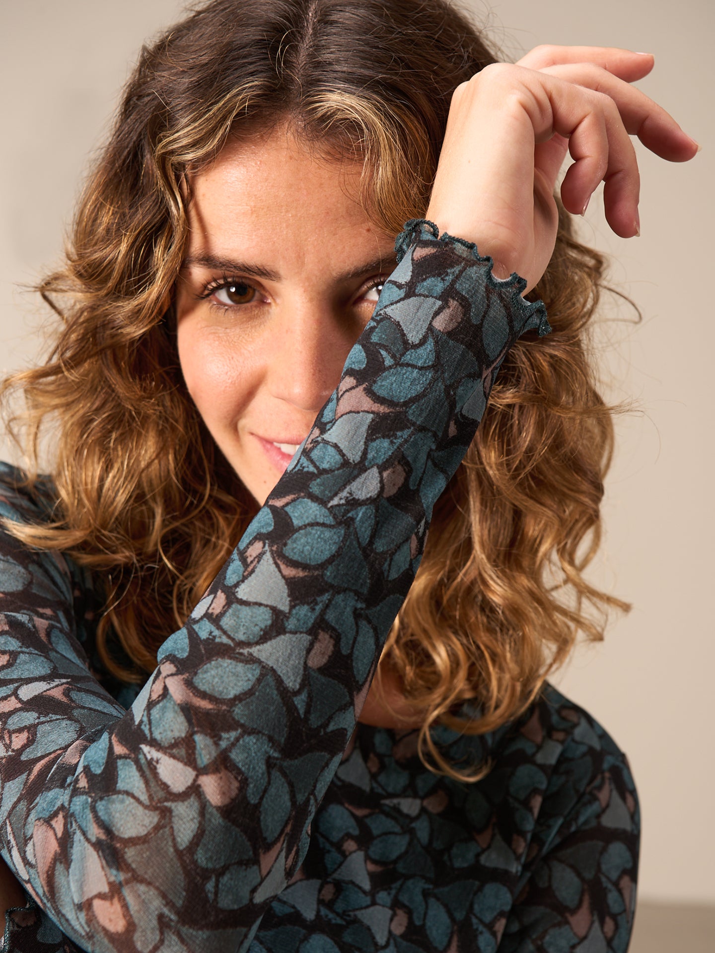 Körperbetontes Langarmshirt mit rundem Halsausschnitt in angesagter feiner Netzoptik mit Jersey Futter.