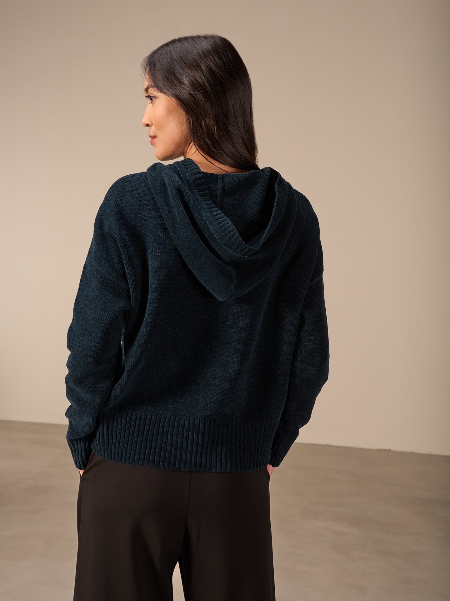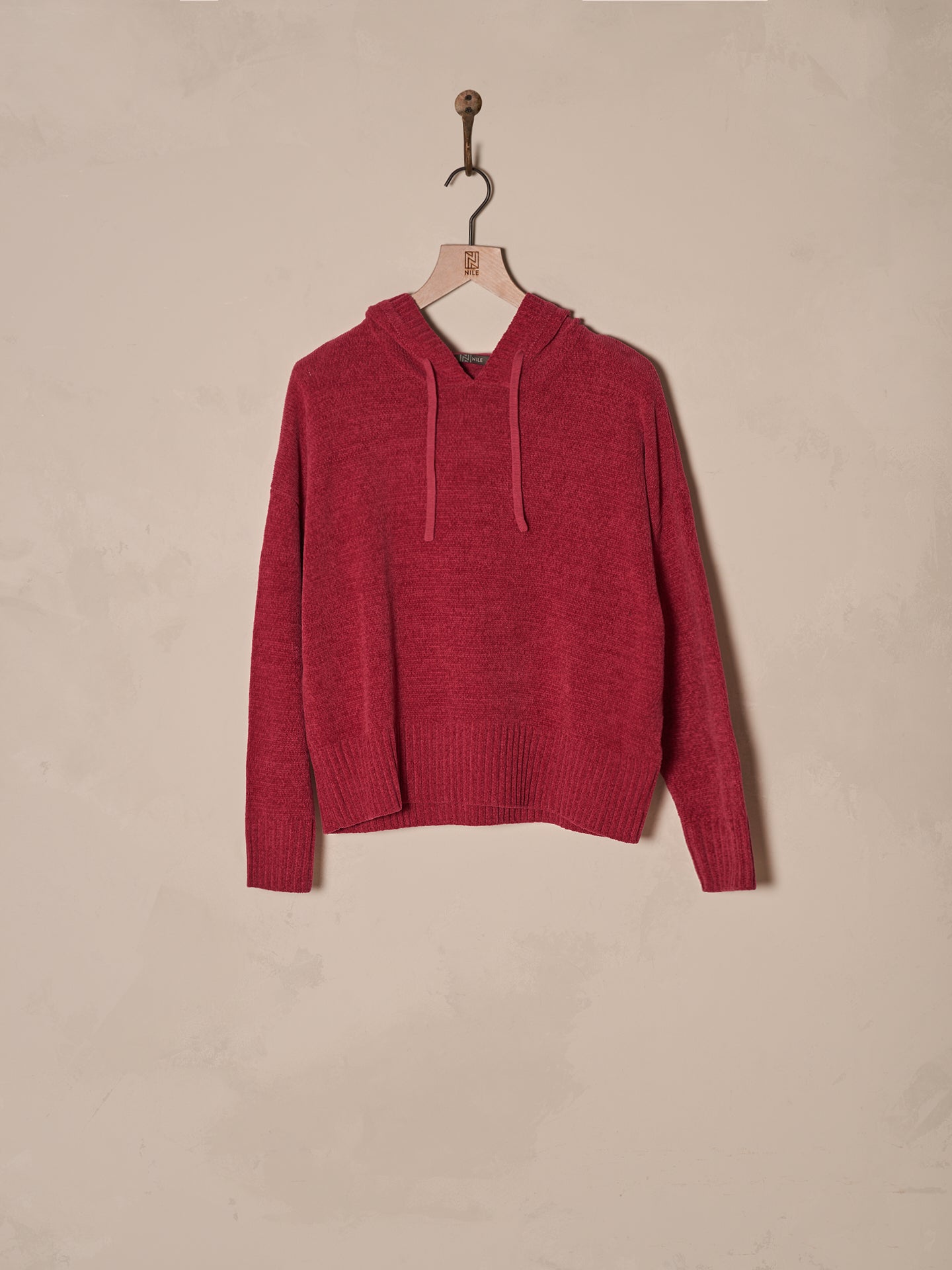 Locker geschnittener Kapuzenpullover mit Rippenborte an den Abschlüssen aus flauschigem Chenillegarn.