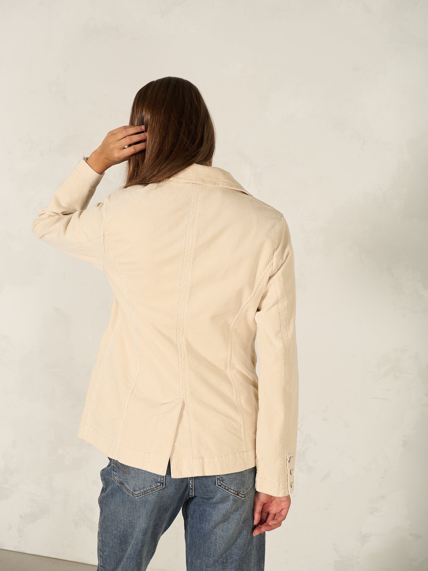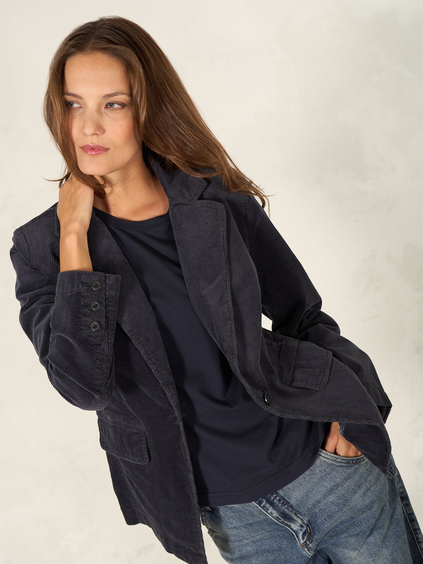 Loose-fitting, super comfortable blazer with a lapel collar and piped pockets in velvety ribbed cord with a soft feel.