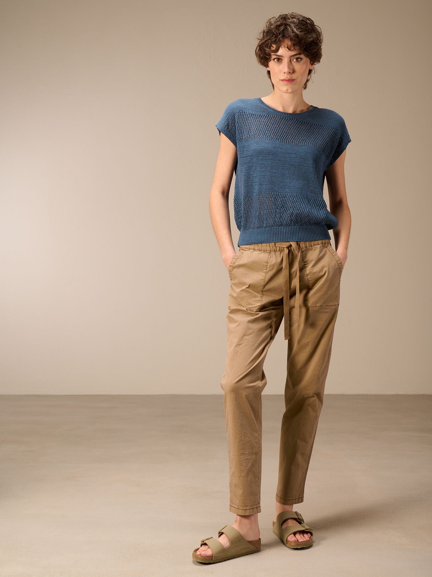 Casual pants with a sporty cut and elasticated waistband. Piece-dyed. Irregularities in the color mean that every piece is unique. The faded effect is enhanced.