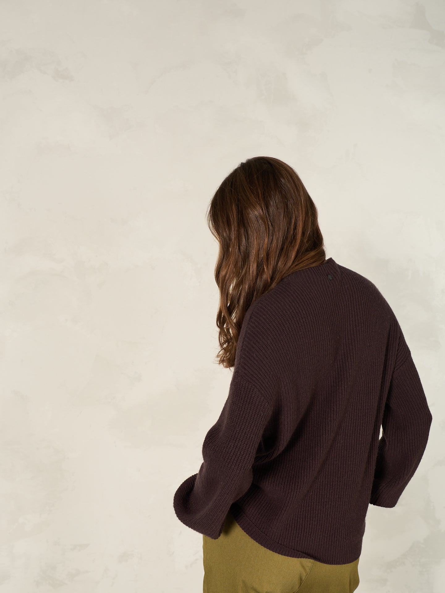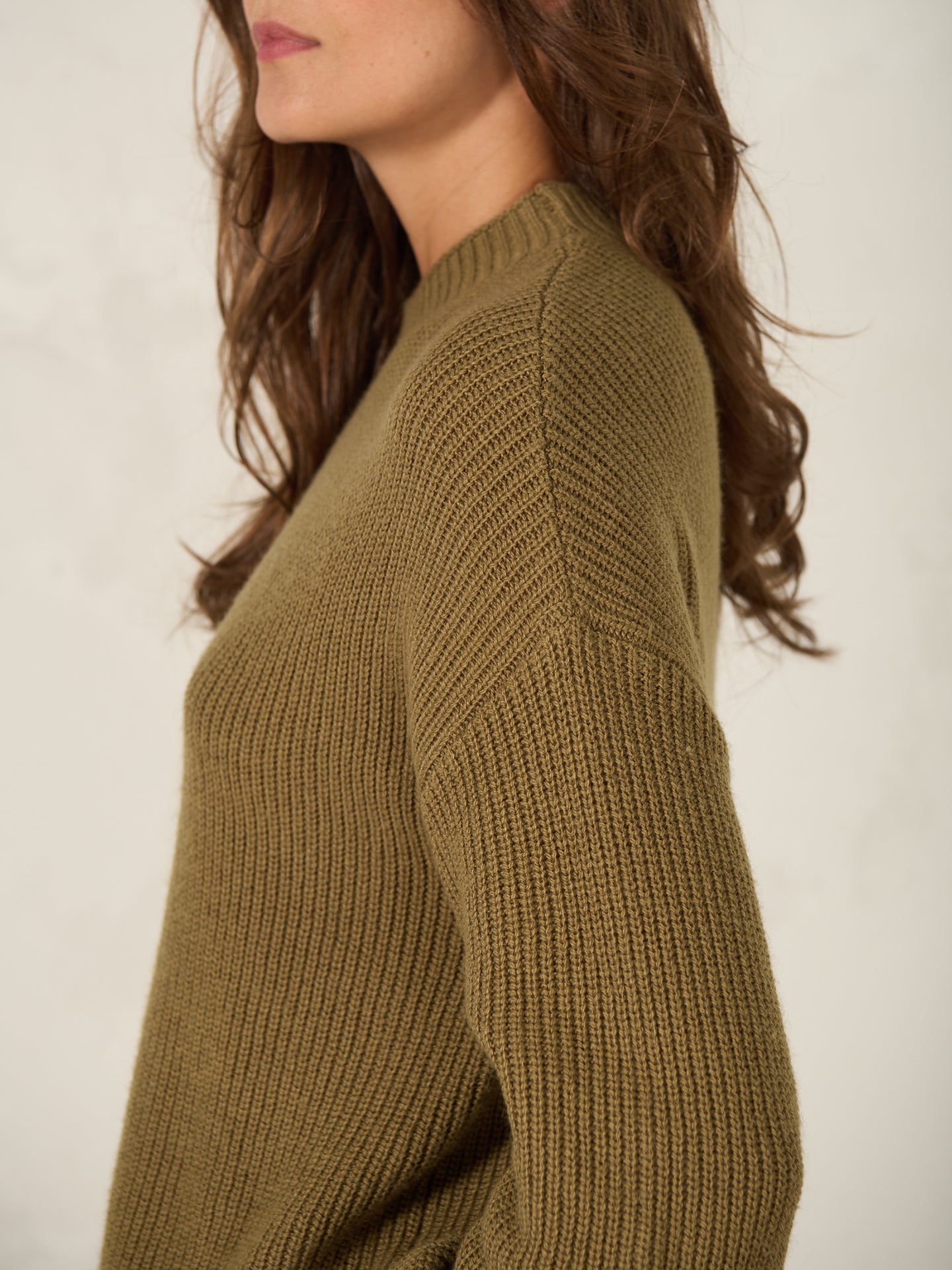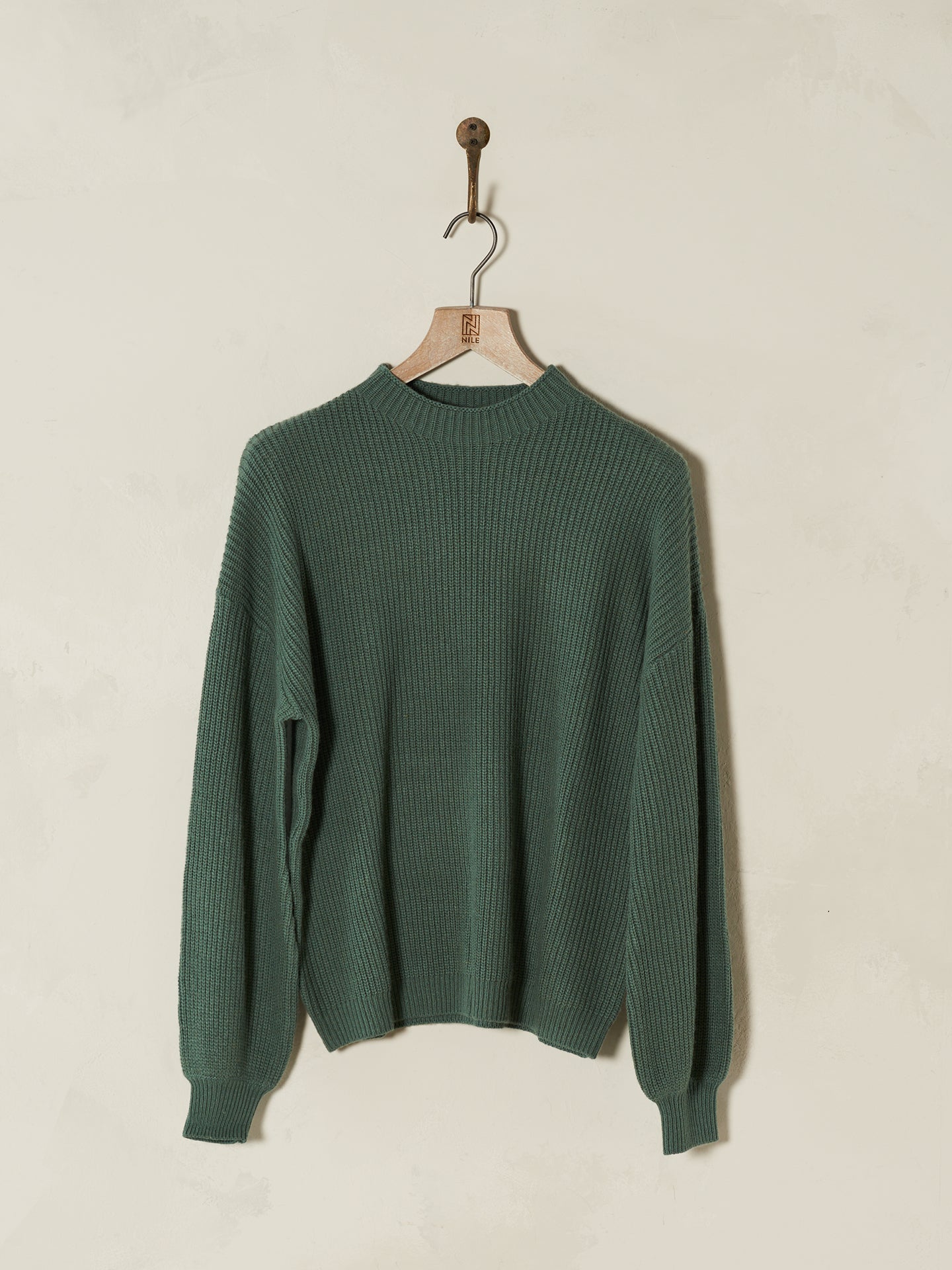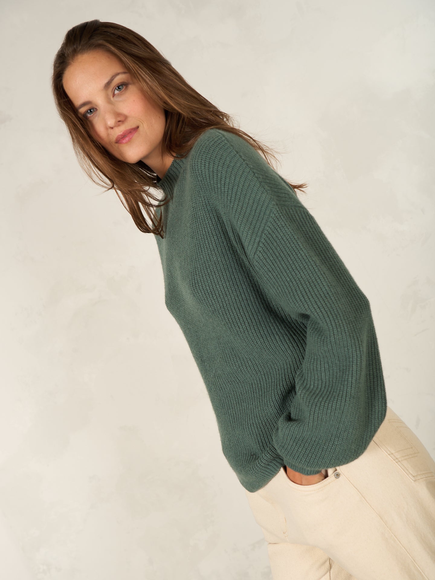 Loose-fit knitted pullover in a ribbed look with a short stand-up collar, dropped shoulders and decorative bishop sleeves.