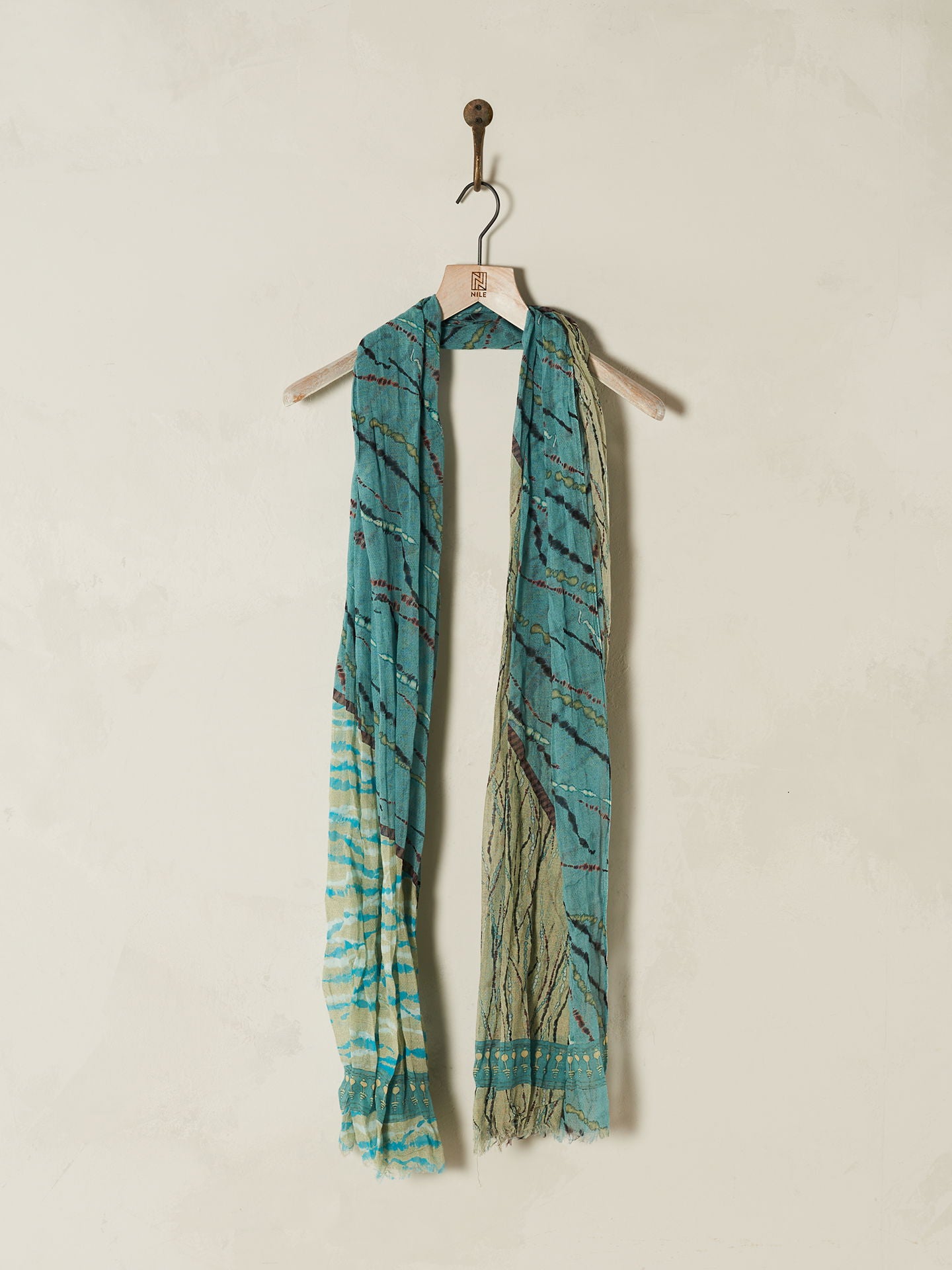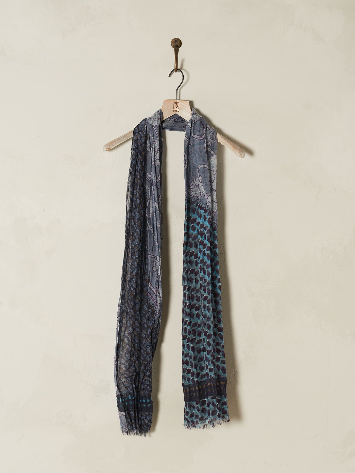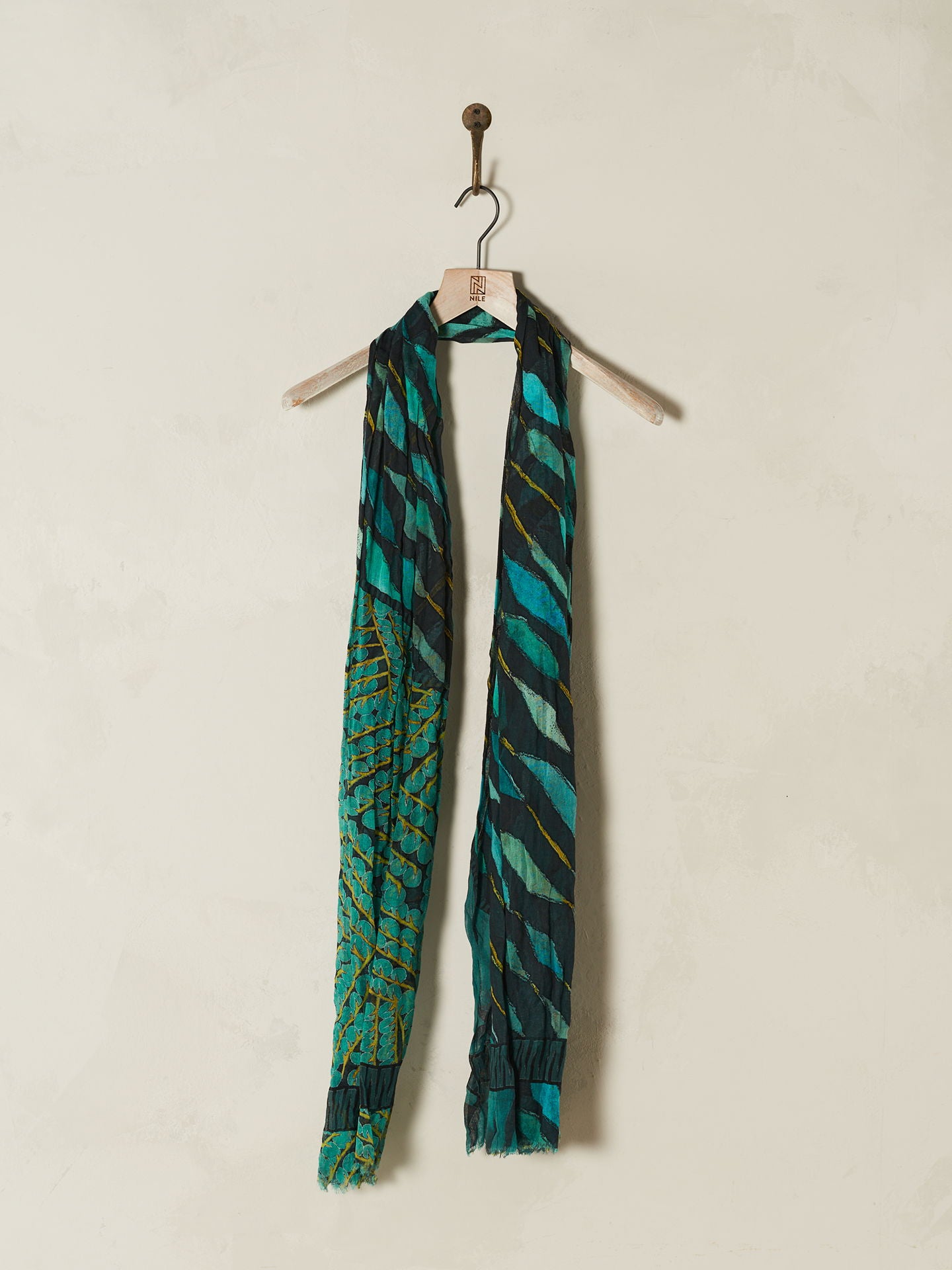 The large 100x200cm size is perfect for varied styling. Casually draped around the neck and shoulders, this scarf will instantly enhance any outfit and become a favourite accessory. The scarf is printed all over with hand-drawn prints and has shorter edges with fringes. 100% organic cotton from certified cultivation.