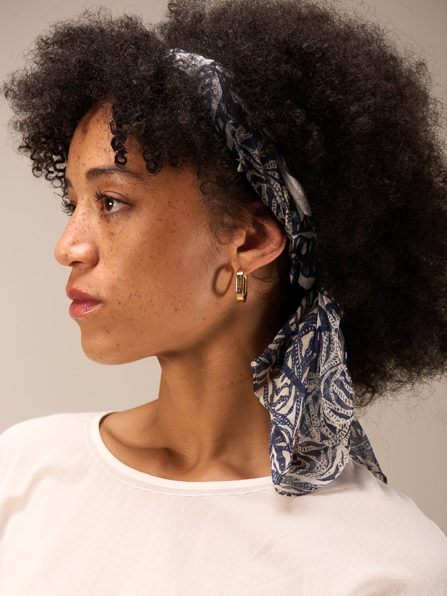 Casual scarf in a trendy square shape. Size 80 x 80 cm enhances any outfit in an instant and will become a favorite accessory. The scarf is printed all over, the edges are stitched and made from 100% certified organic cotton.