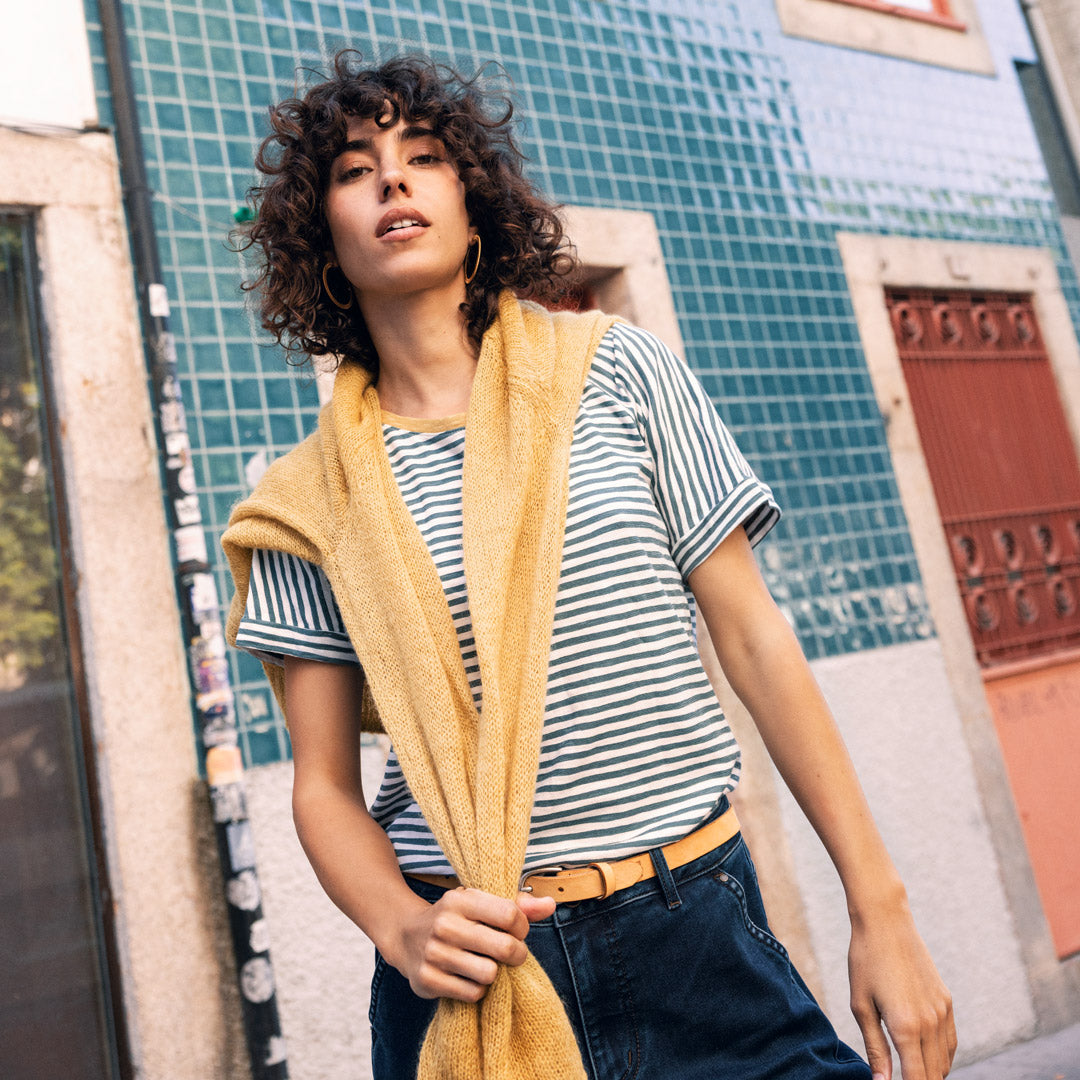 Qu’elles soient fines ou affirmées, les rayures se dévoilent dans la nouvelle collection sous leur jour le plus polyvalent et apportent des accents élégants aux t-shirts côtelés, aux blouses en coton biologique et aux pulls en maille décontractés.