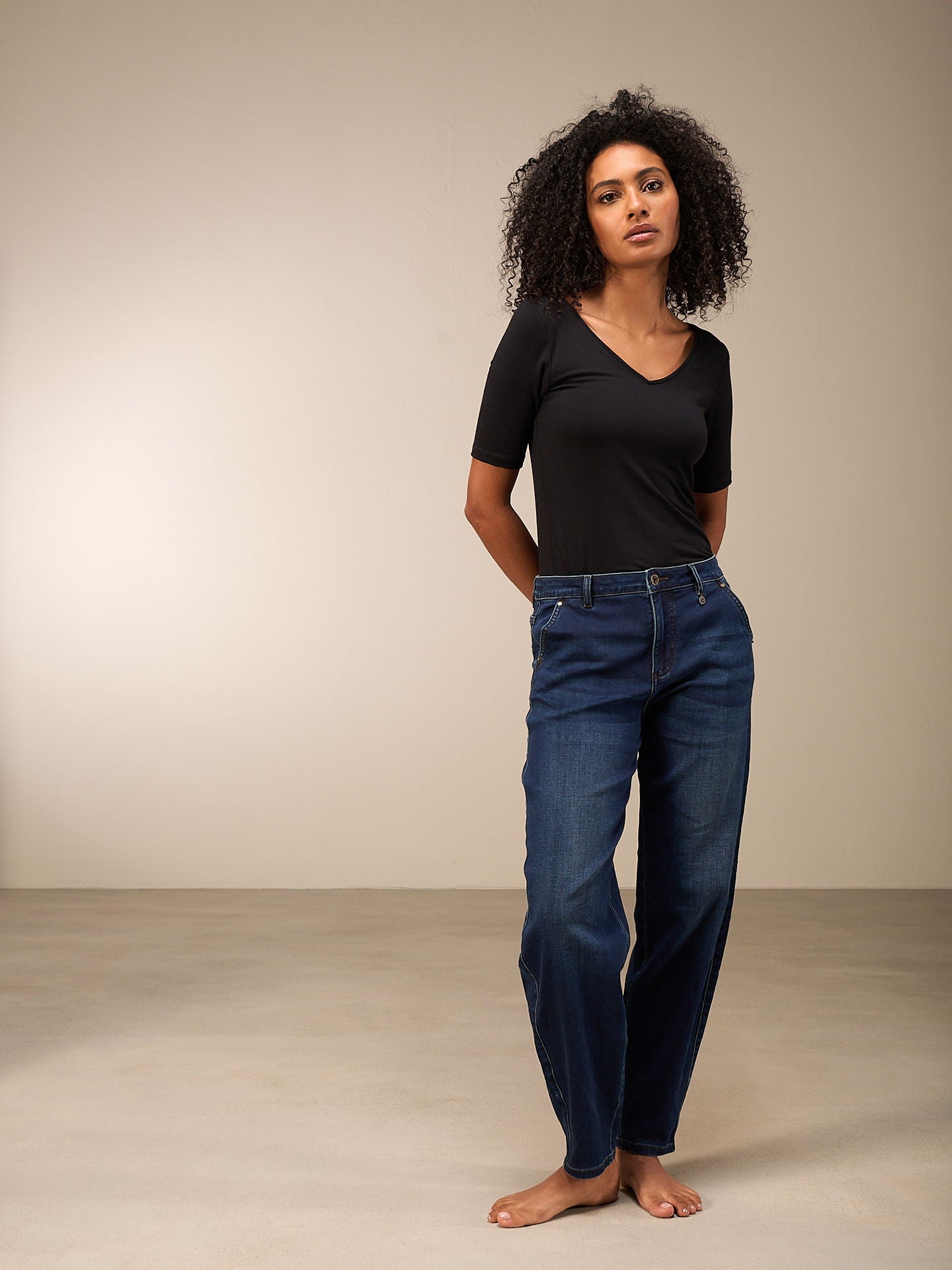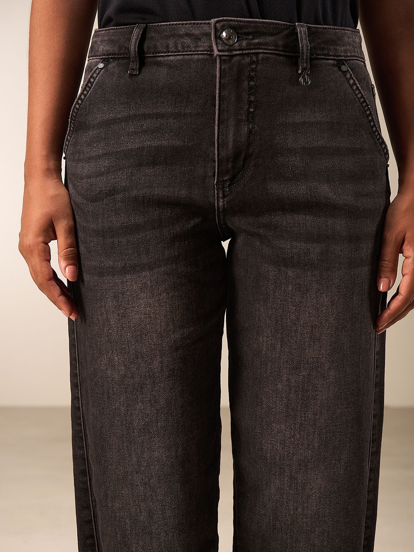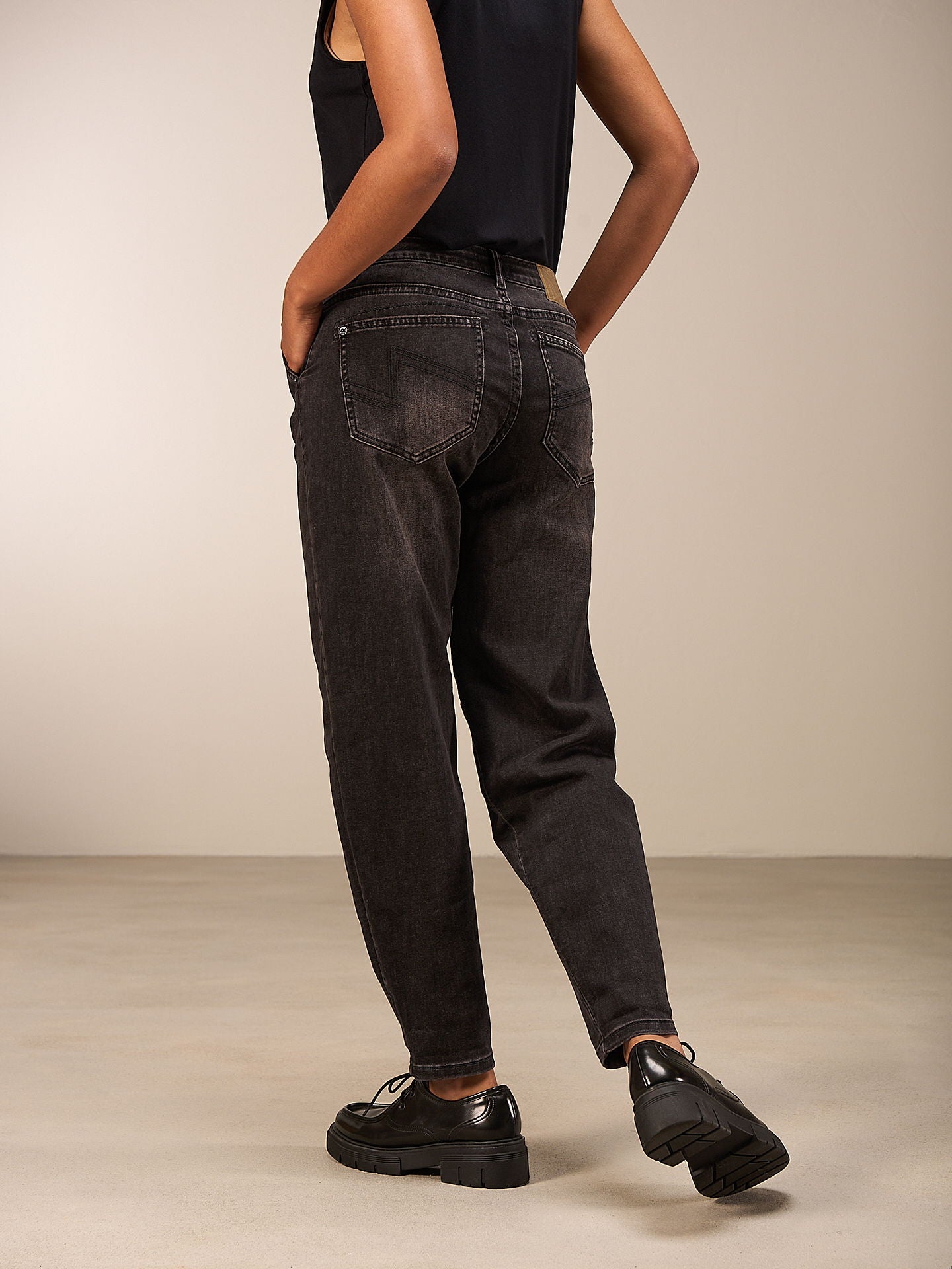 Pantalon à la coupe décontractée avec une taille moyenne et une forme en O. Les jambes sont retroussées et des bandes décoratives sur les revers rehaussent encore le jeans. Les irrégularités de couleur et l’effet délavé accentué sont voulus et rendent chaque pièce unique. Le produit peut déteindre sur les vêtements et les surfaces.