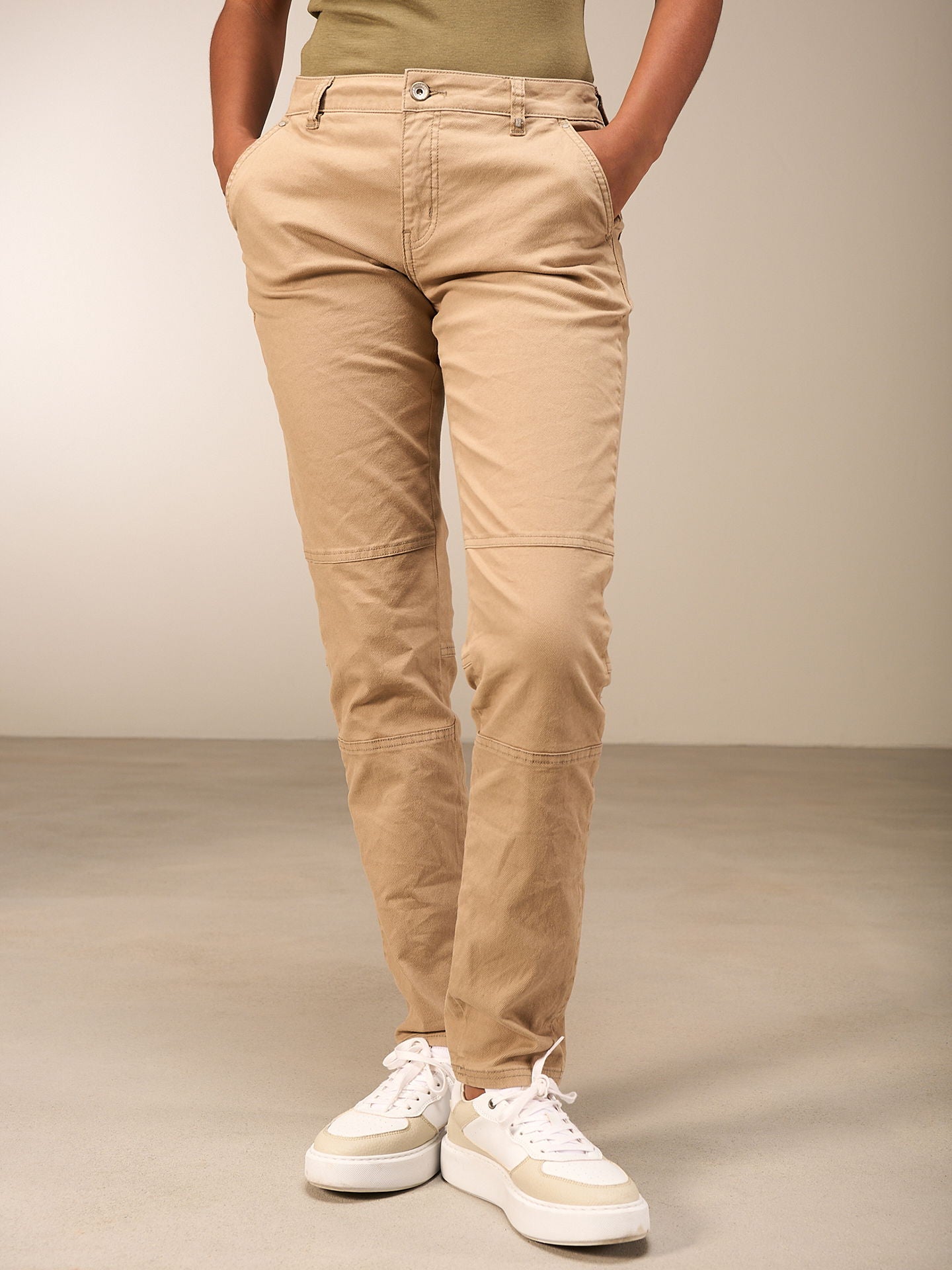 Pantalon élastique moulant à la structure fine dans le style worker avec une taille basse et des passants de ceinture. Les lignes de coupe raffinées et les poches plaquées à rabat au niveau des fesses lui confèrent un look cool. Le revers roulé avec des bandes décoratives valorisent encore le pantalon. 98% coton bio issu de cultures certifiées et 2% élasthanne. Les irrégularités de la couleur rendent cette pièce unique. L'effet de décoloration s'accentue au lavage.