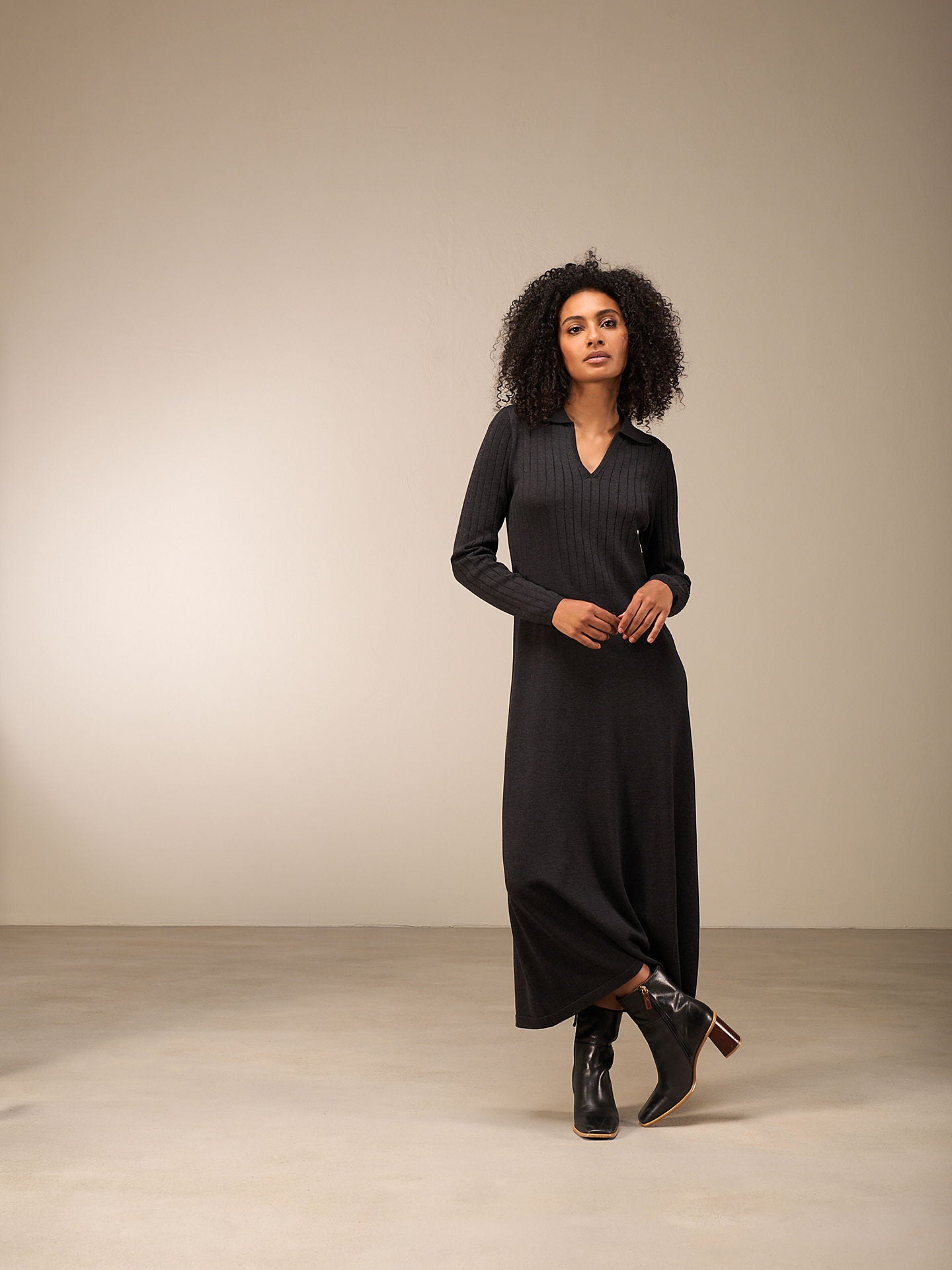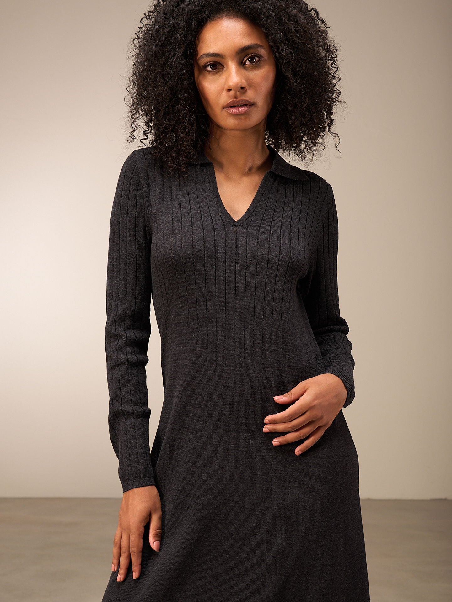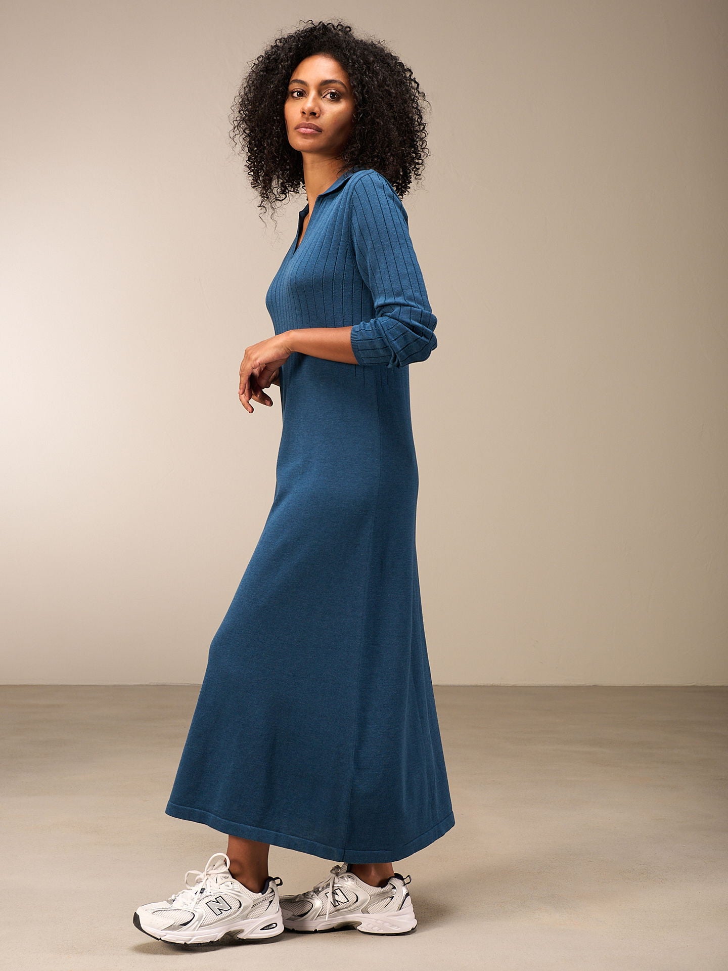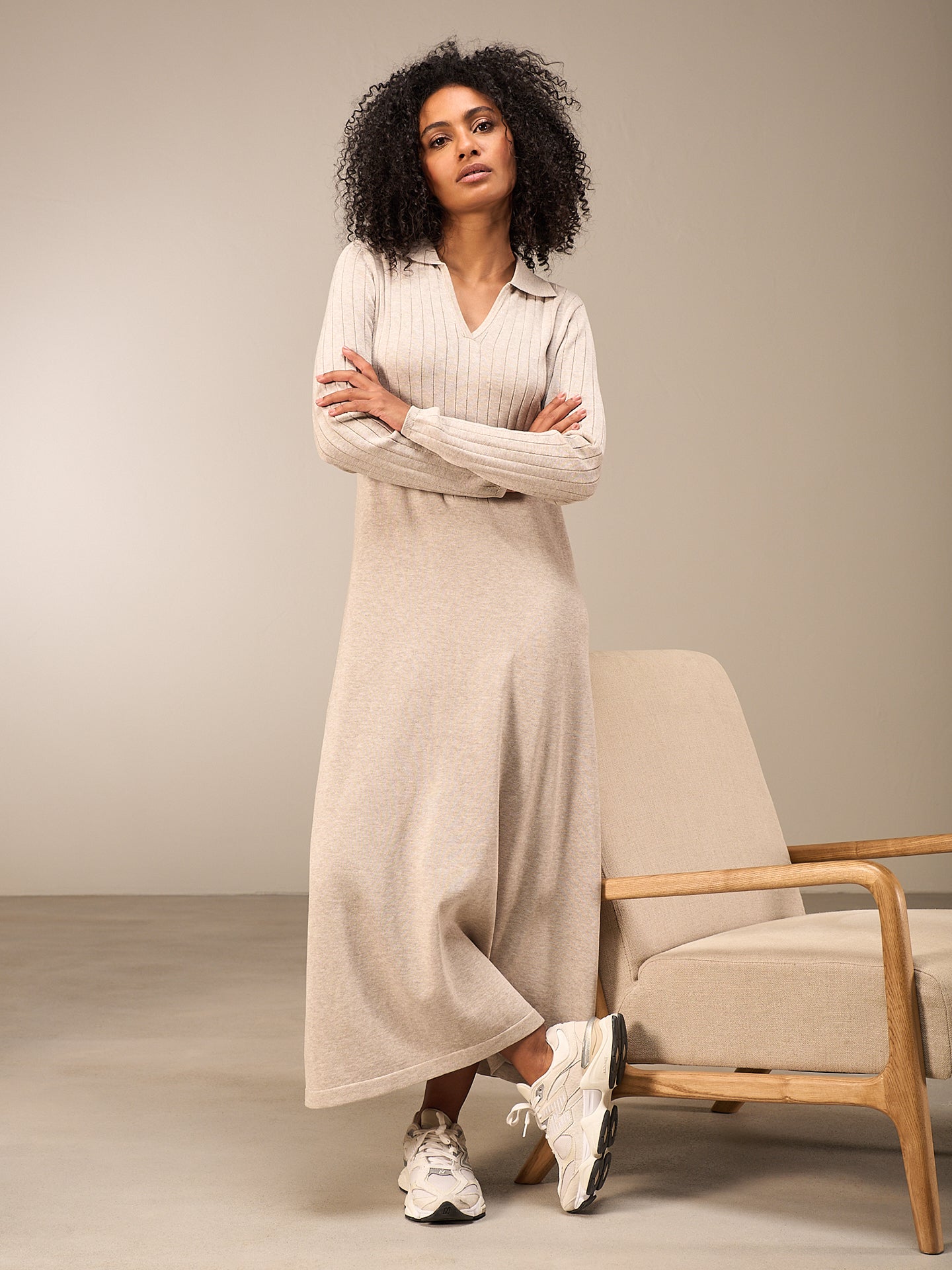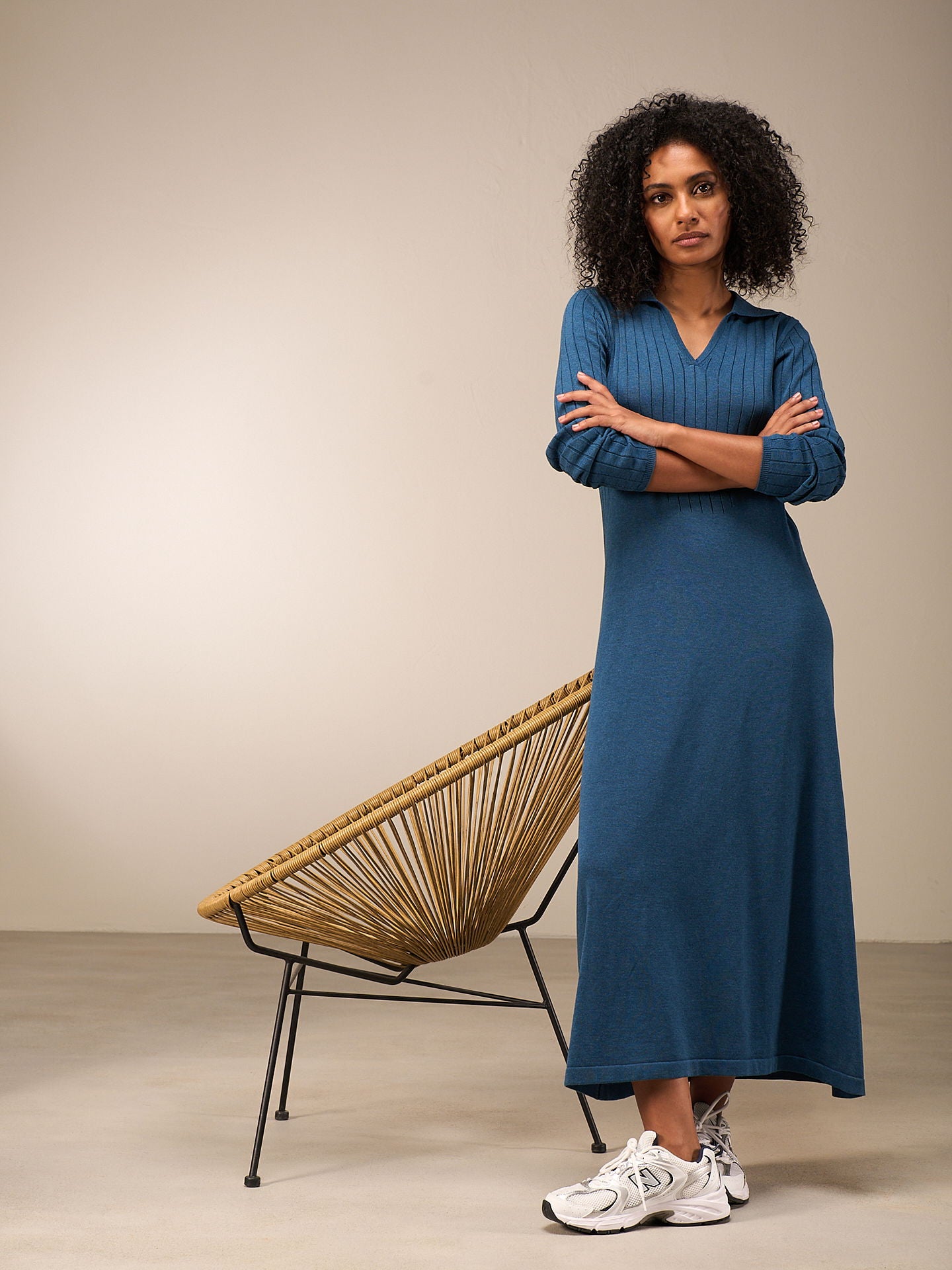 Robe mid-stricot raffinée avec un mélange de motifs tricotés qui flatte la silhouette, des manches longues avec un large motif côtelé et un col polo décoratif et une encolure en V. 60% coton issu de l’agriculture biologique OCS certifiée et 40% polyester recyclé. L'Organic Content Standard (OCS) vérifie la proportion de matériaux issus de l'agriculture biologique dans un produit fini et garantit, grâce à une traçabilité sans faille, que les indications relatives à la proportion de matériaux biologiques sont correctes.