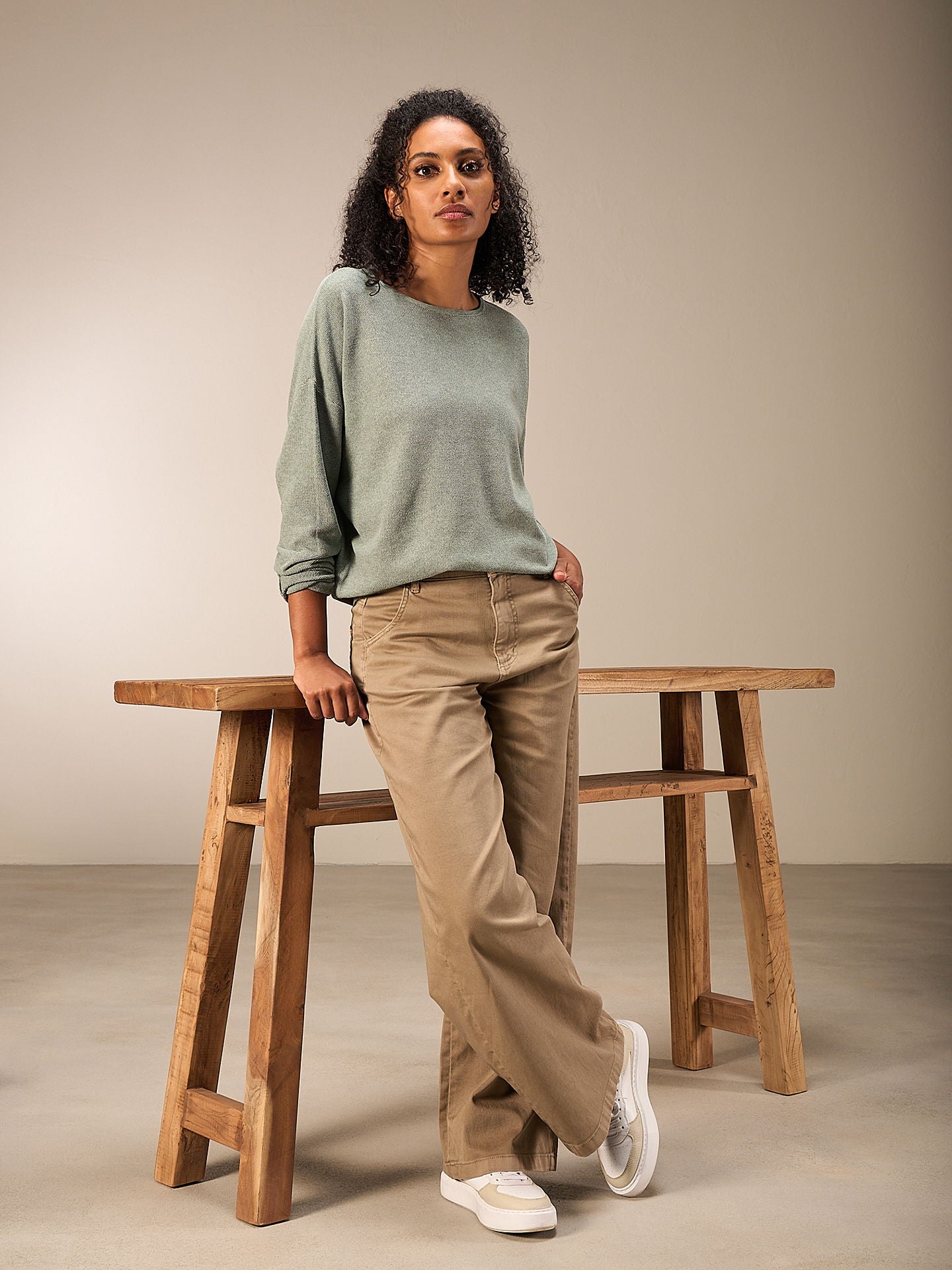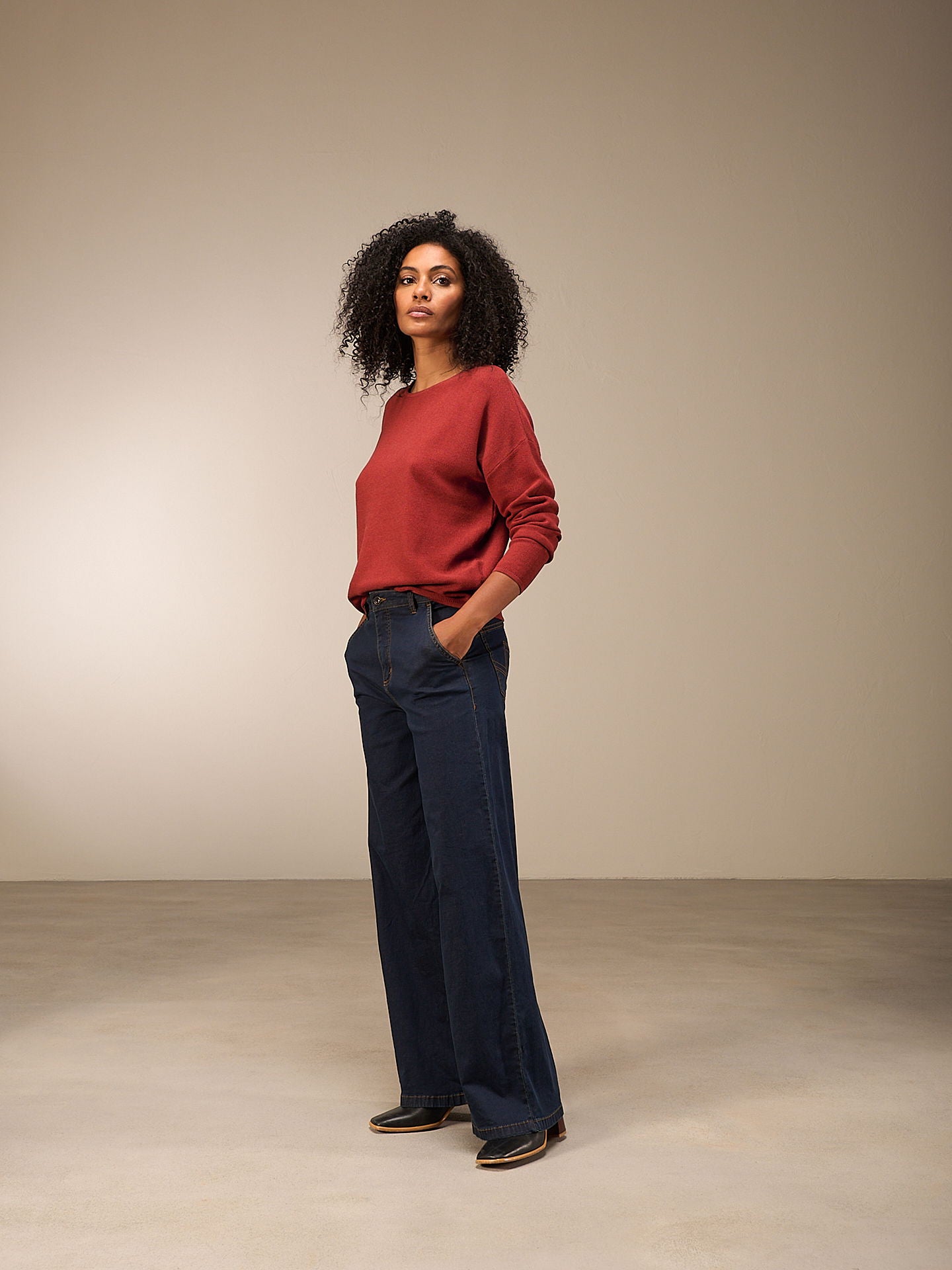 Le mannequin mesure 174 cm et porte une taille S.