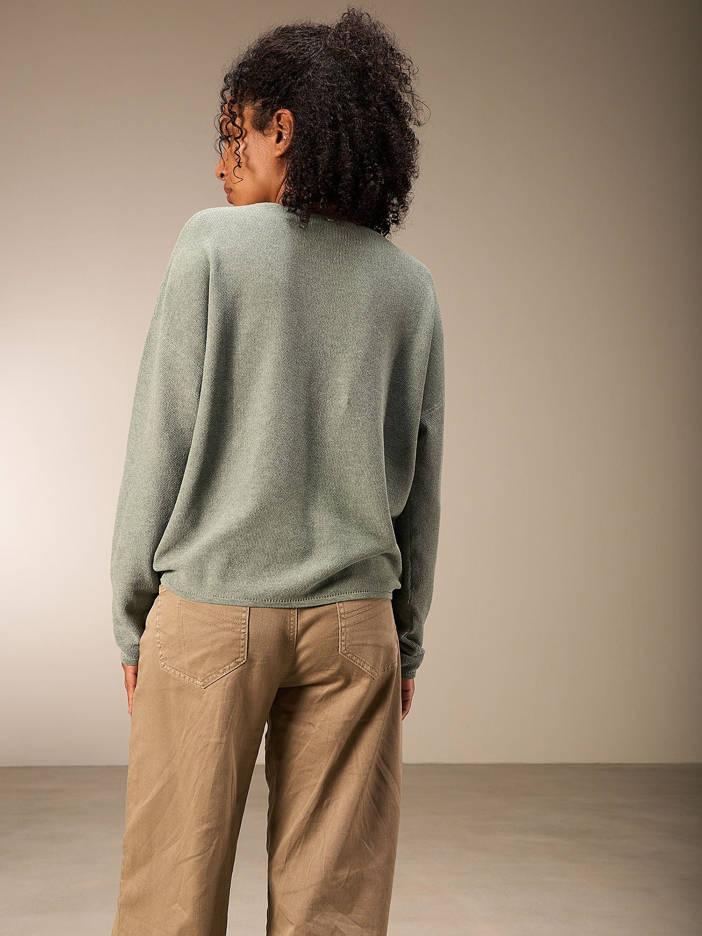 Pull décontracté avec une encolure en U et une épaule très échancrée dans un motif semi-patiné et un fil mélangé. 60% coton issu de l’agriculture biologique OCS certifiée et 40% polyester recyclé. L'Organic Content Standard (OCS) vérifie la proportion de matériaux issus de l'agriculture biologique dans un produit fini et garantit, grâce à une traçabilité sans faille, que les indications relatives à la proportion de matériaux biologiques sont correctes.