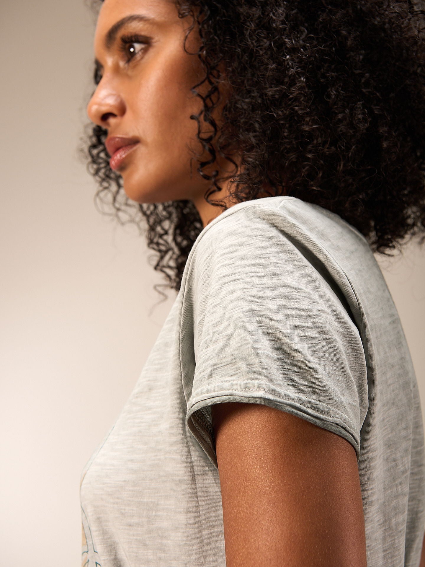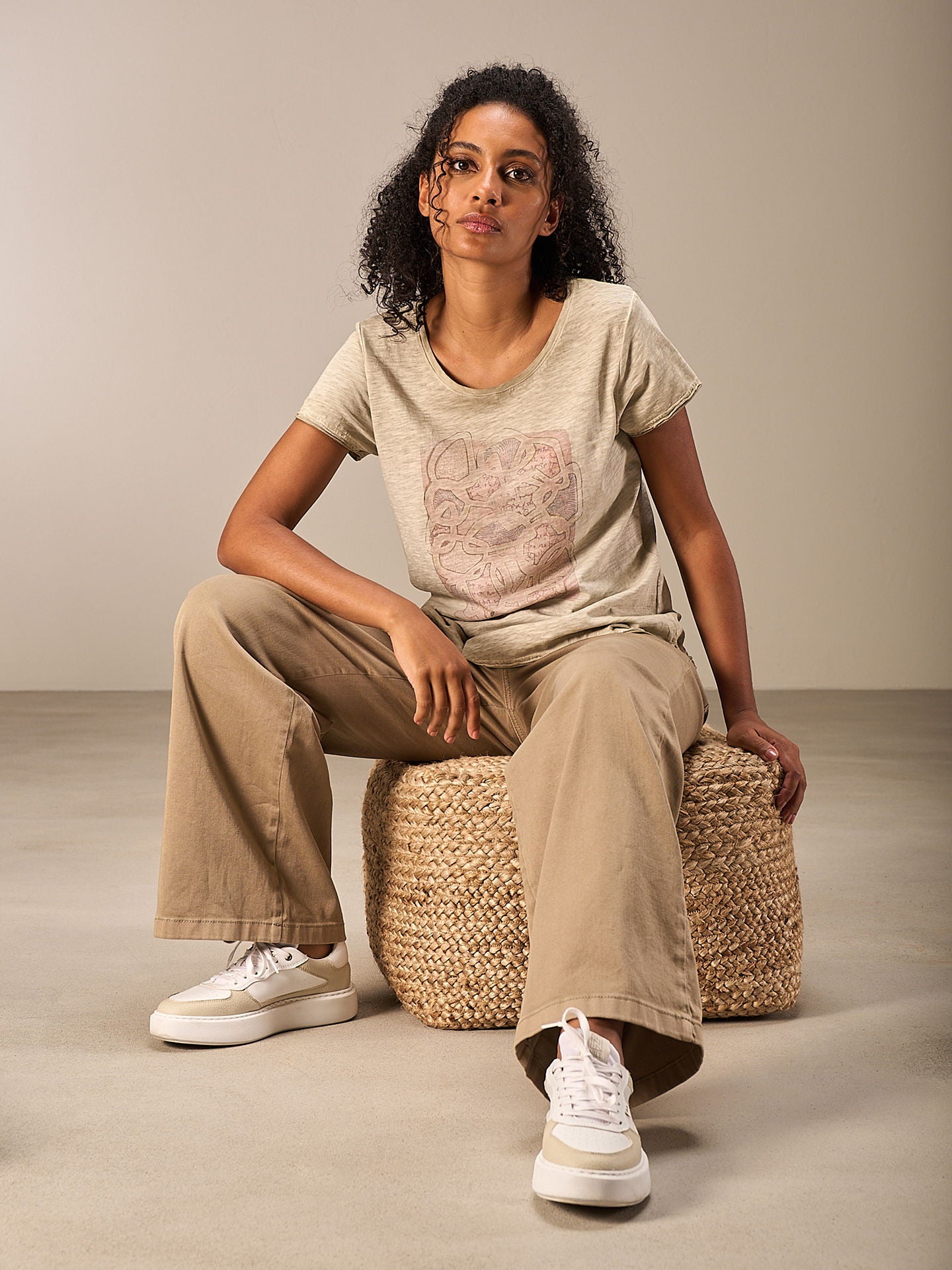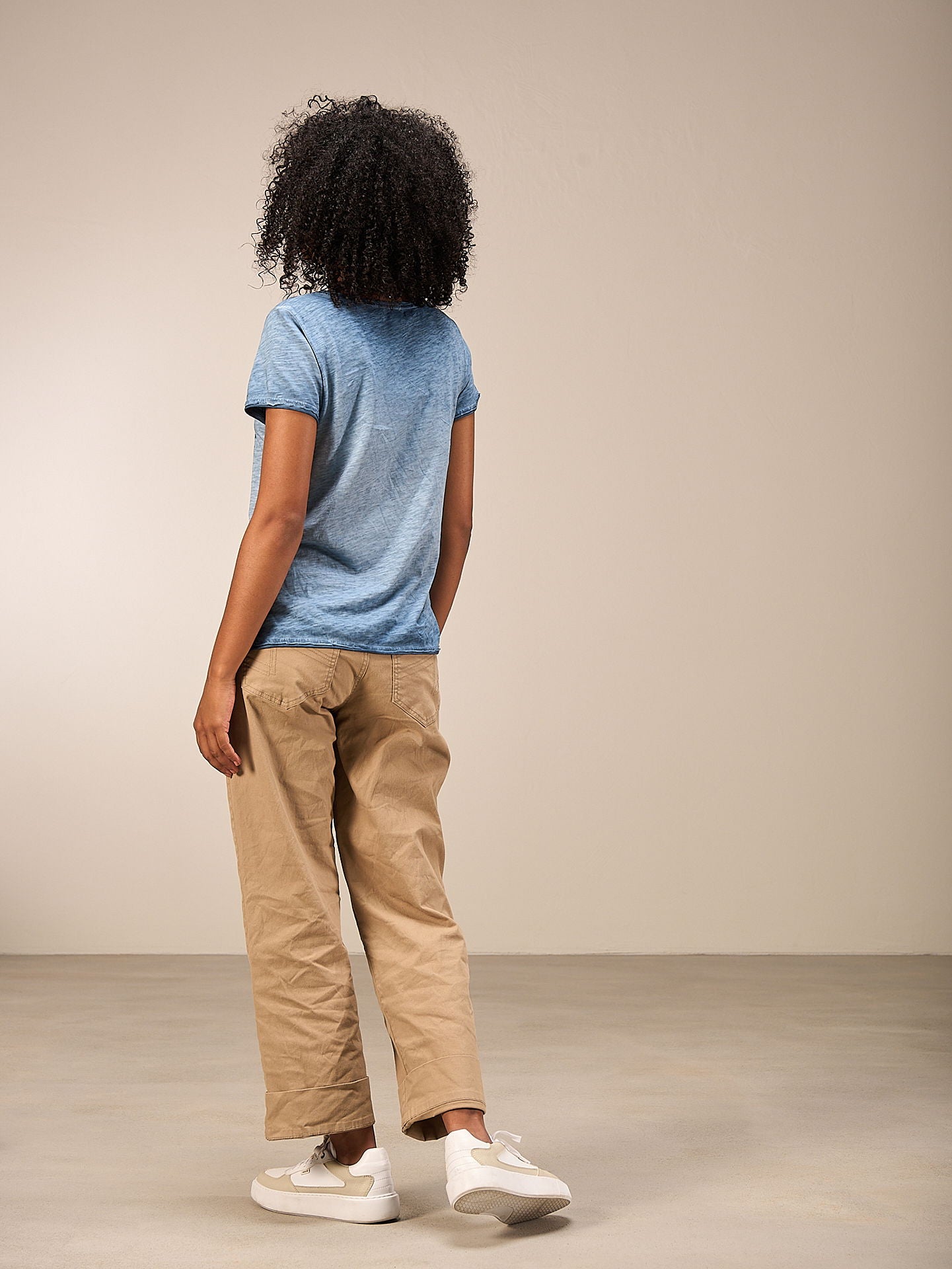T-shirt à la coupe décontractée en jersey flammé avec un imprimé placé et une encolure à bords ouverts. 100% coton de qualité bio certifié GOTS. Grâce à un procédé de teinture intérieure spécial, le t-shirt a un beau look délavé. Les irrégularités de couleur rendent chaque pièce unique. L’effet décoloré s’en trouve renforcé.