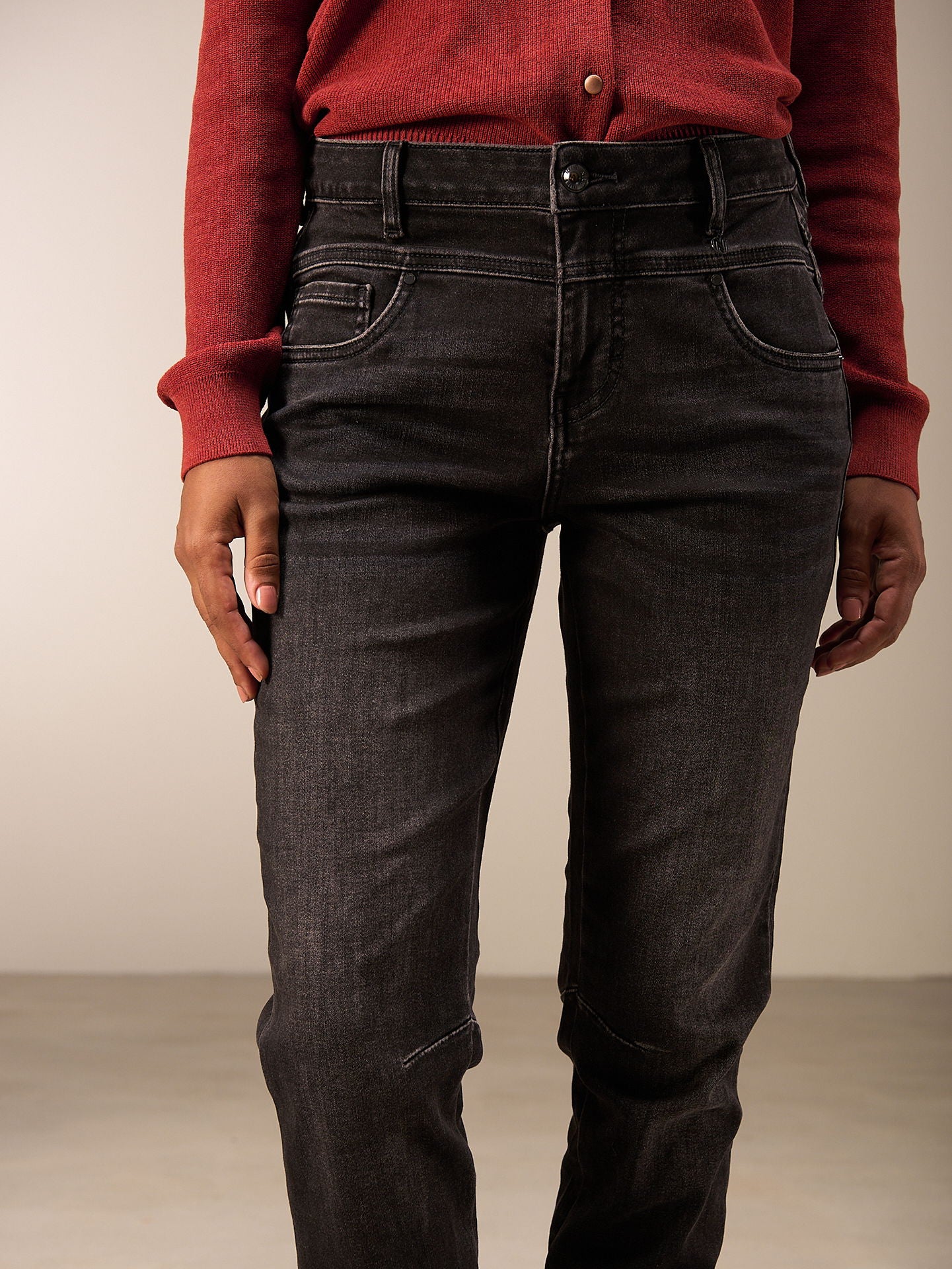 Pantalon avec coupe large au niveau des hanches. Les jambes se resserrent vers les chevilles et sont retroussées pour un look cool. Les bandes décoratives sur les revers et la petite broderie à l'entrée des poches rehaussent encore le jeans. Les irrégularités de couleur rendent chaque pièce unique. L’effet décoloré s’en trouve renforcé. Ce produit peut déteindre sur des vêtements ou des surfaces.