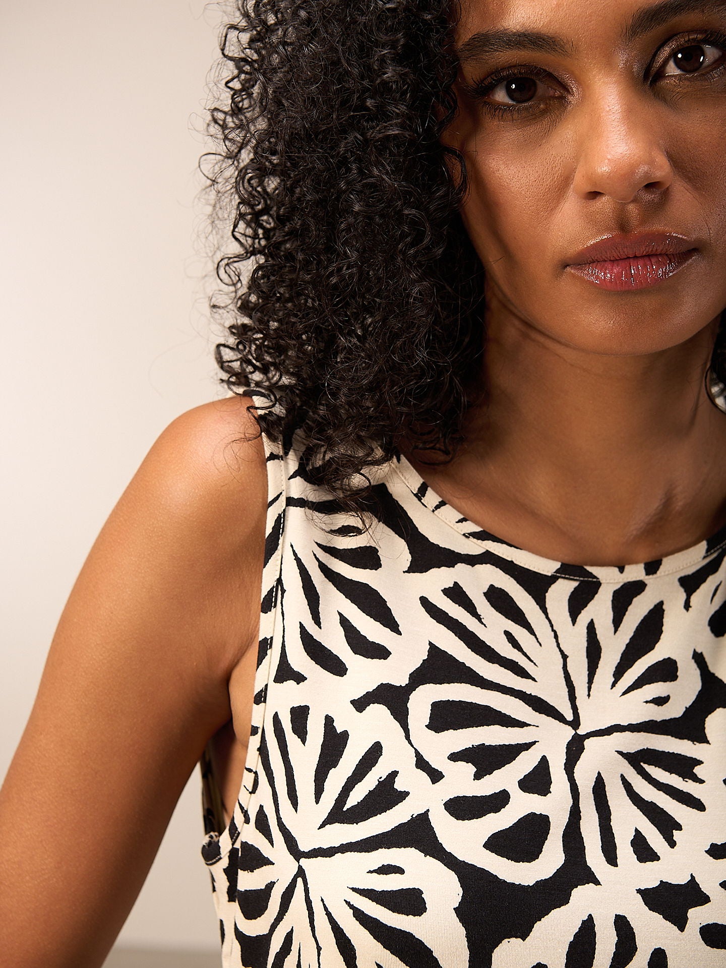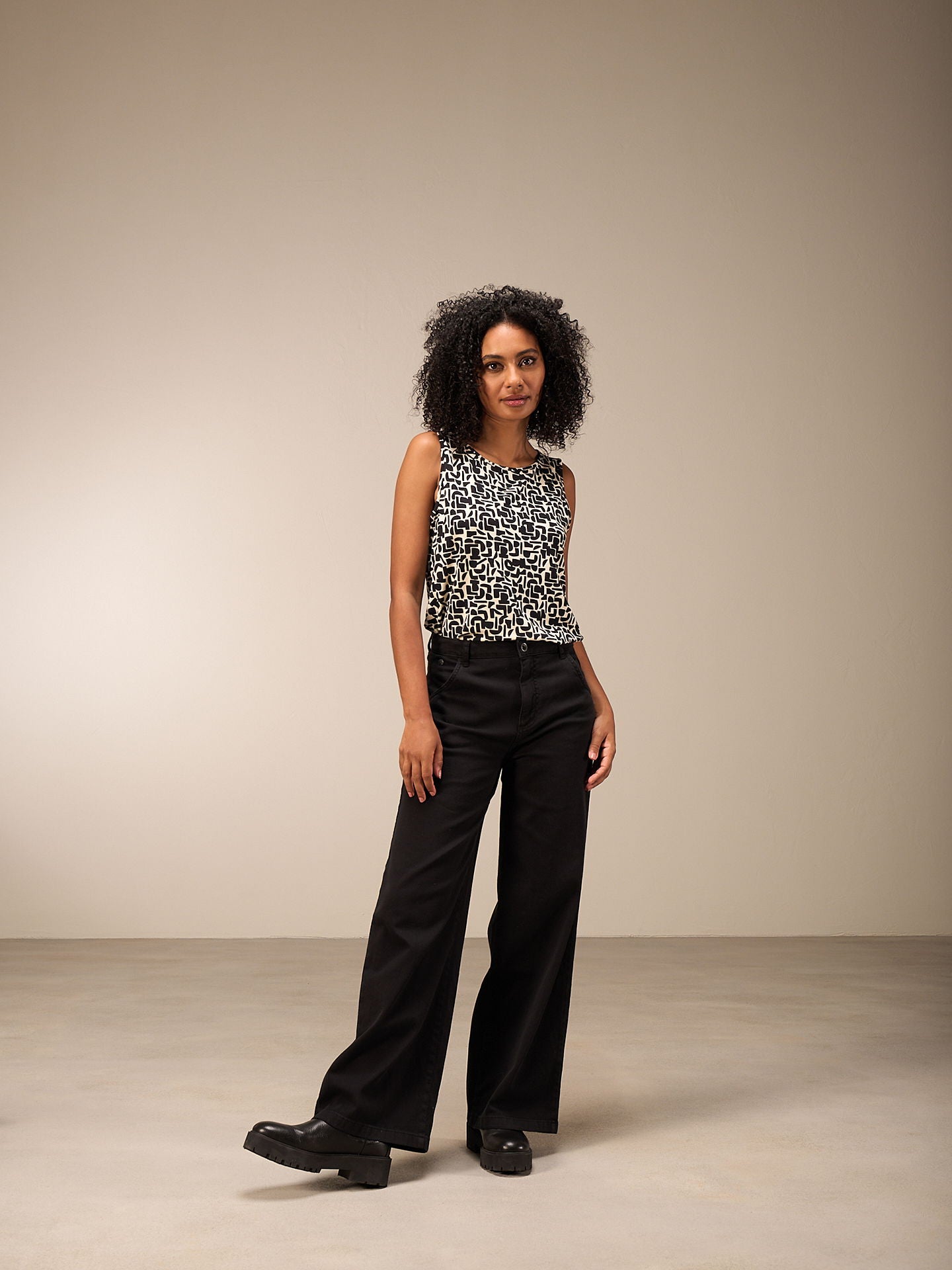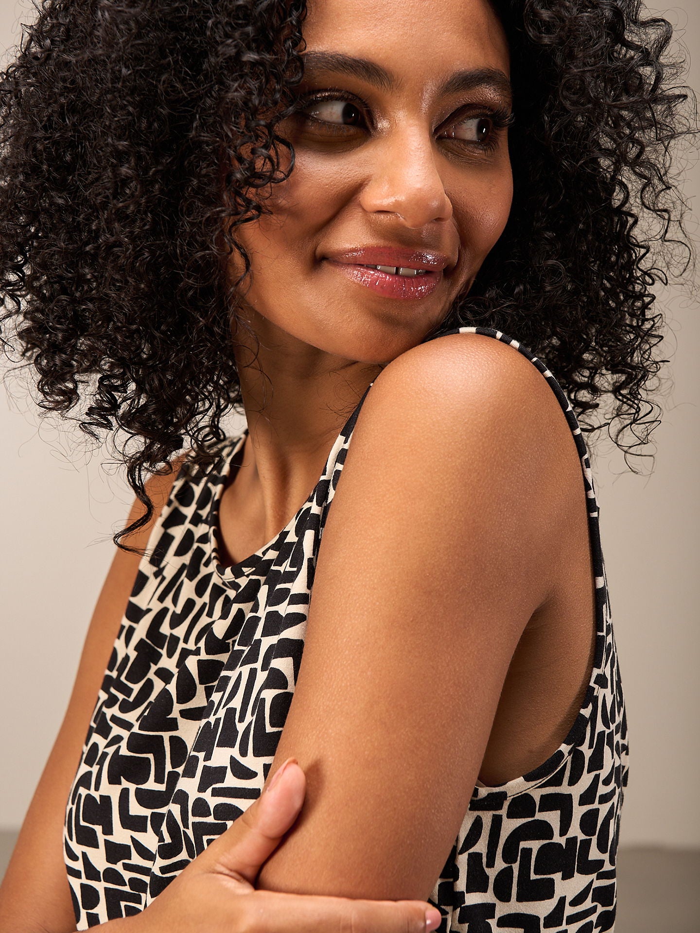 Top à la coupe décontractée avec une encolure en U et des fentes latérales dans un look Black and White attrayant. Grâce à la qualité supérieure du Tencel, le top séduit par son confort doux et fluide sans transparence.