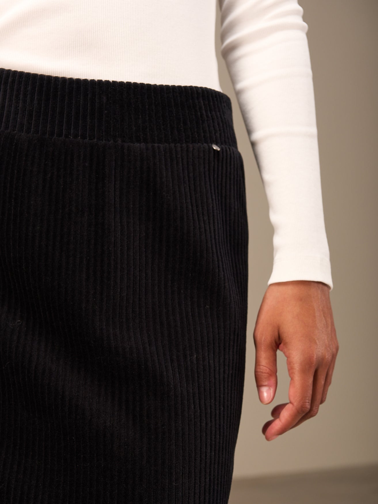 Jupe moulante près du corps avec une longue fente dans la couture latérale et une large taille extensible dans un tissu de corde élastique et doux. Les irrégularités de la couleur rendent la pièce unique. L'effet de décoloration est renforcé.