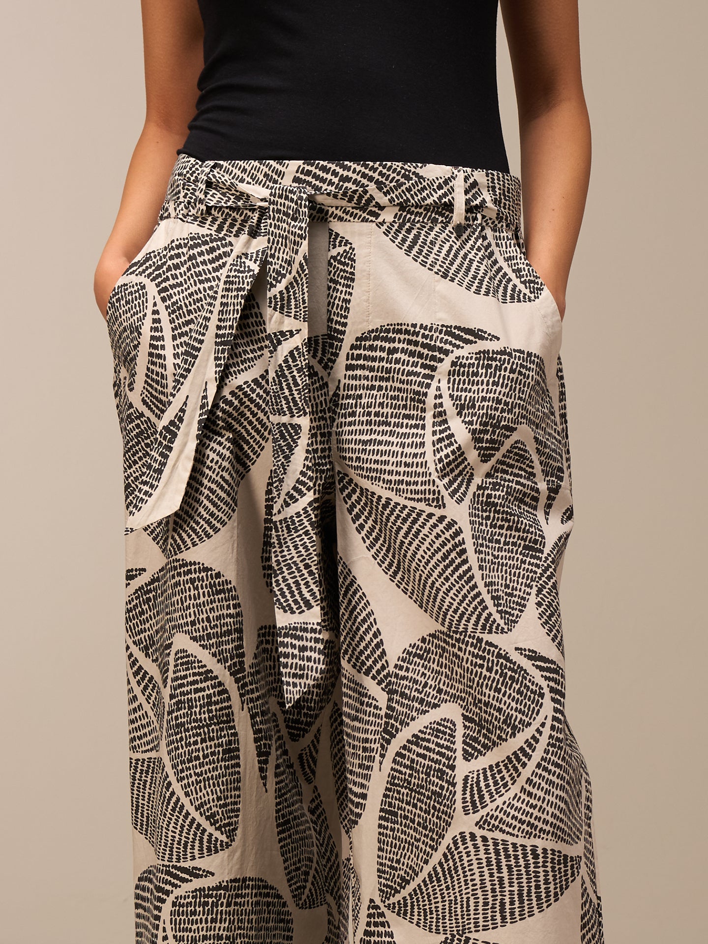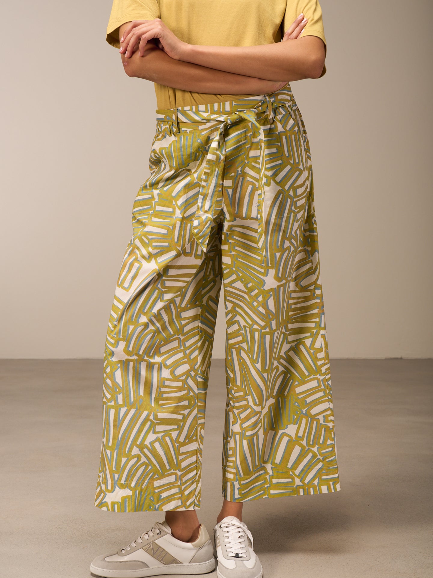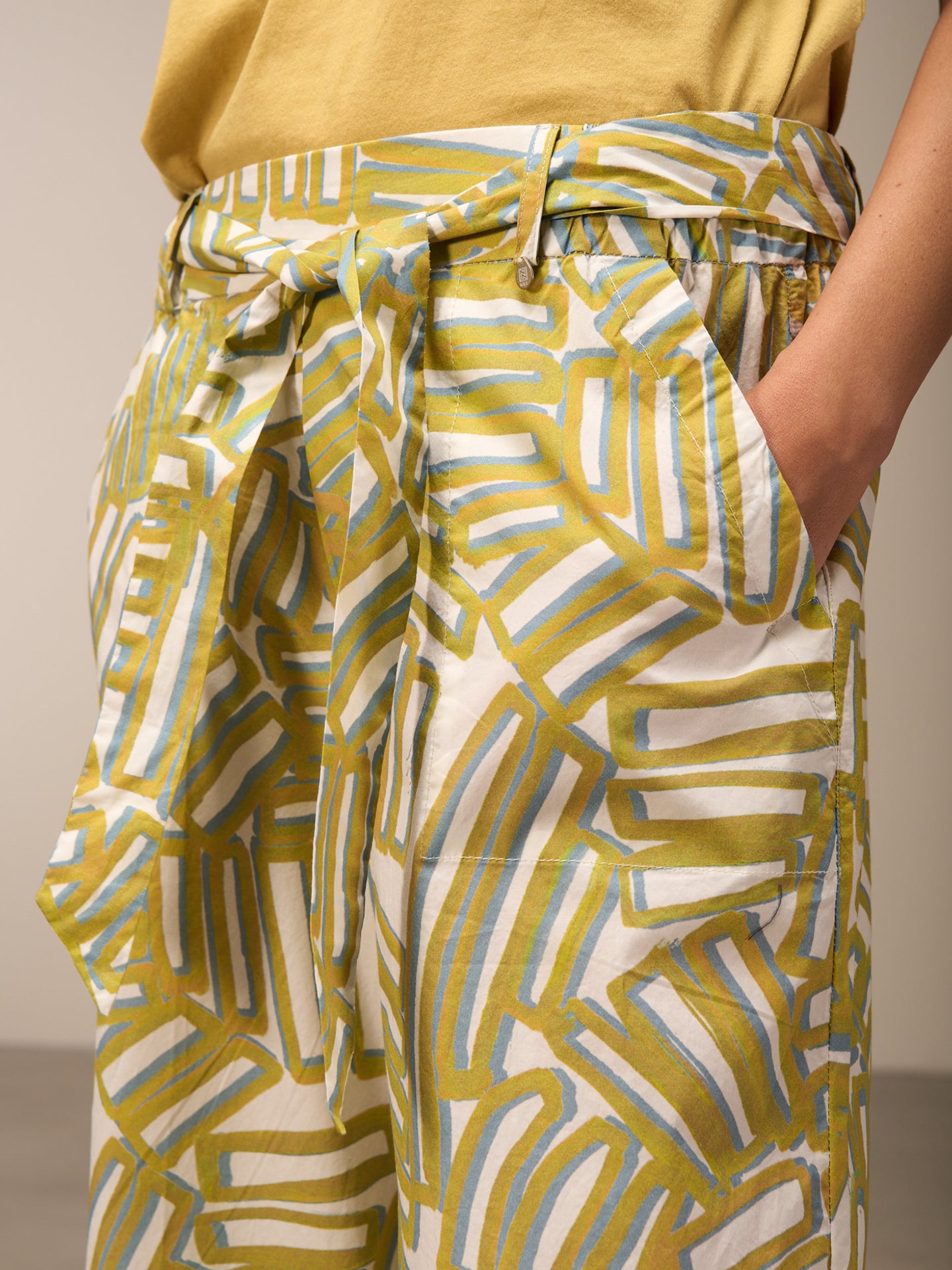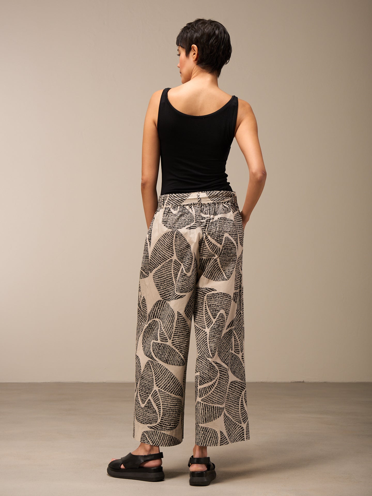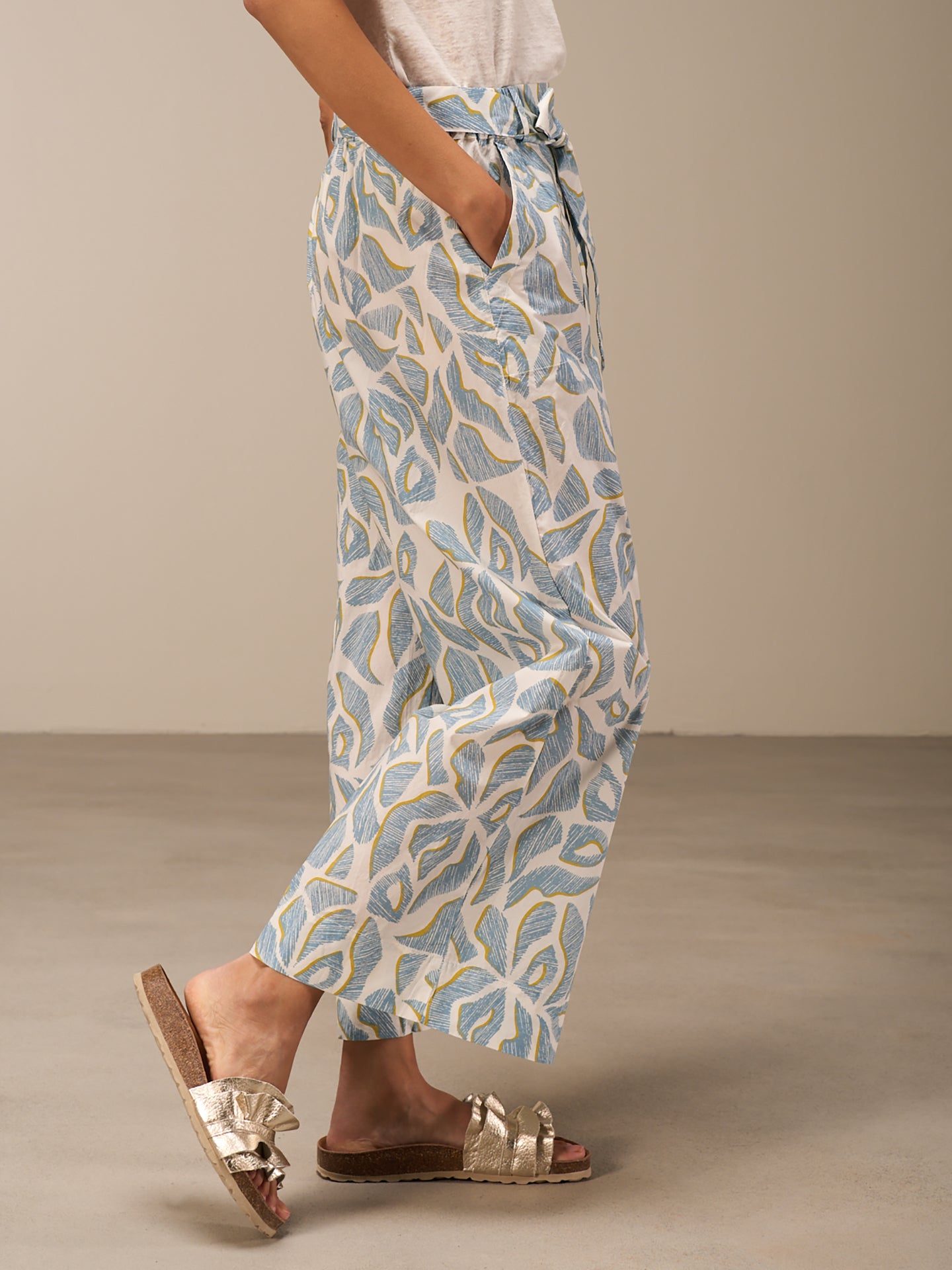 Pantalon décontracté à la jambe droite large et à la taille élastique en coton 100% bio issu de cultures certifiées, avec une touche fraîche de papier. Les imprimés frais dessinés à la main donnent une sensation estivale.