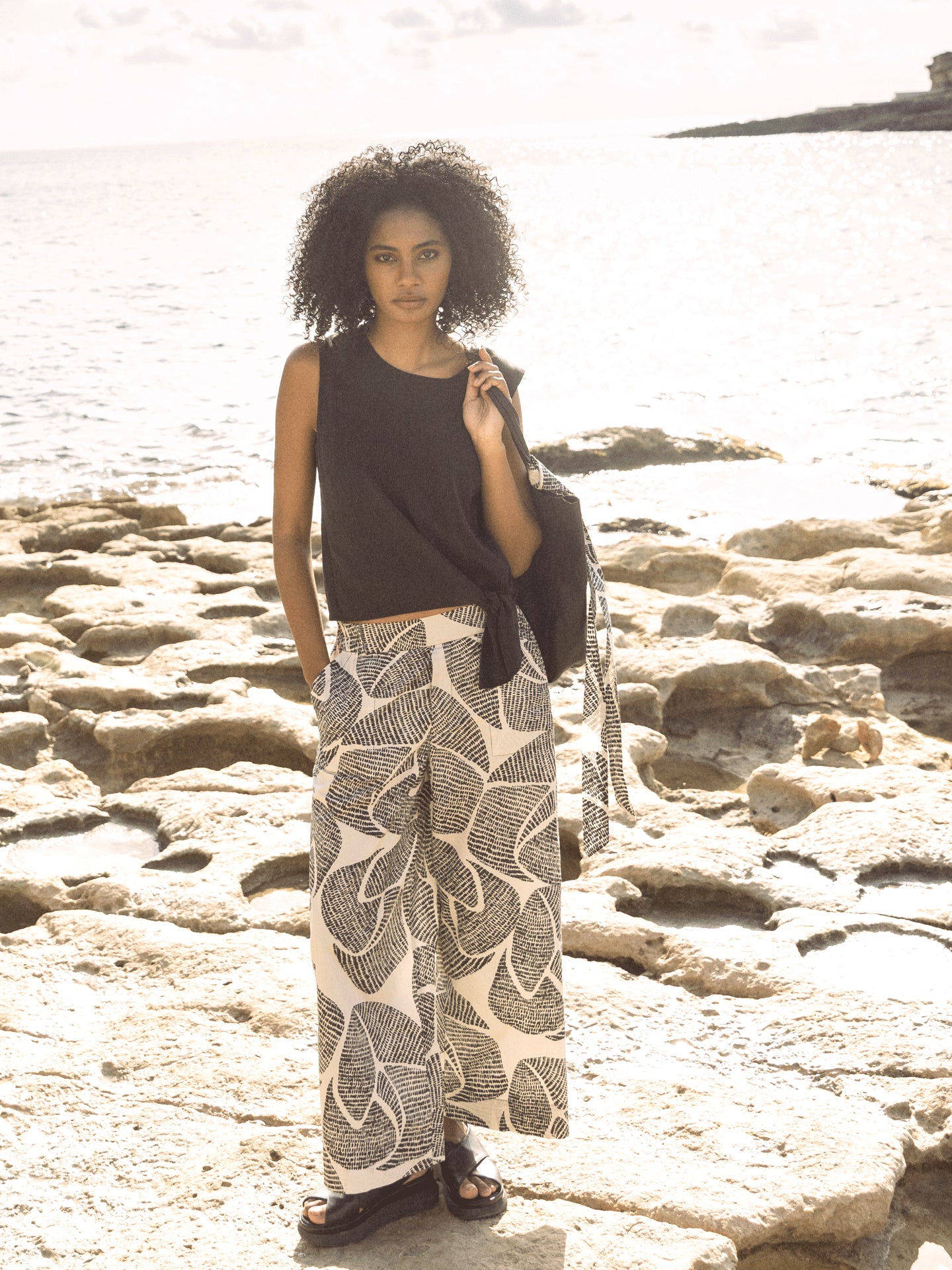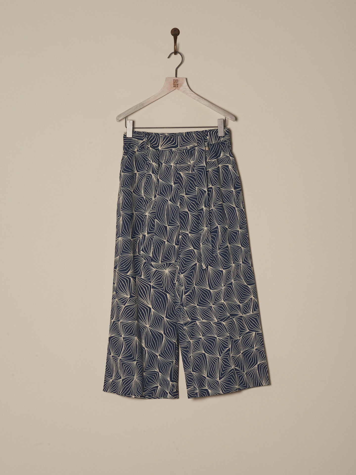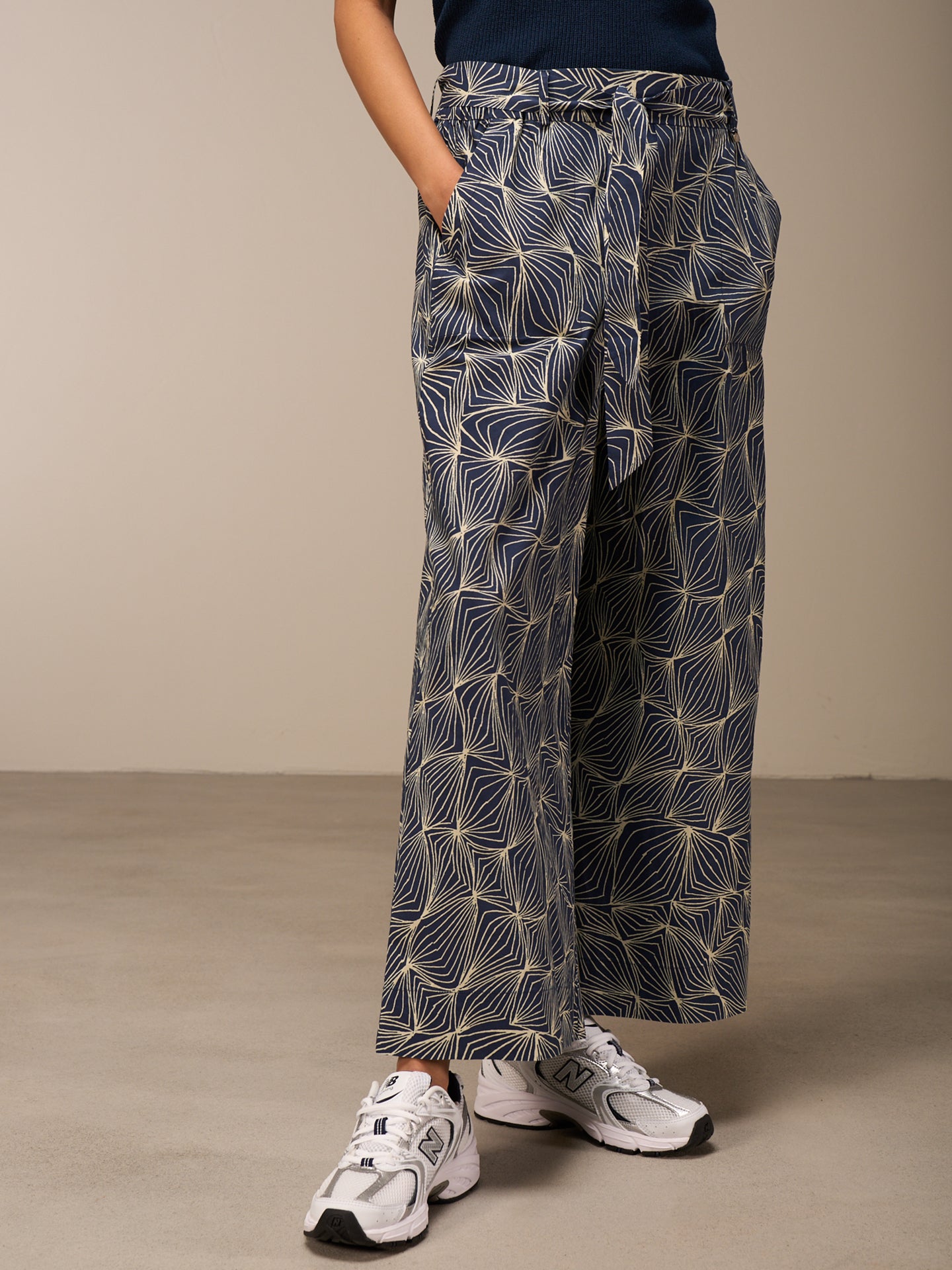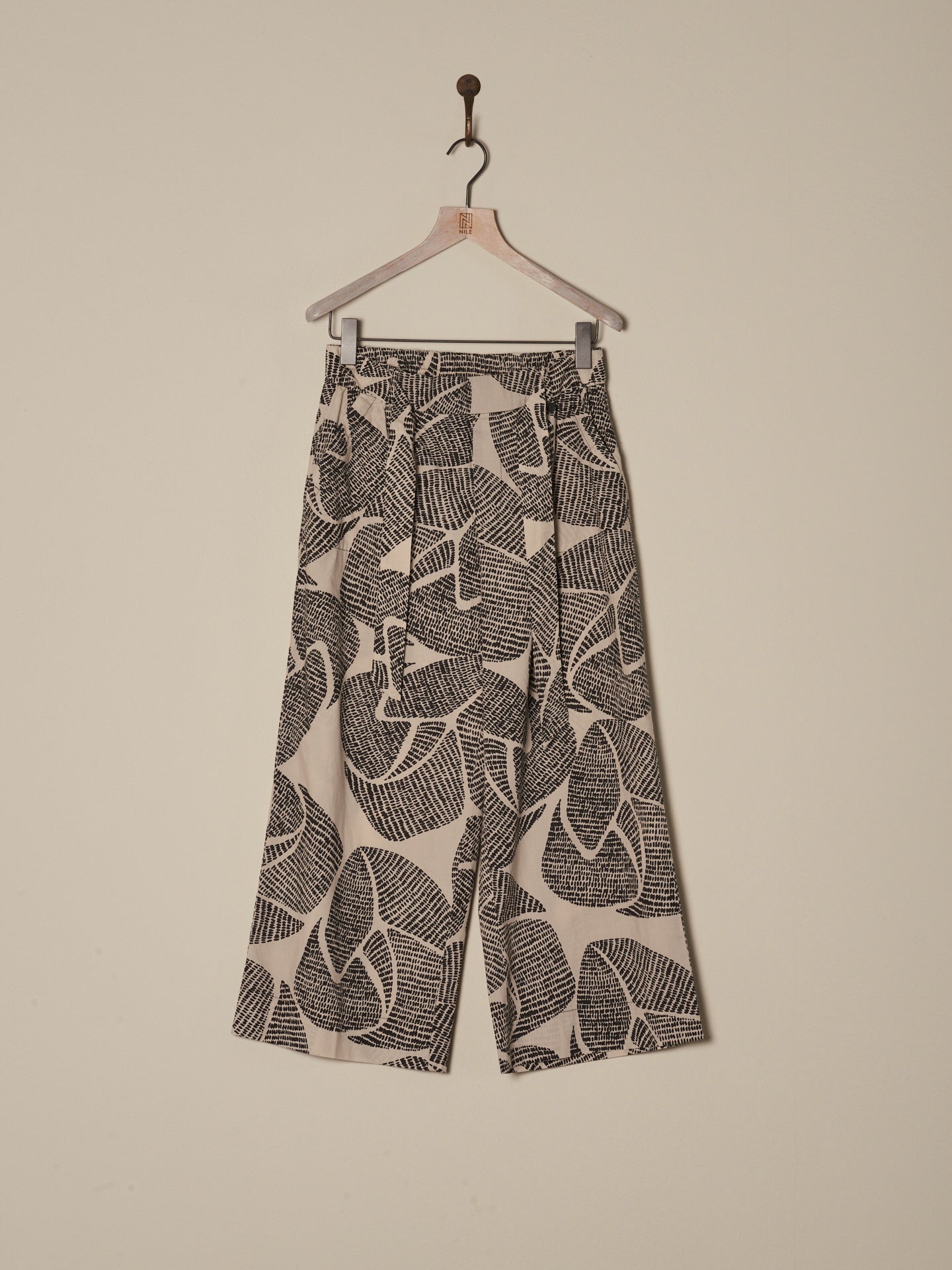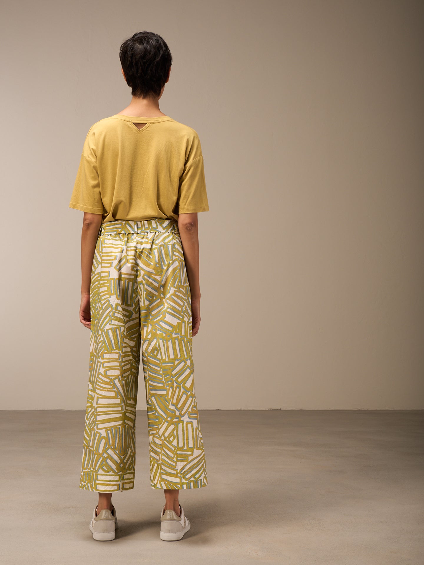 Pantalon décontracté à la jambe droite large et à la taille élastique en coton 100% bio issu de cultures certifiées, avec une touche fraîche de papier. Les imprimés frais dessinés à la main donnent une sensation estivale.