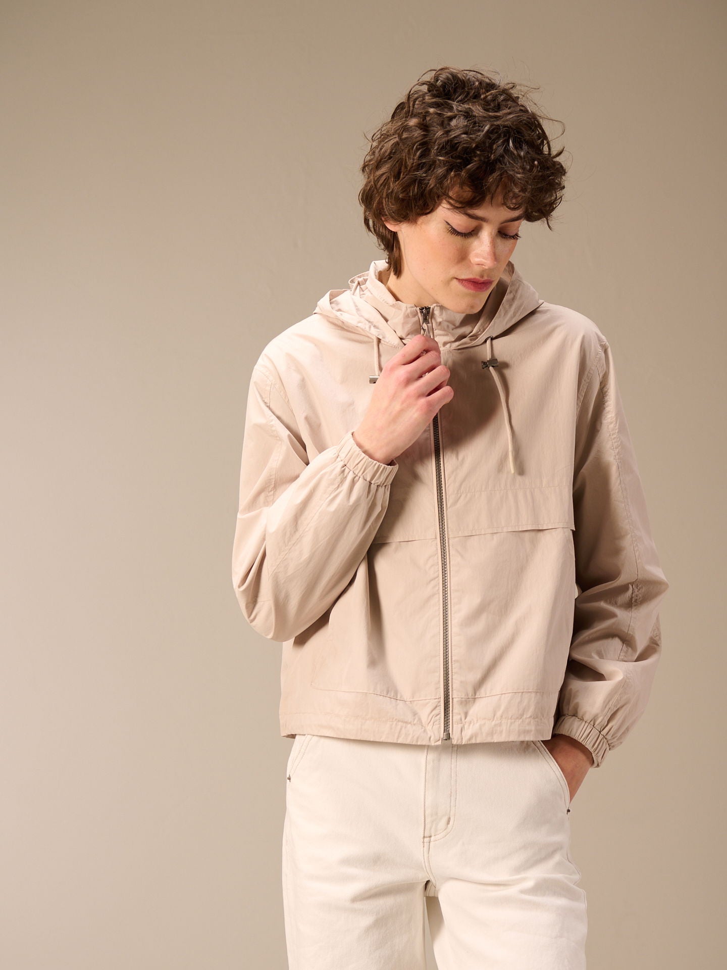 Veste coupe-vent légère, coupe carrée, légèrement doublée, imperméable, avec capuche pratique, poches plaquées et détails stylés sur les manches. Les lignes de coupe raffinées et les cordons élastiques avec stoppeurs permettent de varier les styles et font de cette veste un vêtement incontournable.