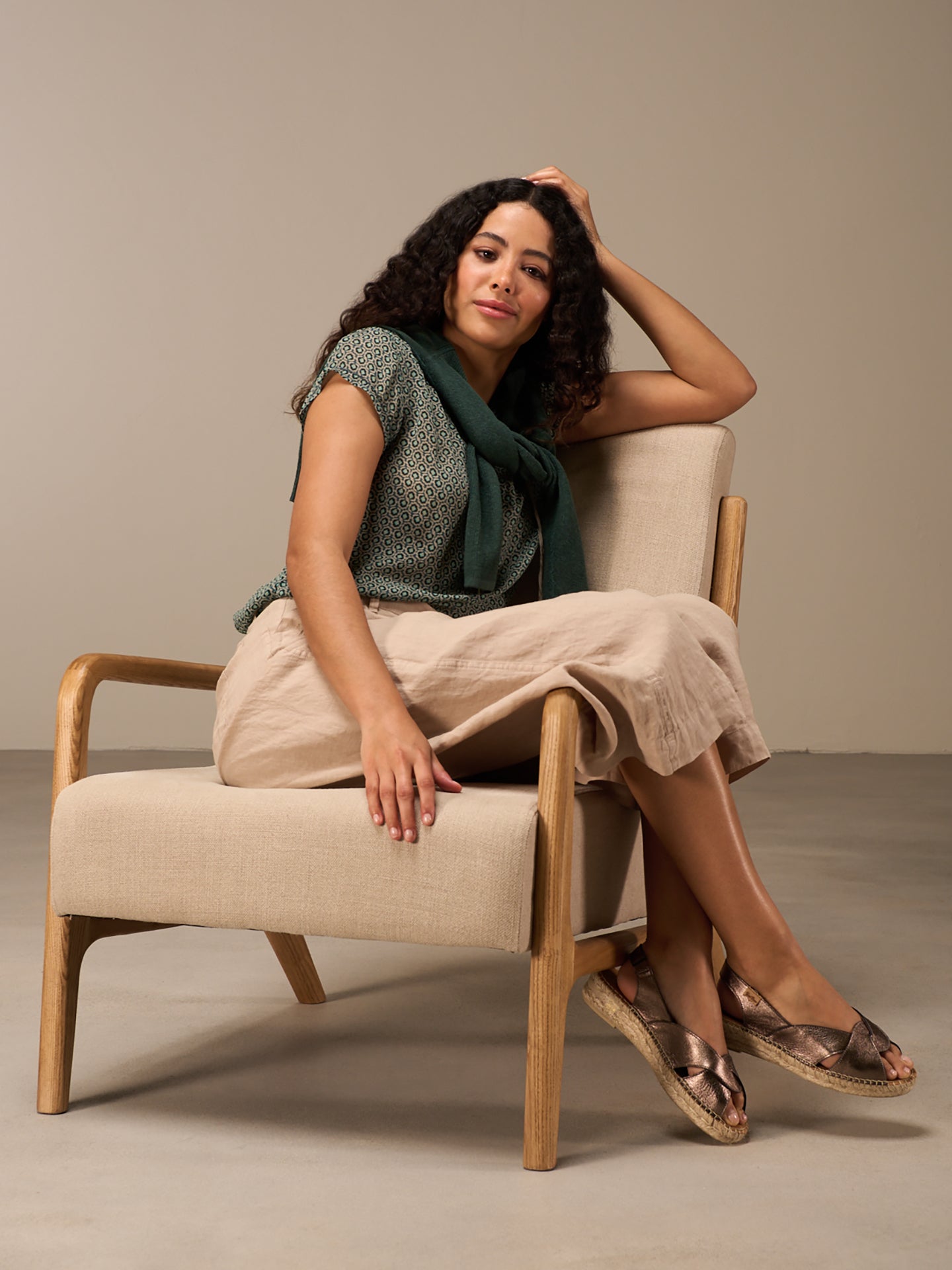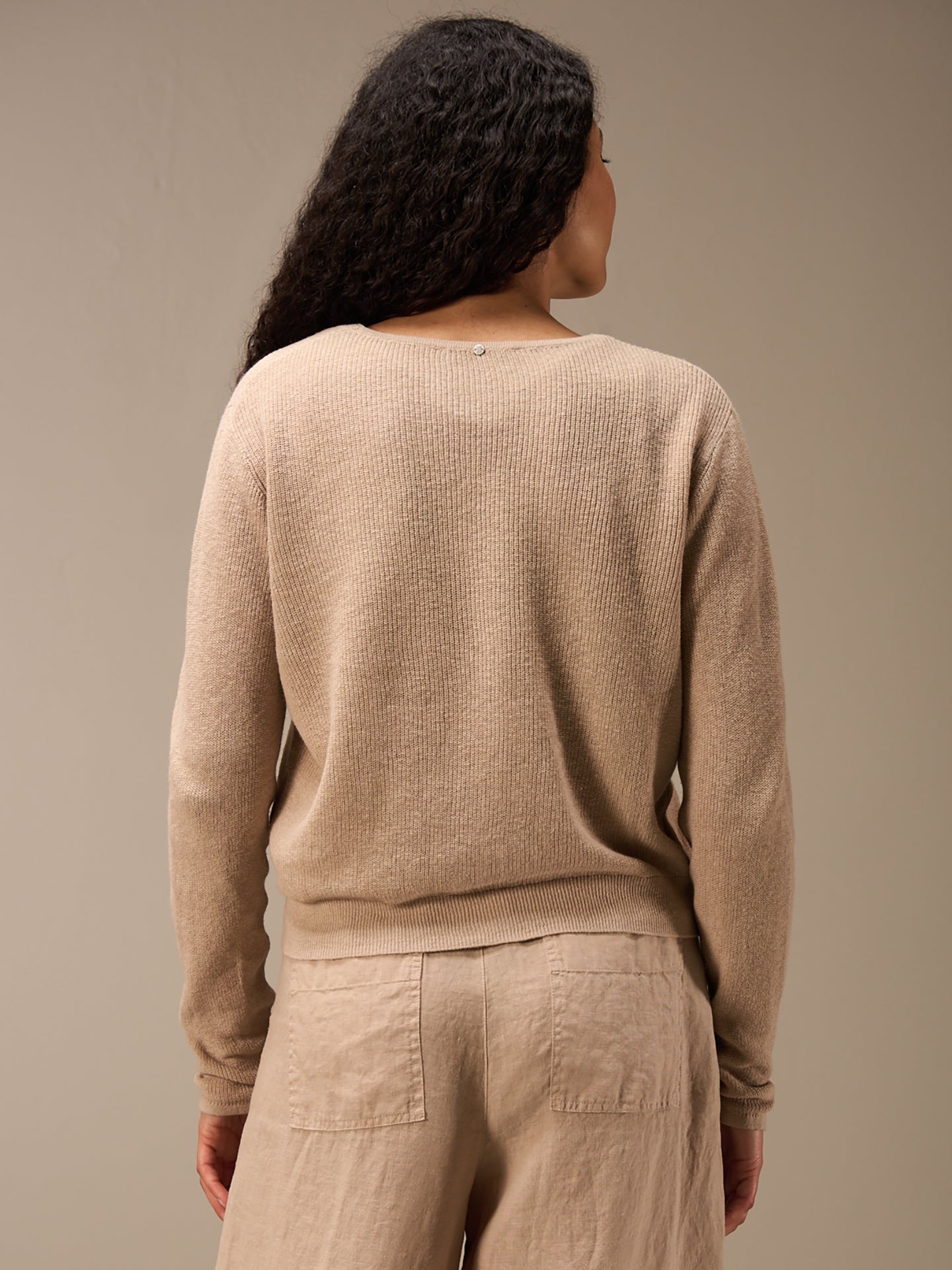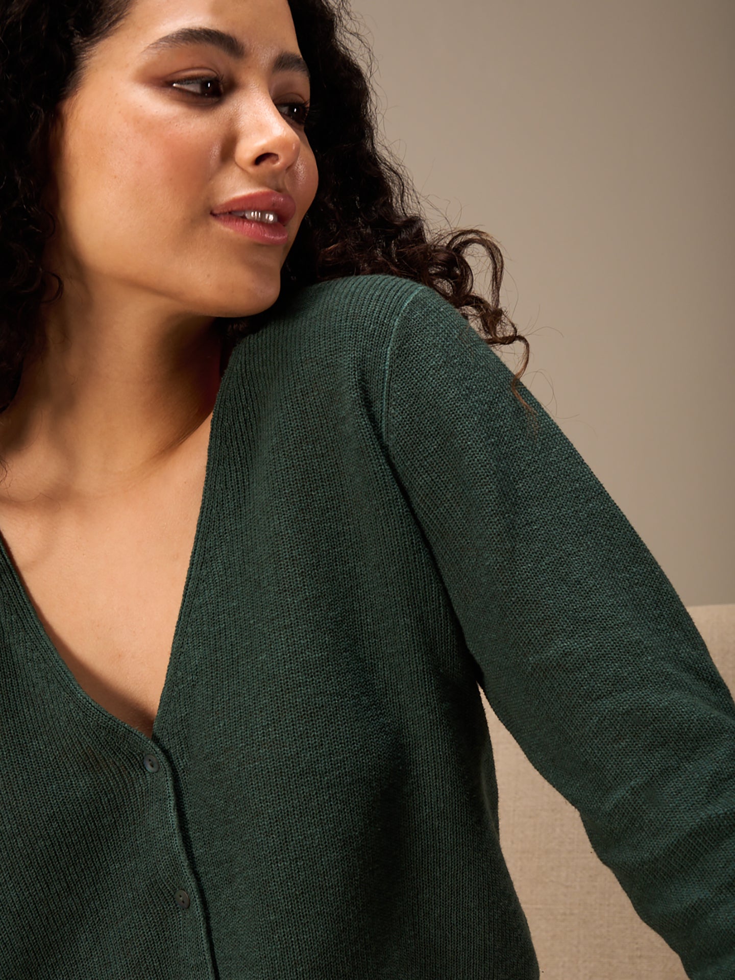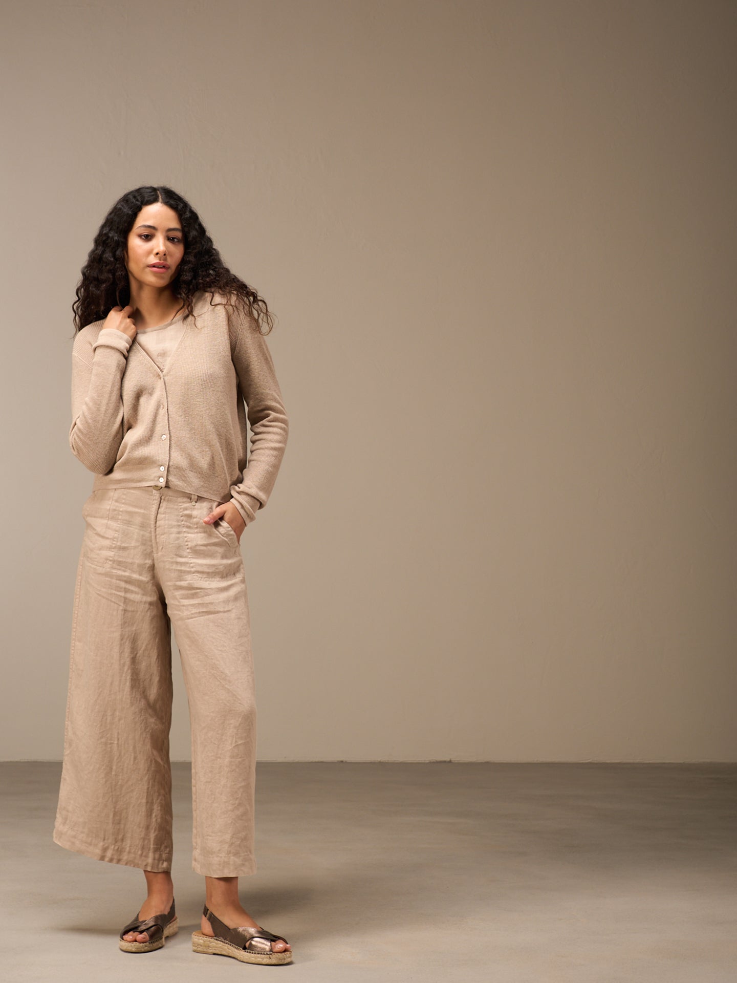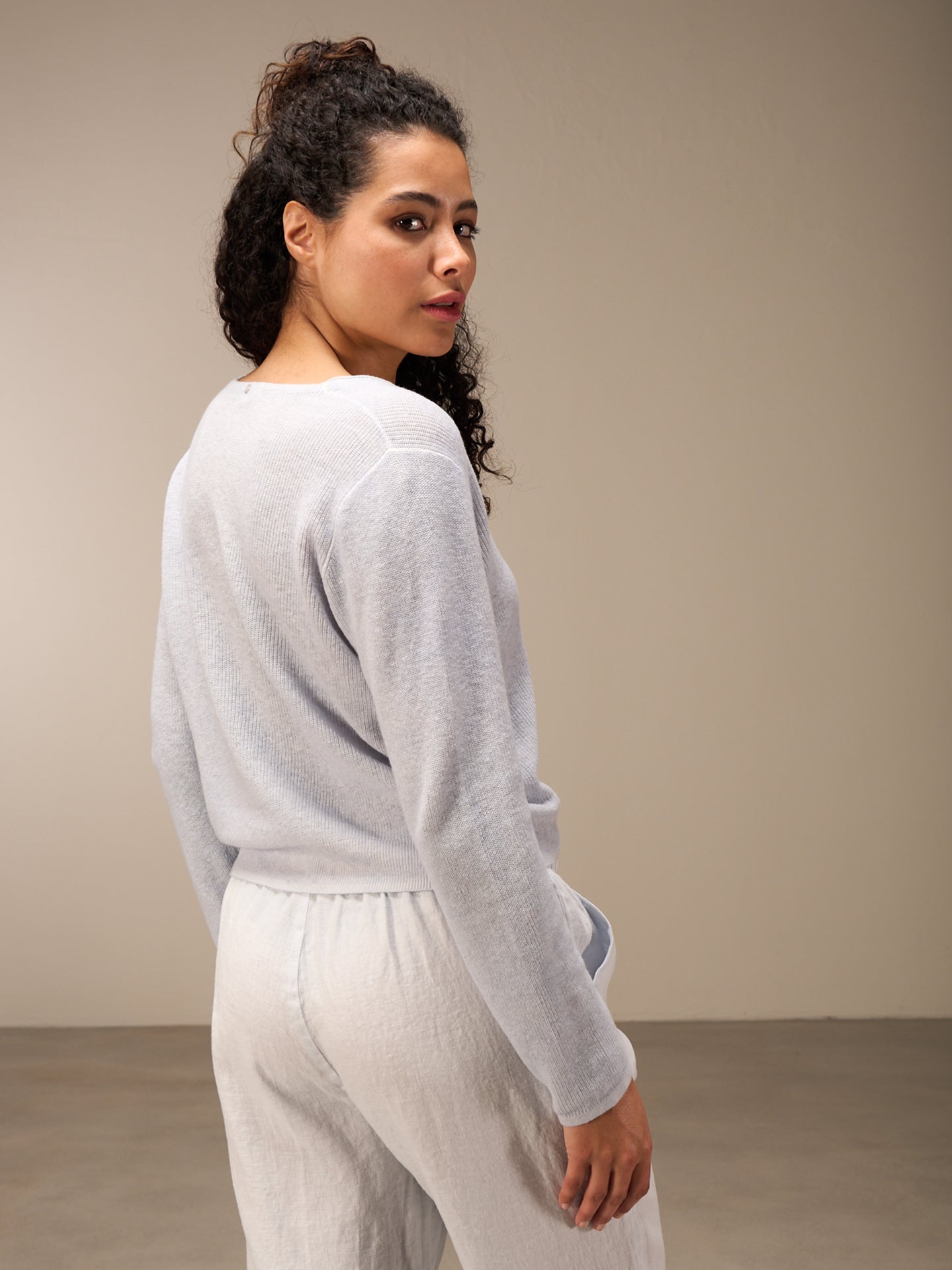 Veste en tricot ample avec patte de boutonnage d'aspect déchiré avec une coupe décontractée en 100% tricot de lin. Grâce à un procédé de teinture intérieure spécial, le t-shirt a un beau look. Les irrégularités de couleur rendent chaque pièce unique. L’effet décoloré s’en trouve renforcé.