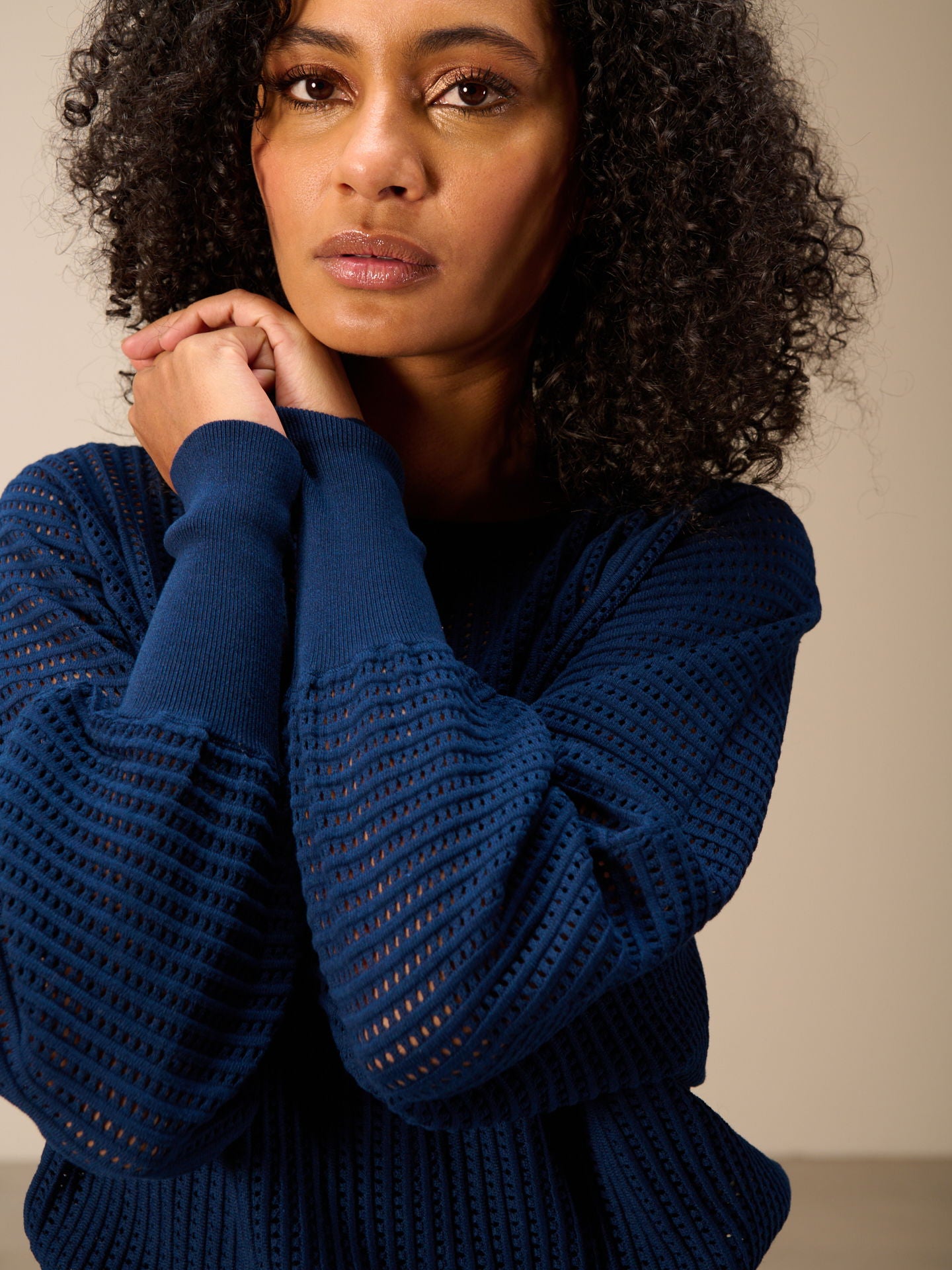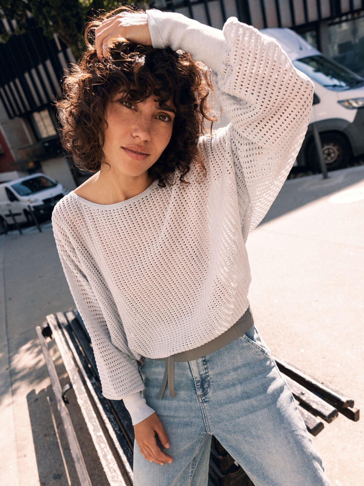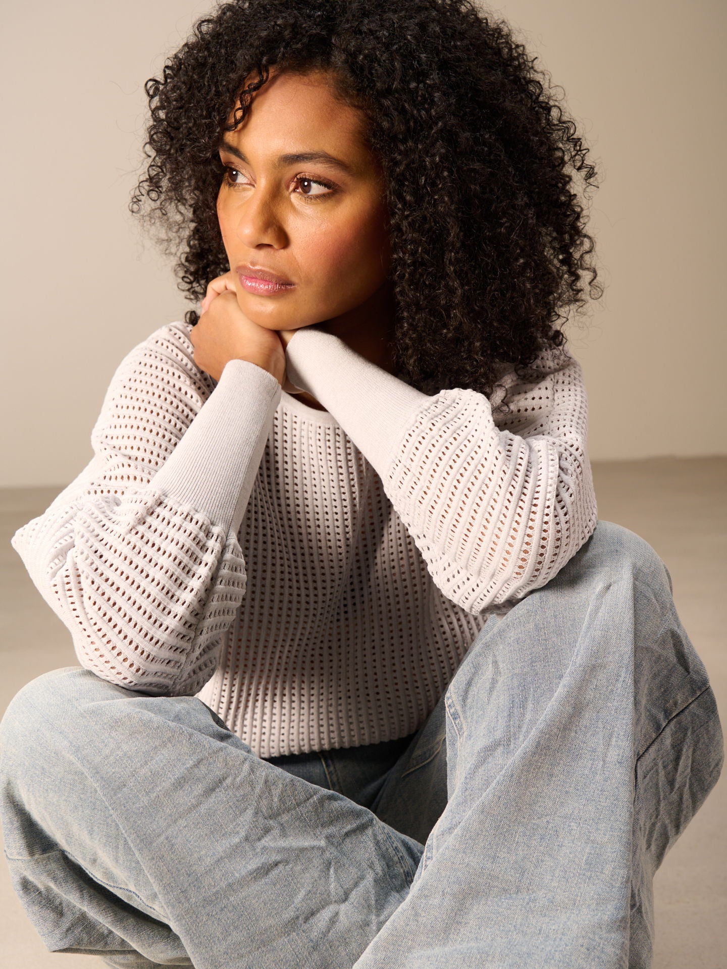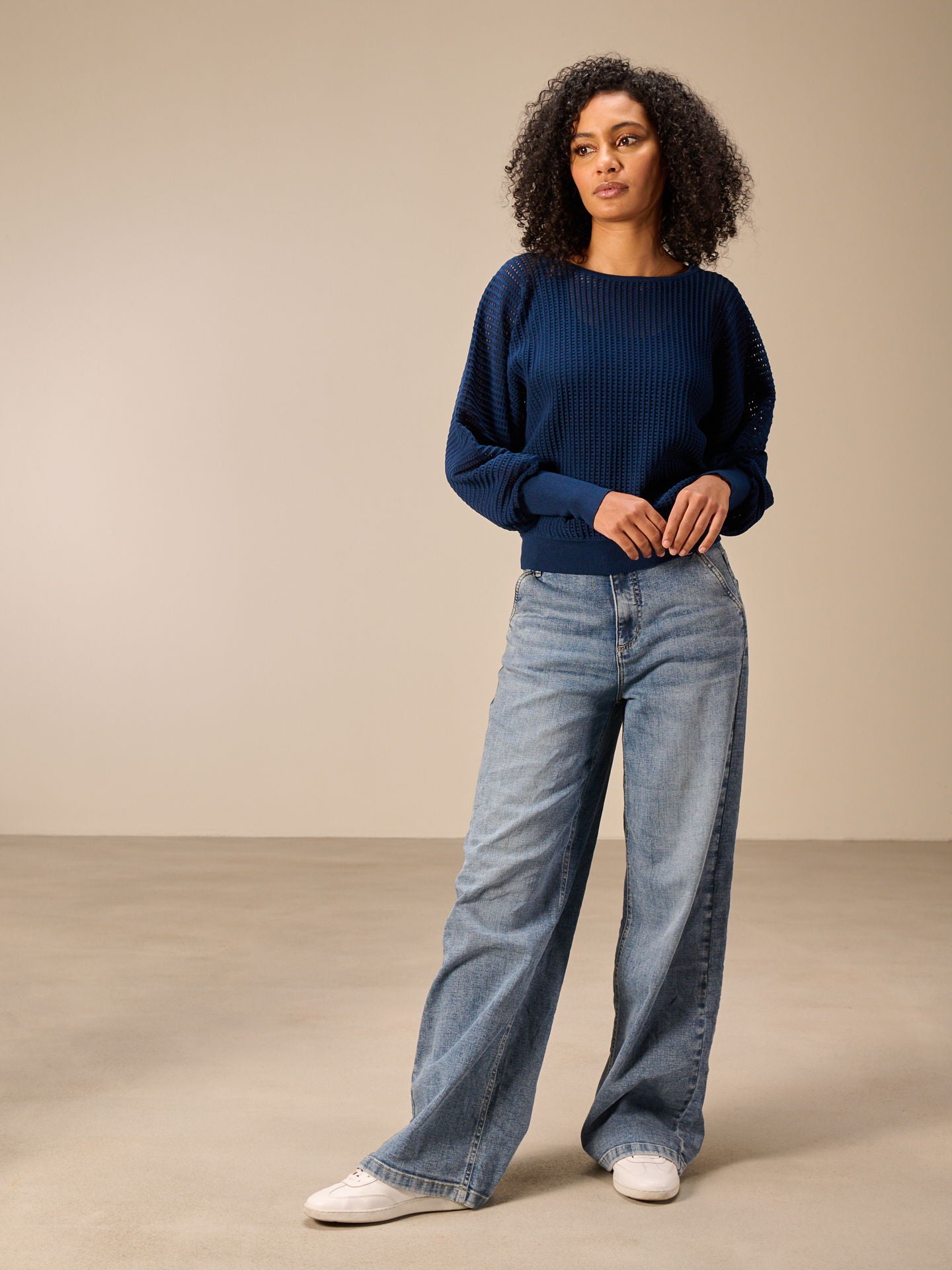 Pull en maille décontracté à col rond et manches kimono avec larges bords-côtes.