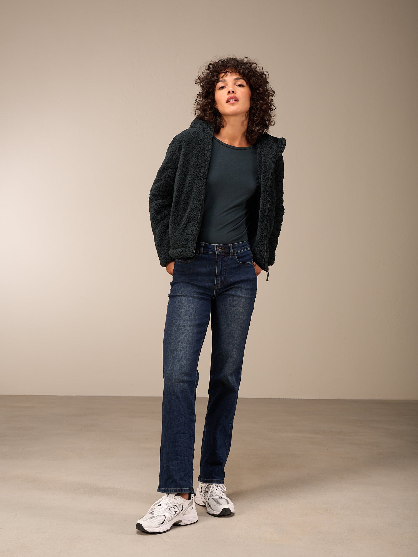 T-shirt à manches longues et à coupe large avec col rond, épaules recoupées et manches longues et étroites. Le dos légèrement plus long, dont le pli lui donne l'ampleur nécessaire, lui confère un look décontracté.