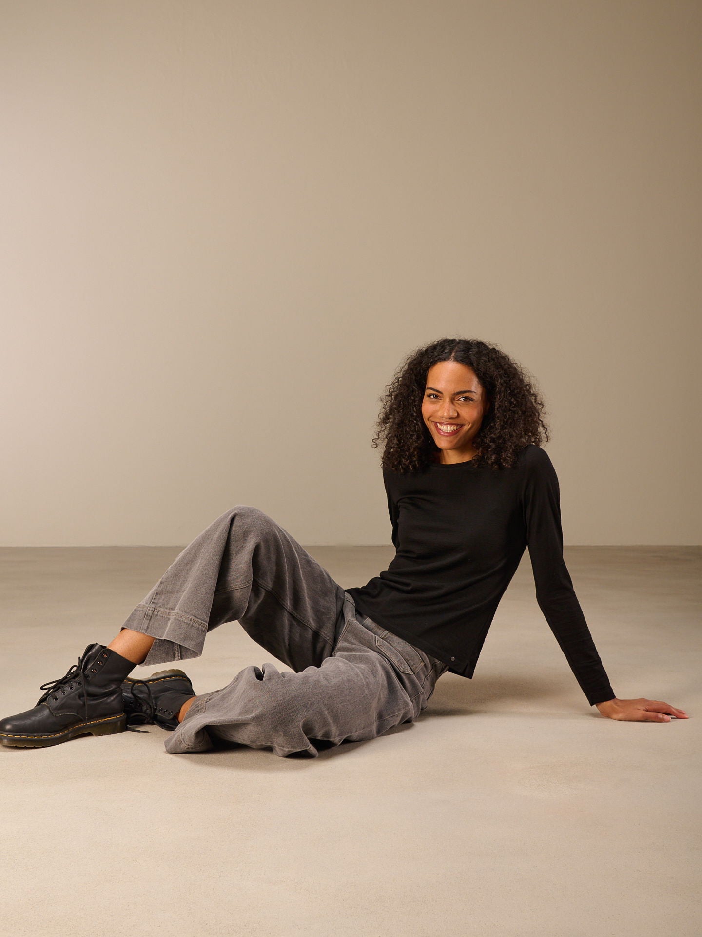 T-shirt à manches longues et coupe ample, avec encolure ronde, 100 % laine mérinos chaude. La laine mérinos offre une isolation thermique naturelle, est respirante et neutralise les odeurs. Notre laine, issue d'un approvisionnement responsable, provient d'élevages contrôlés et sans mulesing.