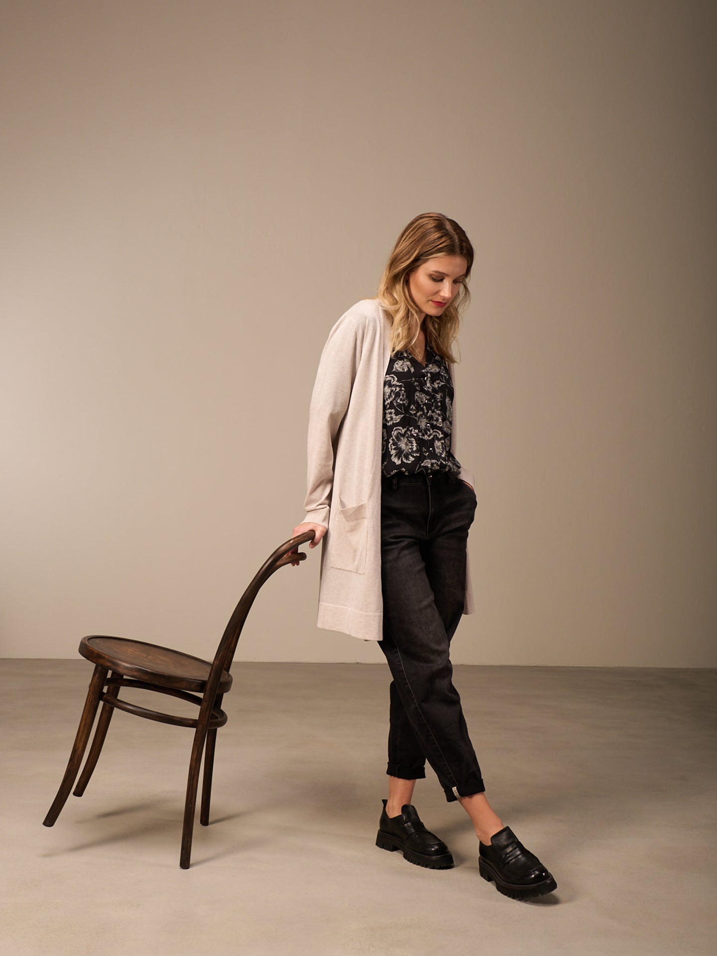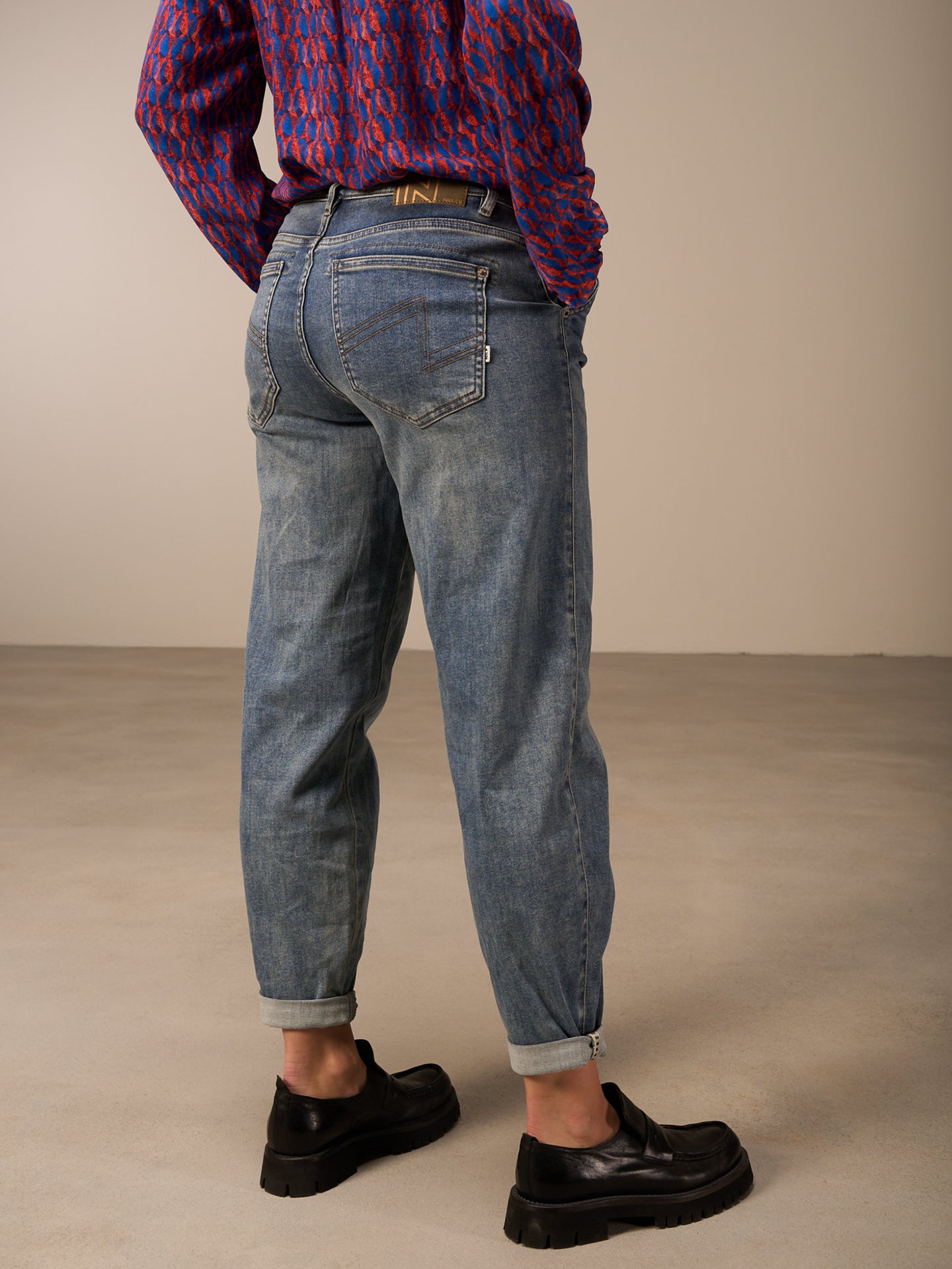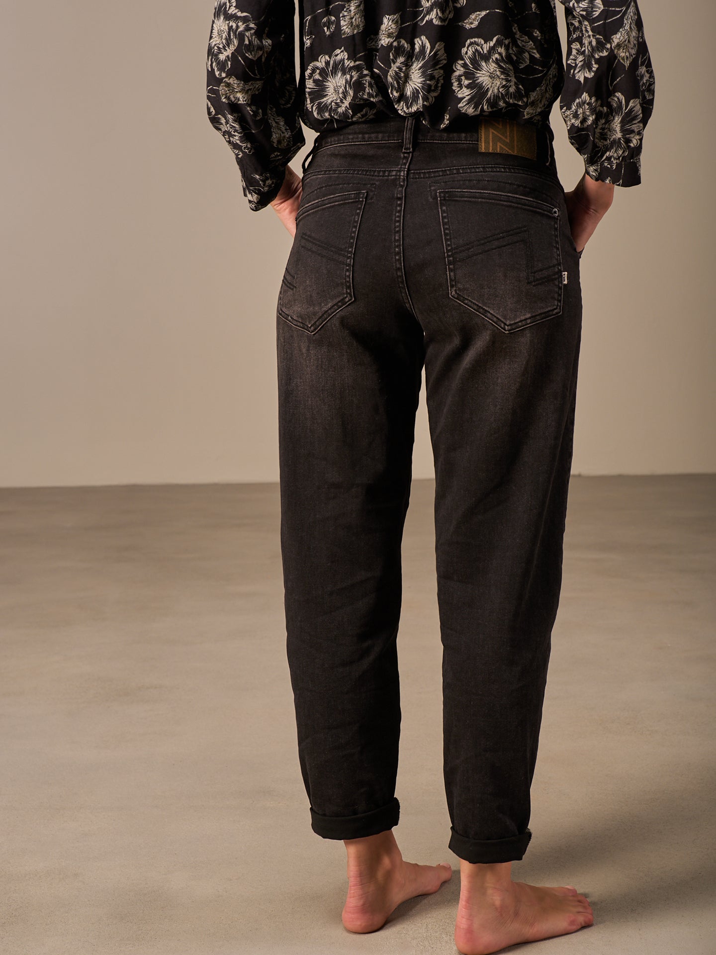 Pantaloni dalla vestibilità morbida con vita media e silhouette a O. Il fondo gamba è risvoltato e arricchito da nastri decorativi che valorizzano ulteriormente il design. Le irregolarità nel colore e l'effetto slavato sono voluti e rendono questo capo unico. Il prodotto può stingere su altri capi e superfici.