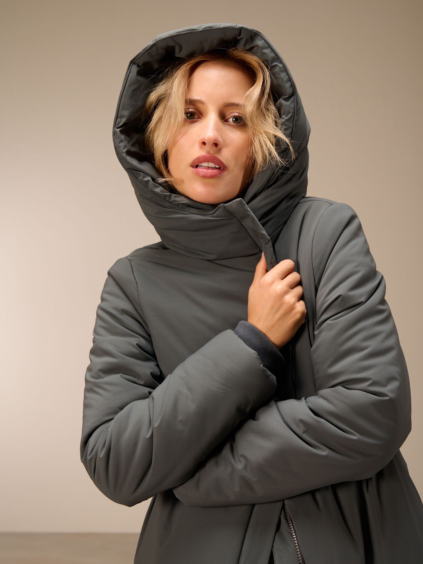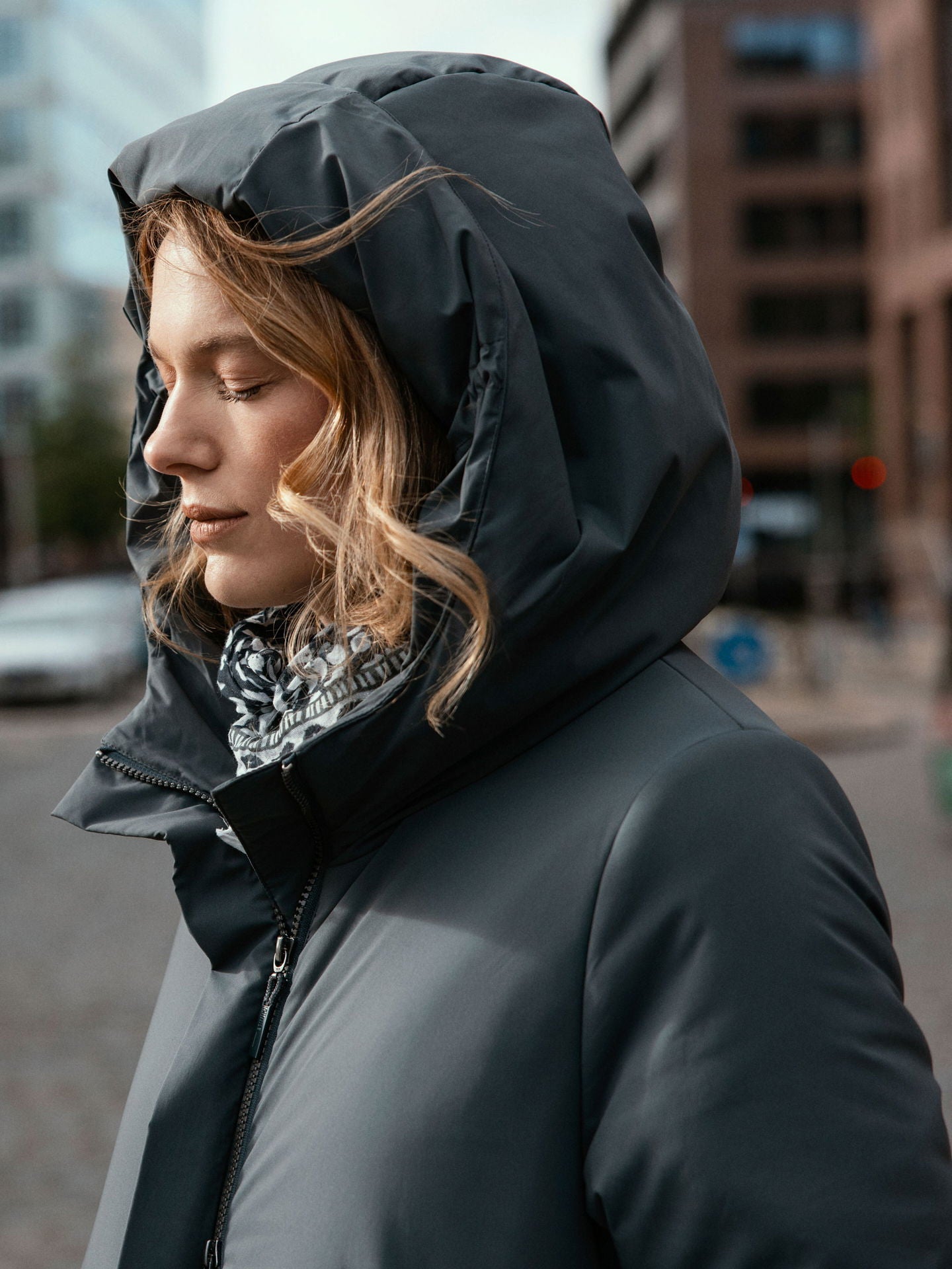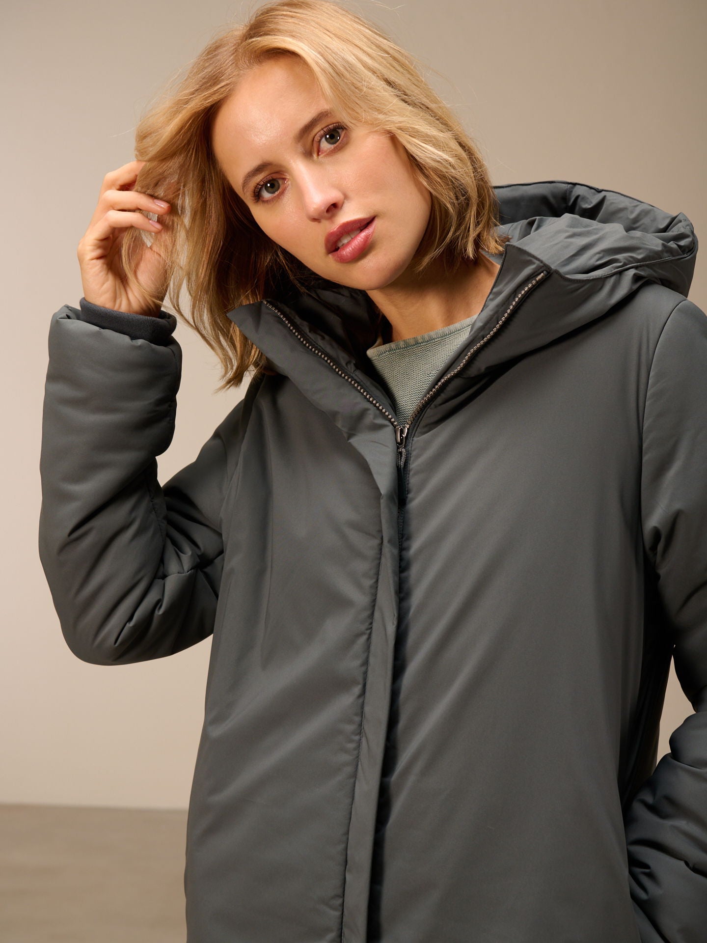 Moderno cappotto outdoor con pratico cappuccio, tasche laterali e superficie idrorepellente. Il trendy materiale No-Down con morbida imbottitura è ultraleggero ma comunque caldo. L'imbottitura in ThermoPlume® di PrimaLoft® è la nostra alternativa alle piume d'oca e offre un'elevata capacità di trattenere il calore, è resistente all'umidità e ha una mano morbida ed elastica.