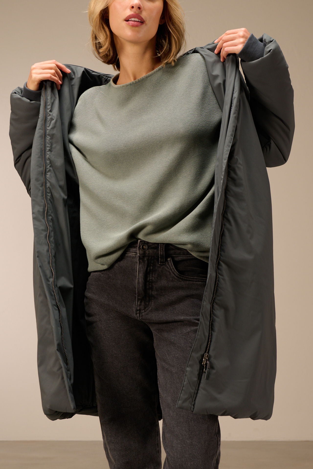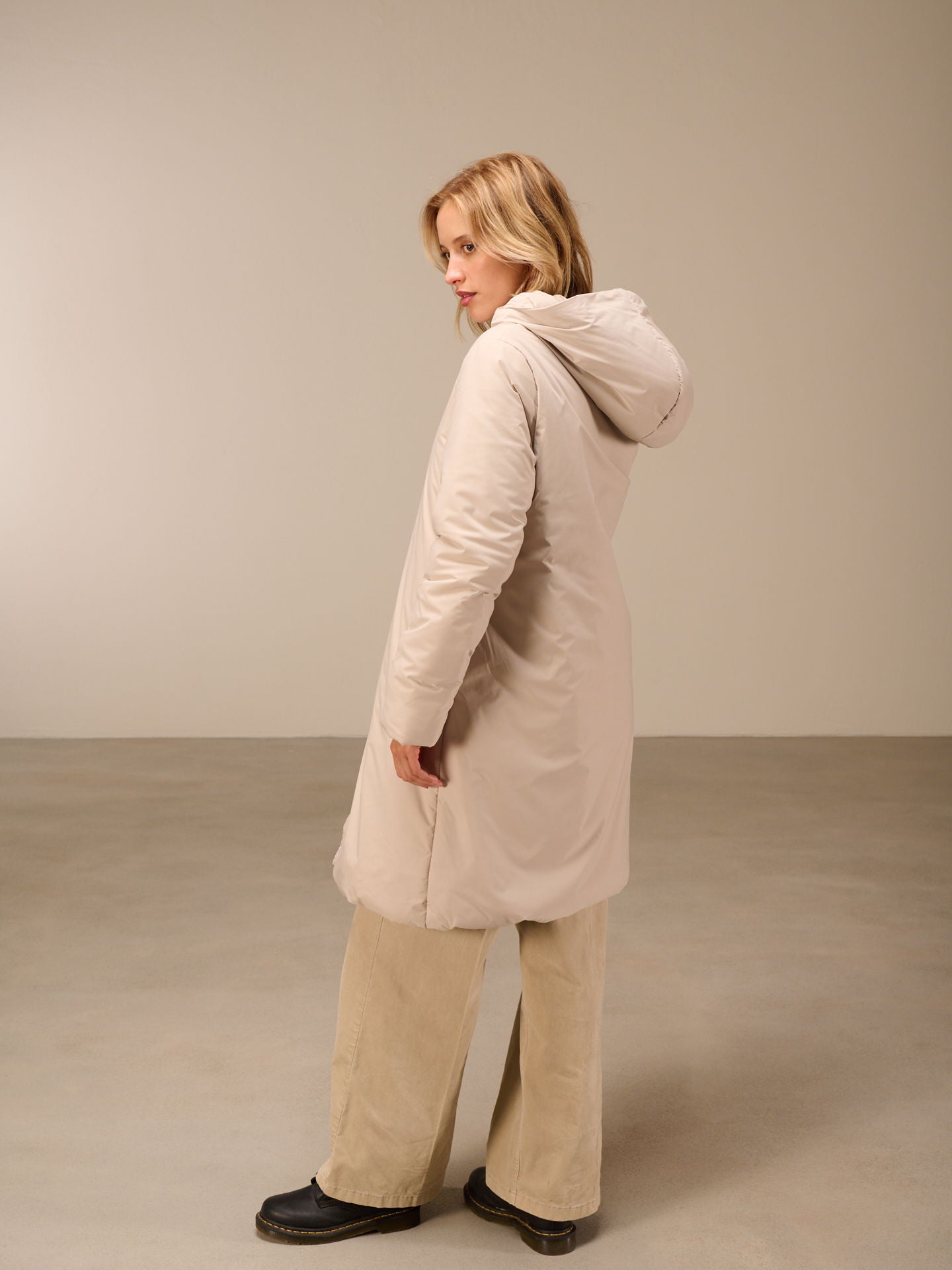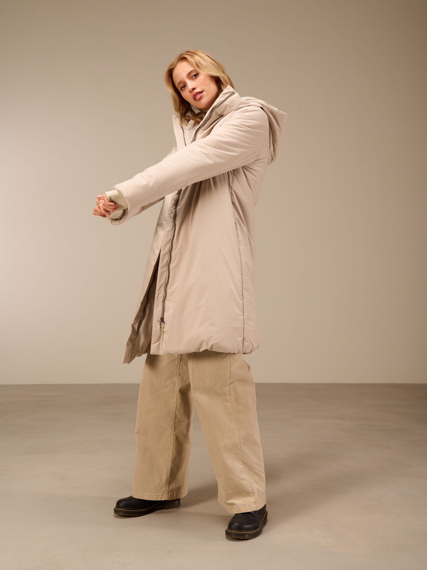 Moderno cappotto outdoor con pratico cappuccio, tasche laterali e superficie idrorepellente. Il trendy materiale No-Down con morbida imbottitura è ultraleggero ma comunque caldo. L'imbottitura in ThermoPlume® di PrimaLoft® è la nostra alternativa alle piume d'oca e offre un'elevata capacità di trattenere il calore, è resistente all'umidità e ha una mano morbida ed elastica.