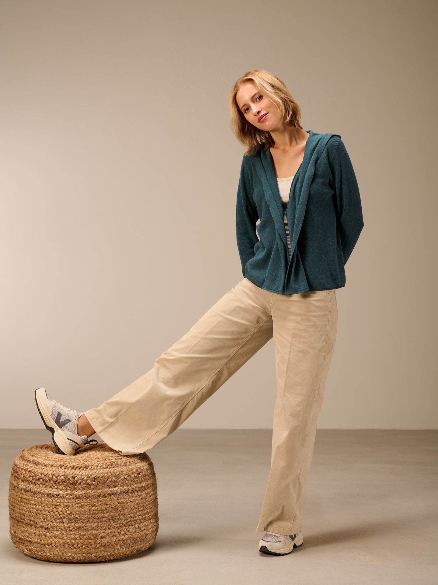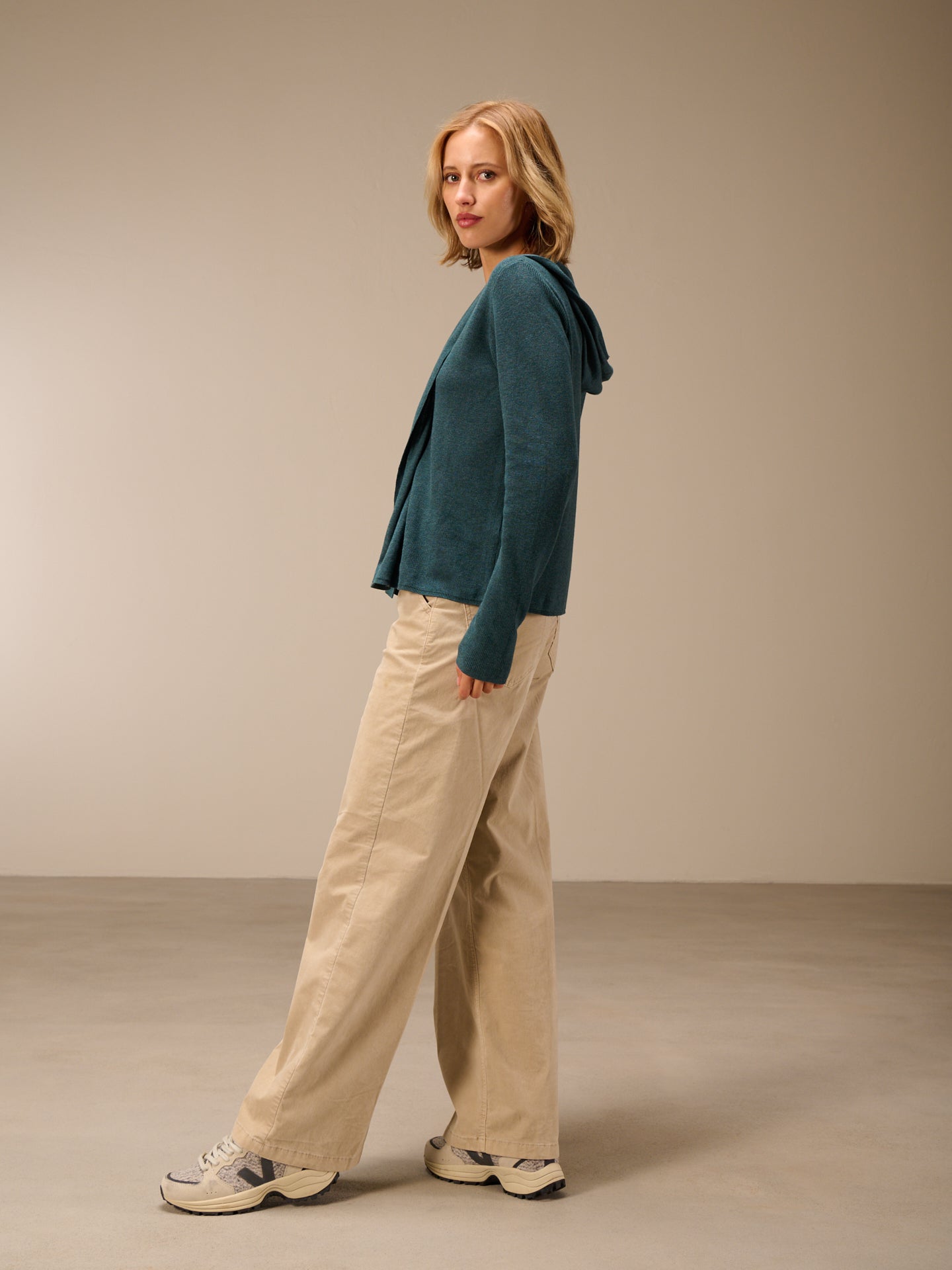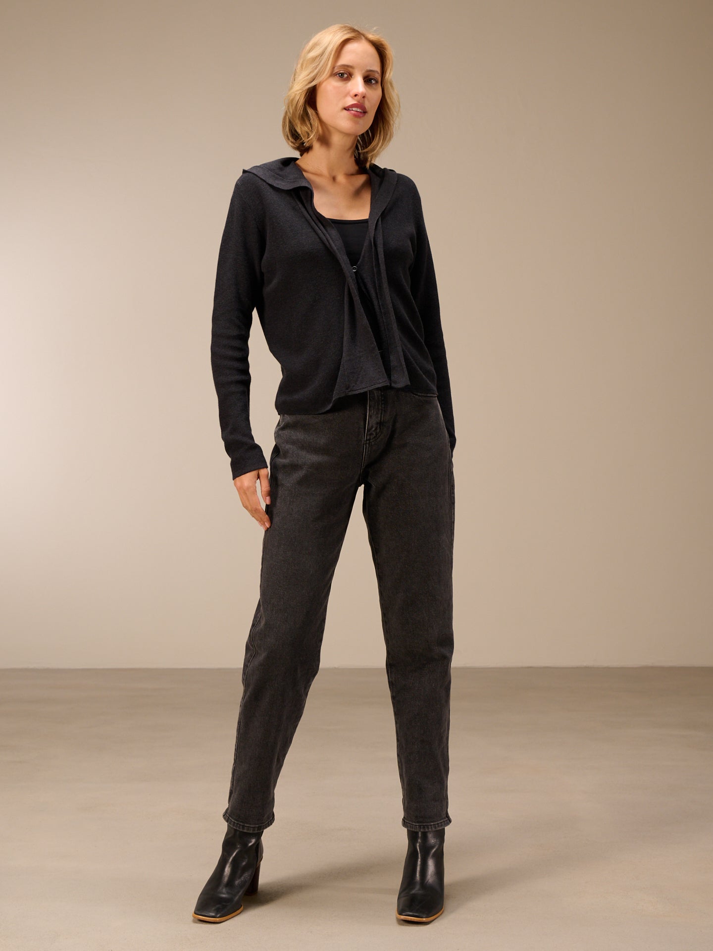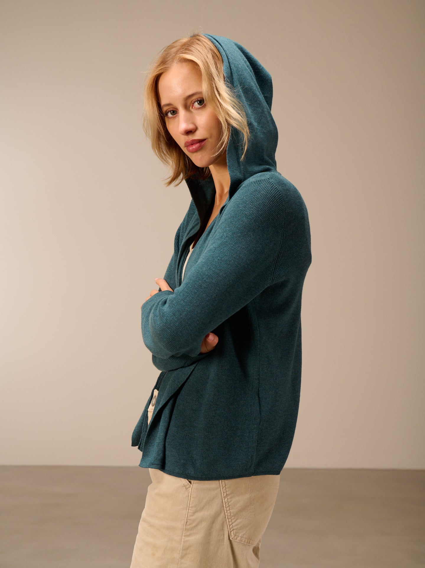 Cardigan dalla vestibilità morbida lavorato a maglia con motivo a mezzo punto inglese, con cappuccio e collo a scialle.