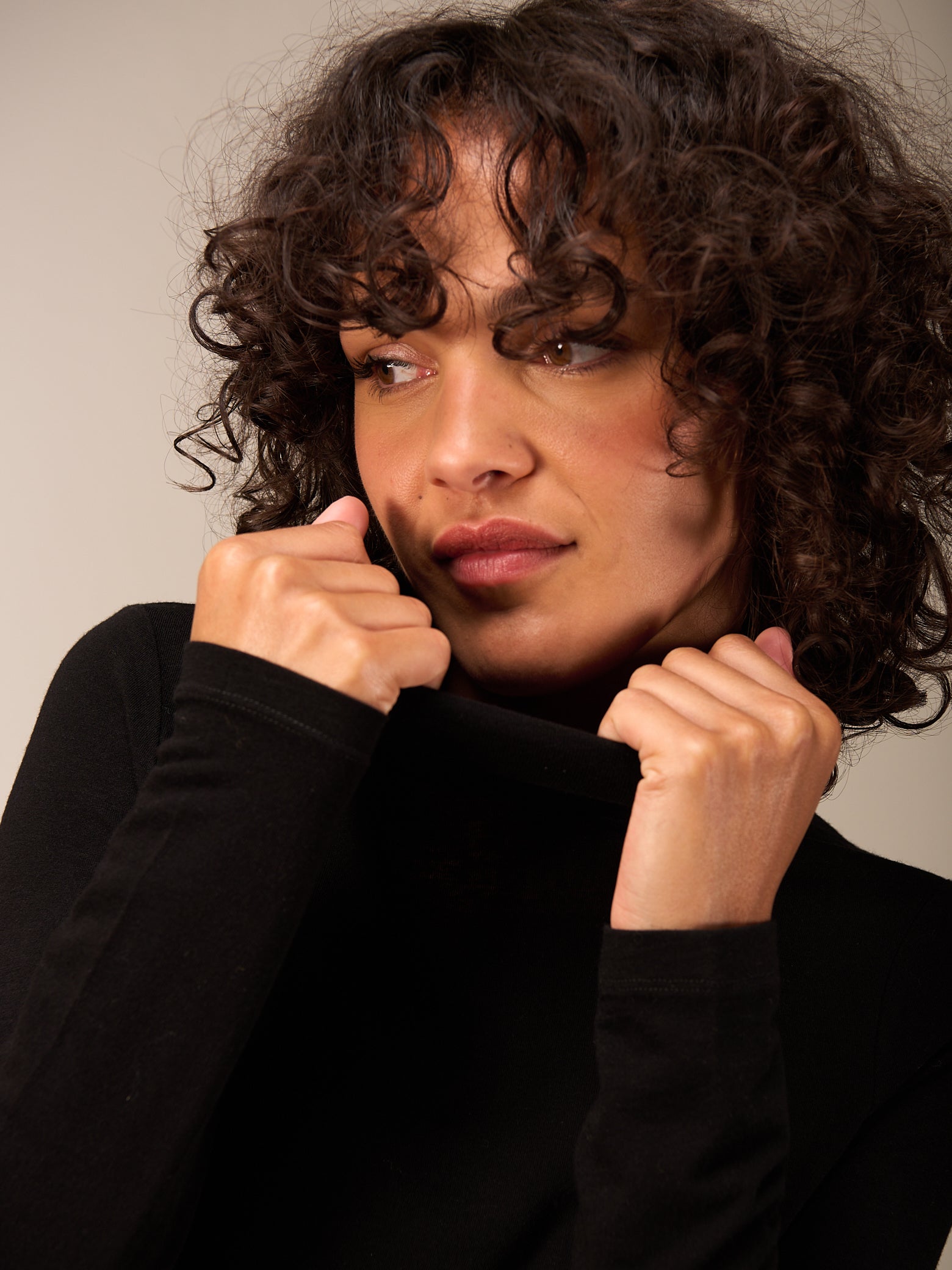 Maglia a collo alto stretta e aderente con maniche lunghe, ideale da indossare da sola o sotto. Il piacevole tessuto in misto lana assicura una sensazione accogliente.