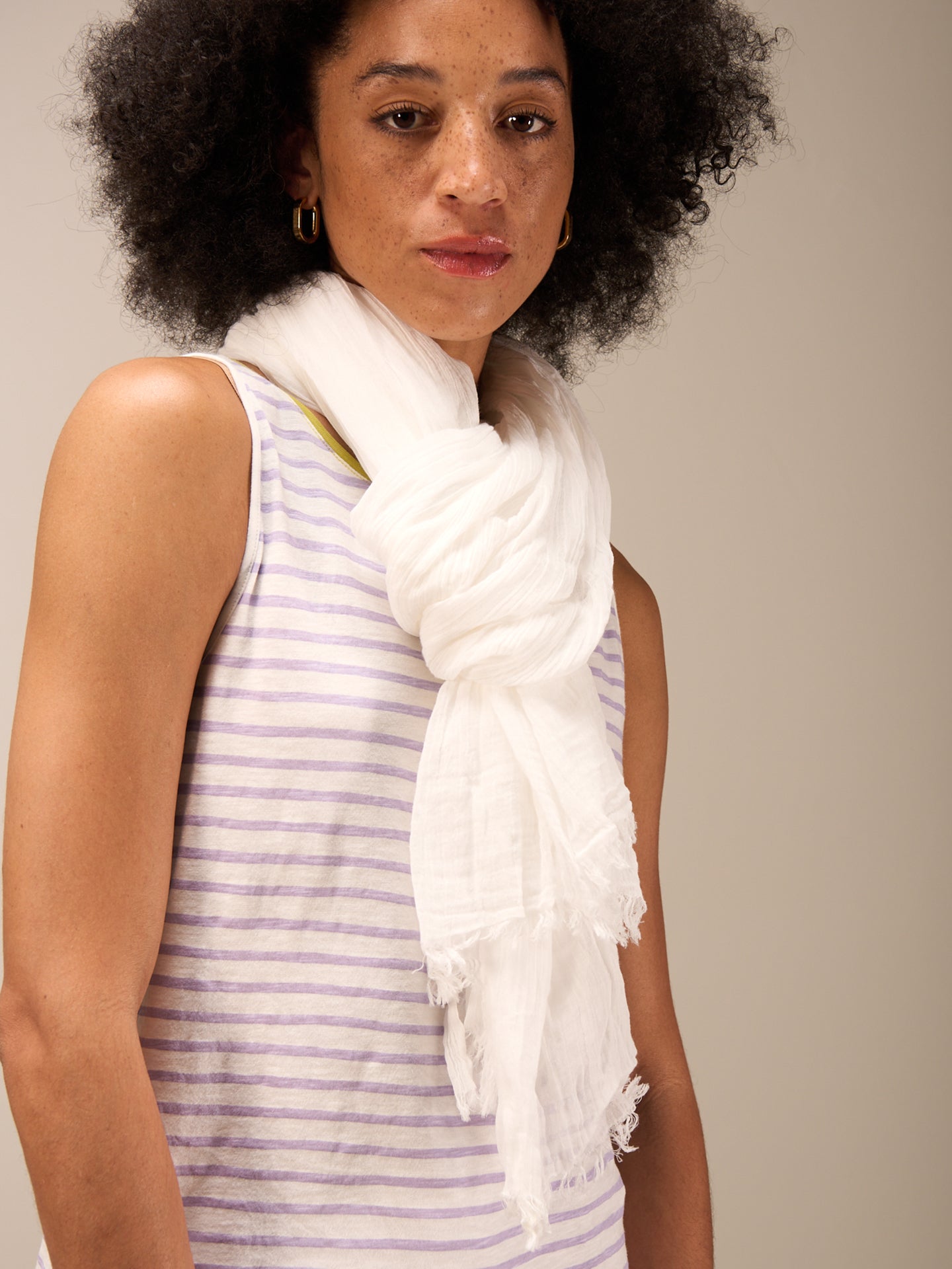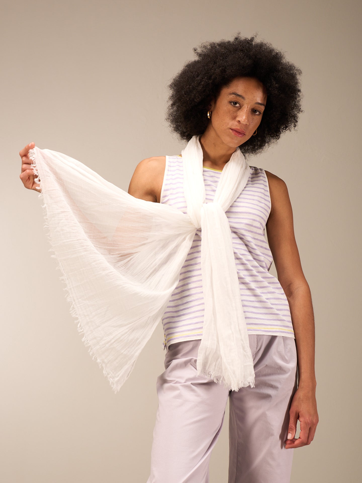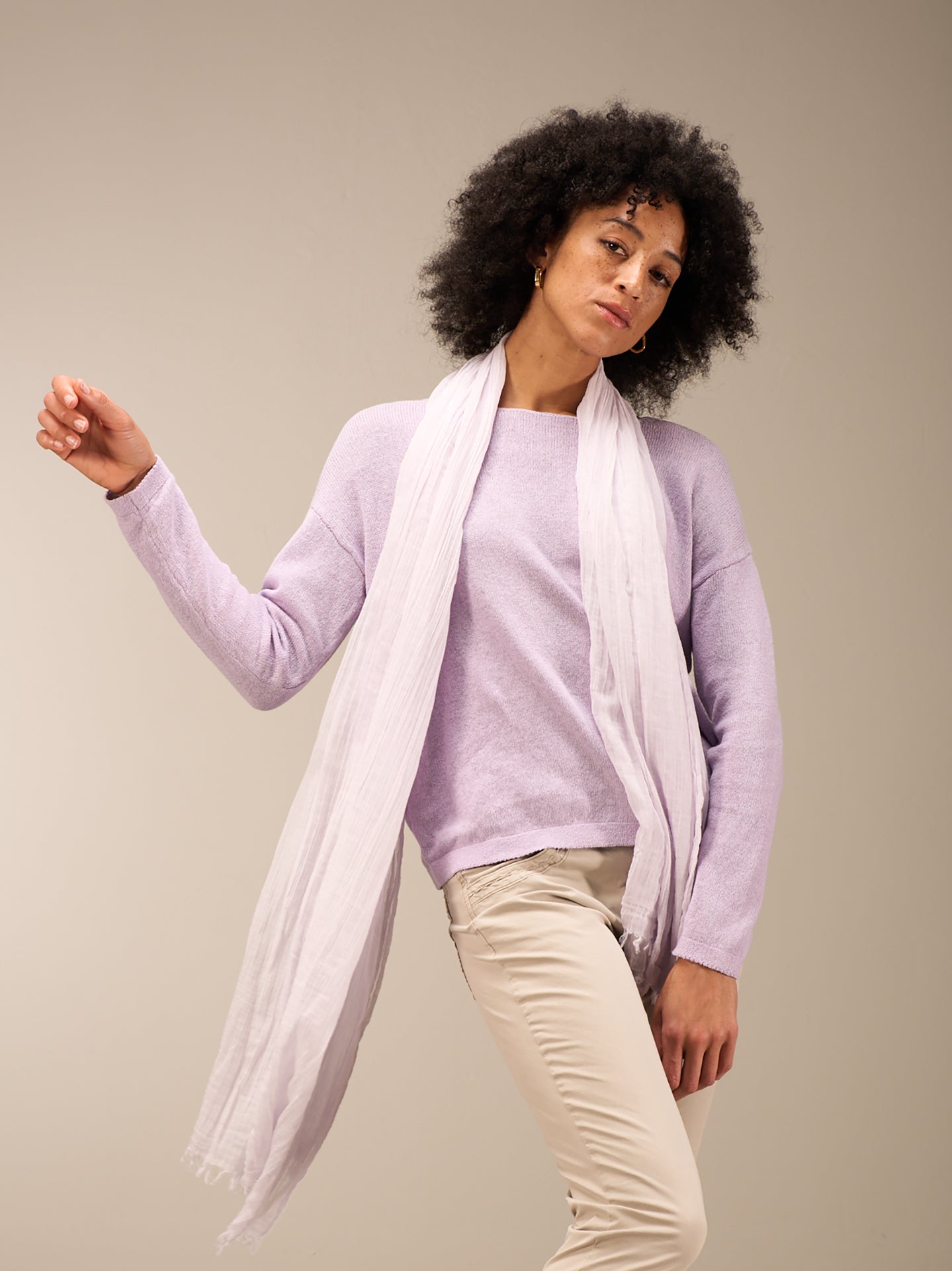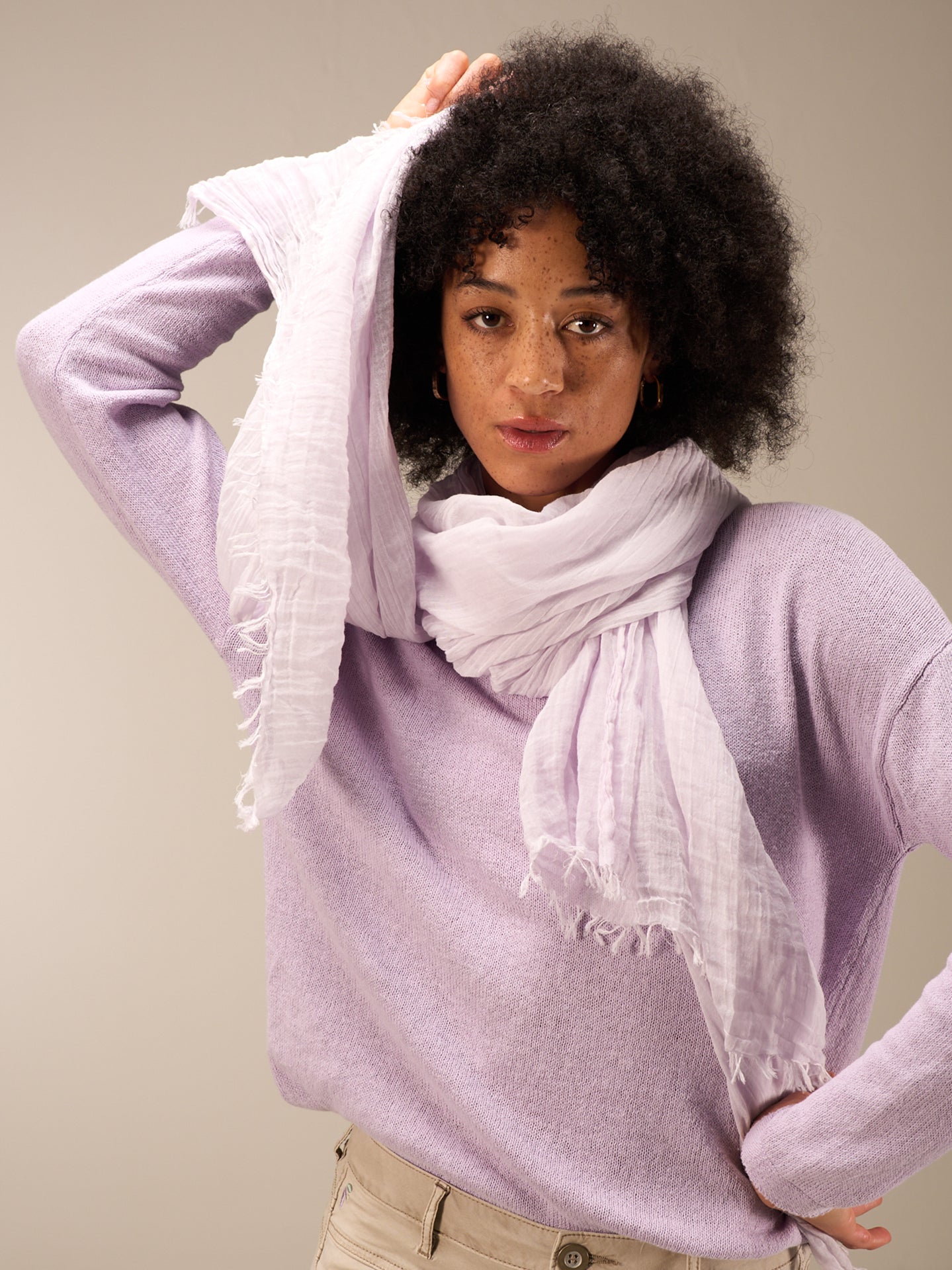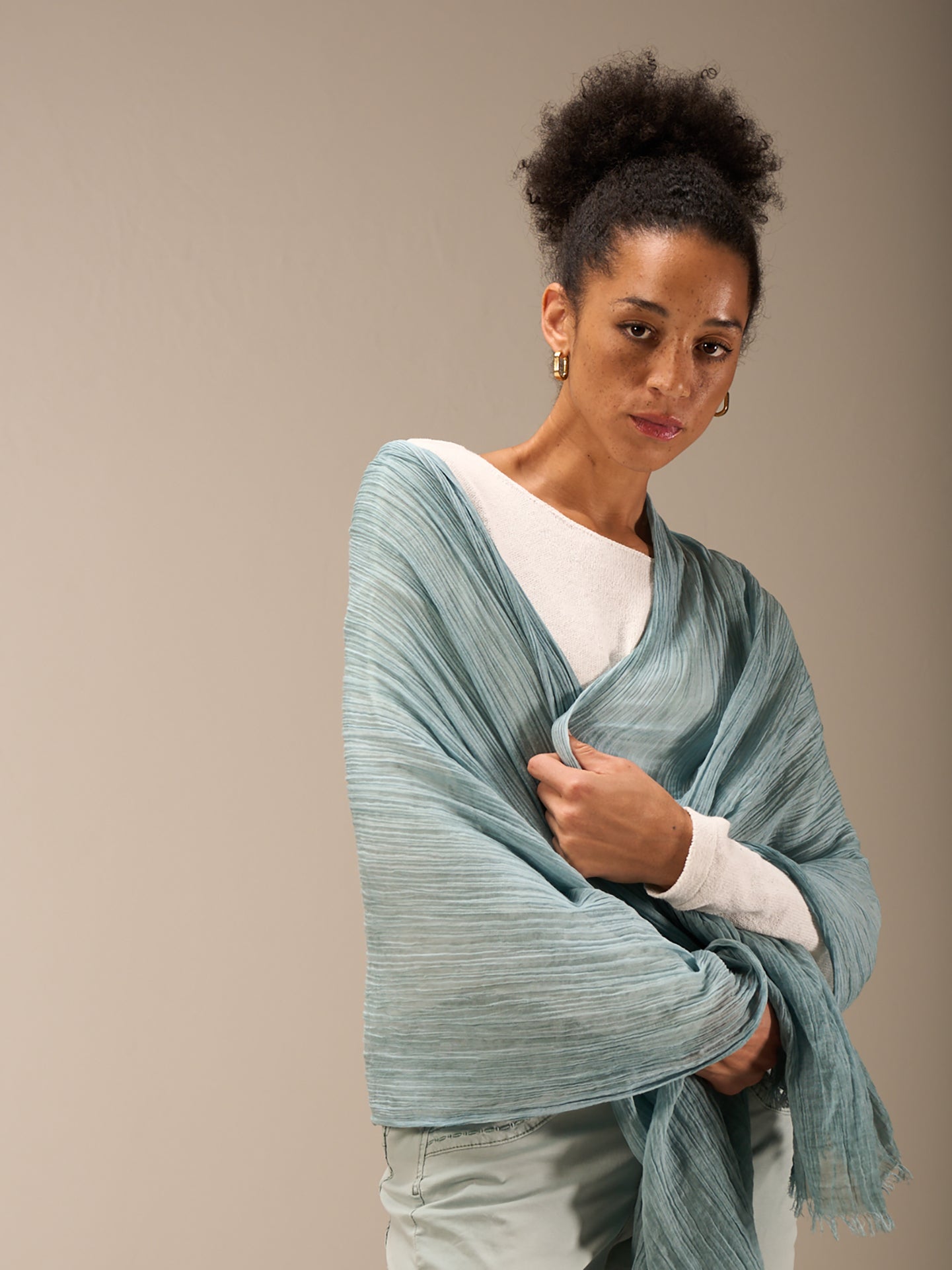 Einfarbiger Schal in der Grösse 100 x 200 cm. 100% Bio-Baumwolle aus zertifiziertem Anbau. Durch ein spezielles Färbeverfahren erhält der Schal einen schönen ausgewaschenen Look. Unregelmässigkeiten in der Farbe machen das Stück einzigartig. Der Ausbleicheffekt wird verstärkt.