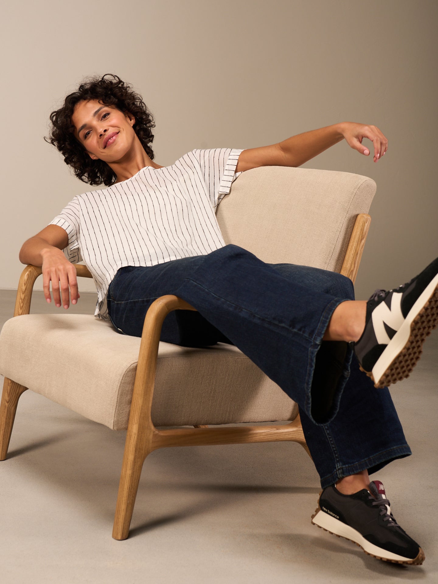 Lockere, leicht verkürzte und kastig geschnittene feminine Shirtbluse aus leichter 100% Bio-Baumwolle aus zertifiziertem Anbau.