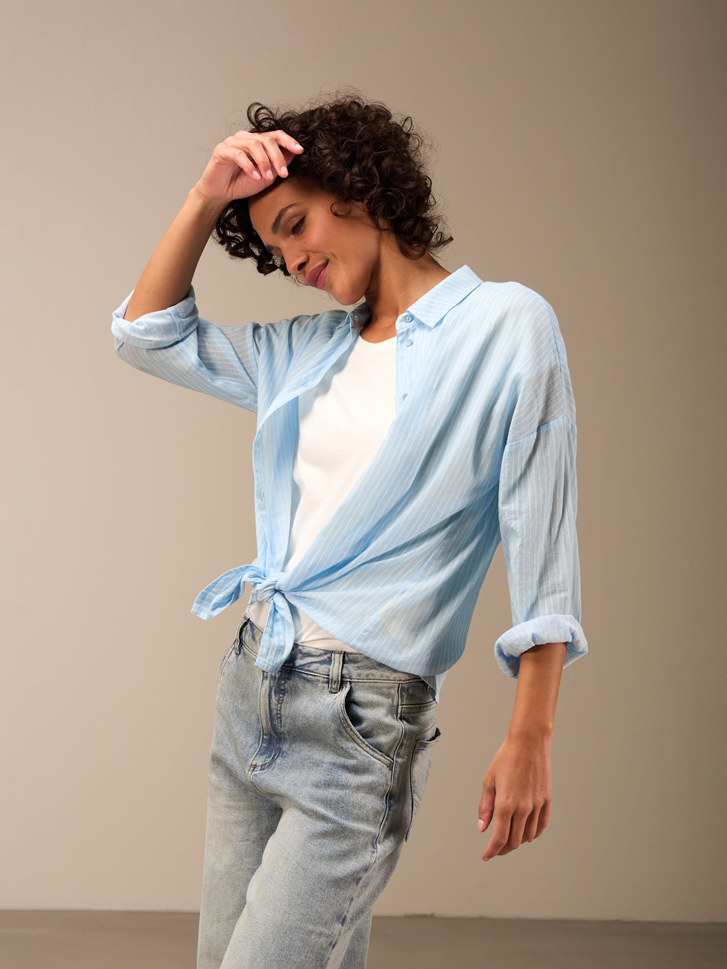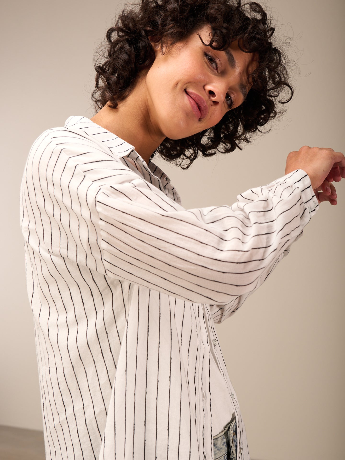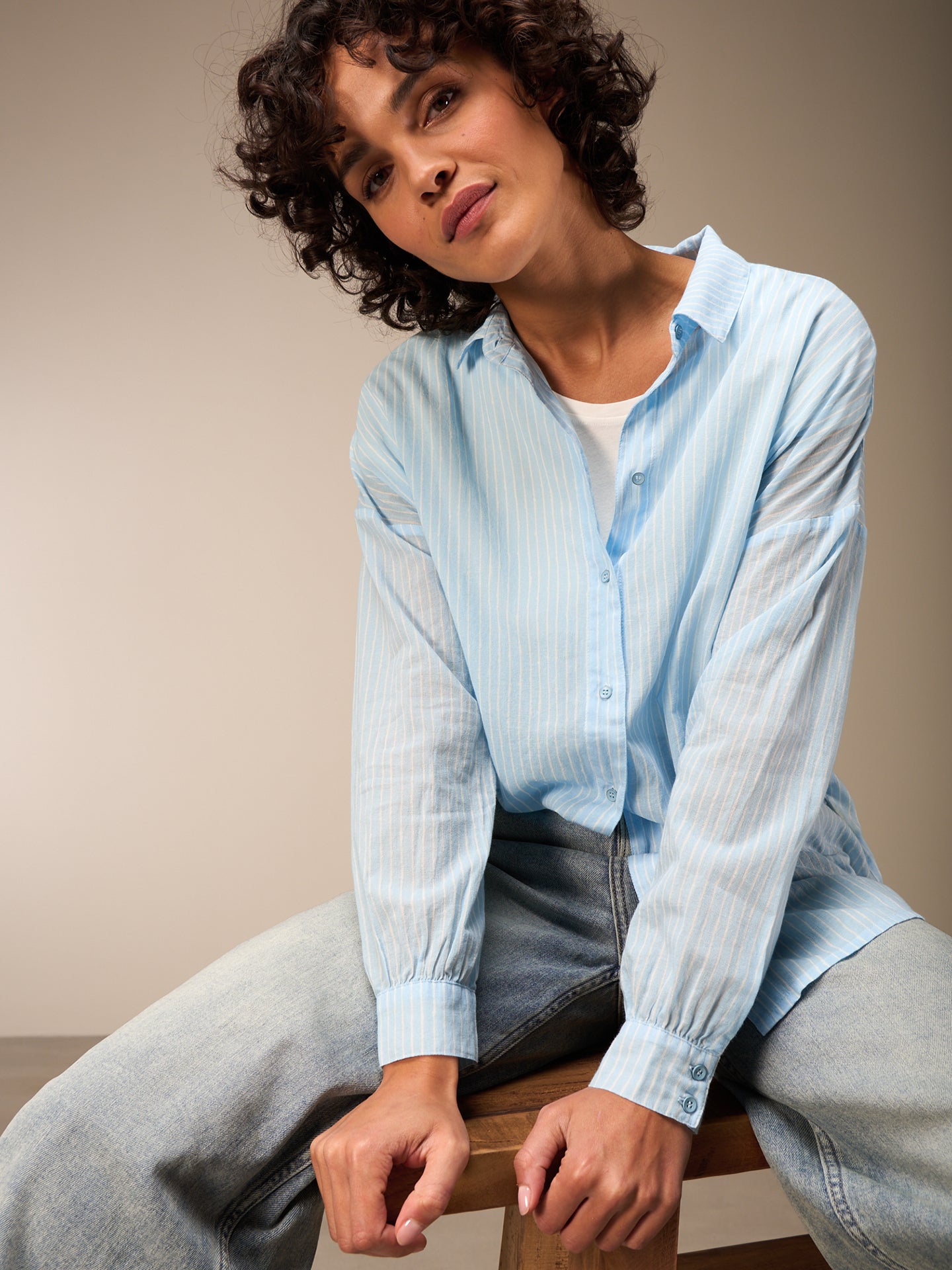 Oversize geschnittene Hemdbluse mit langen Ärmeln und Manchetten mit Knopf aus leichter 100% Bio-Baumwolle aus zertifiziertem Anbau.