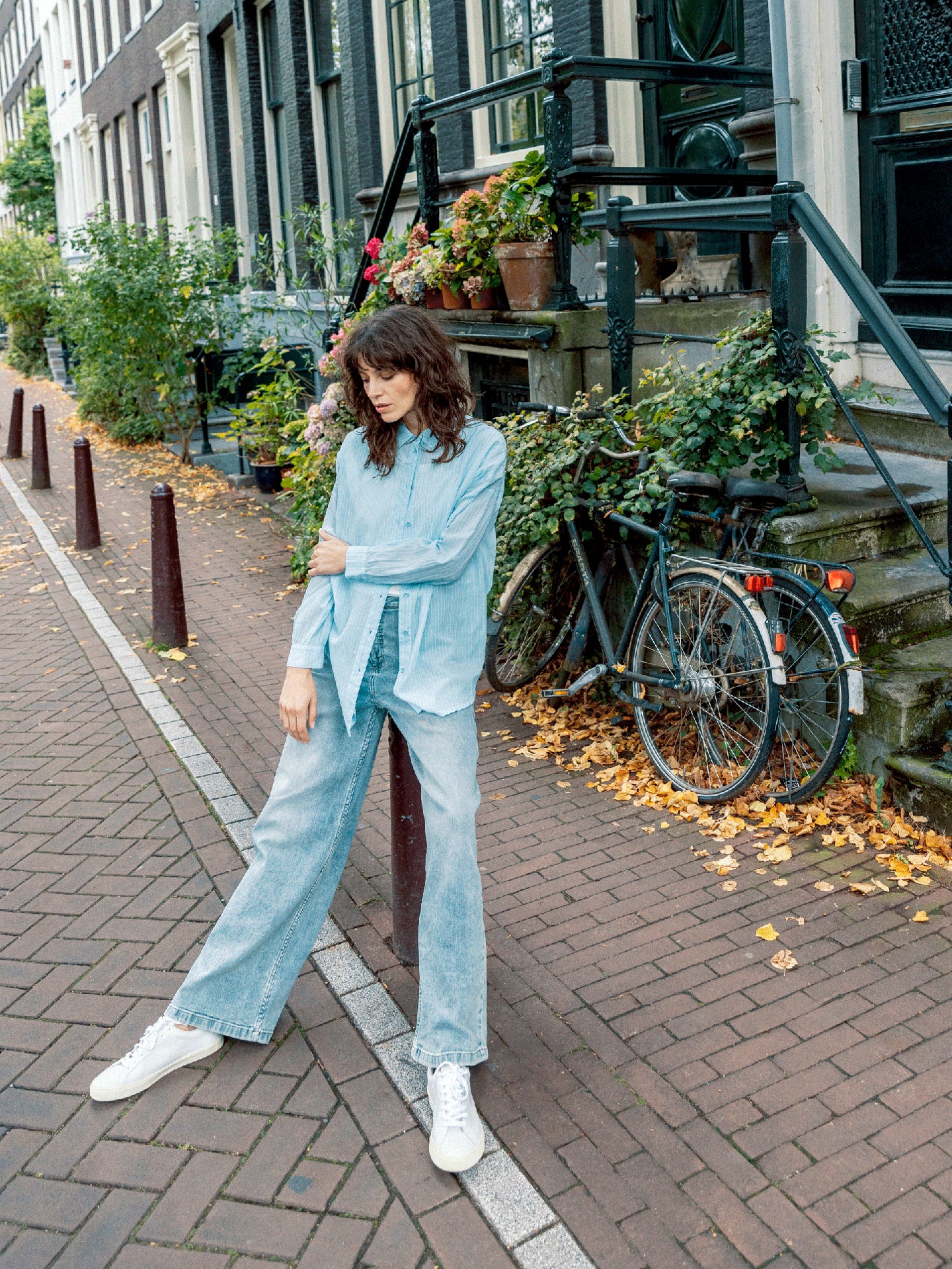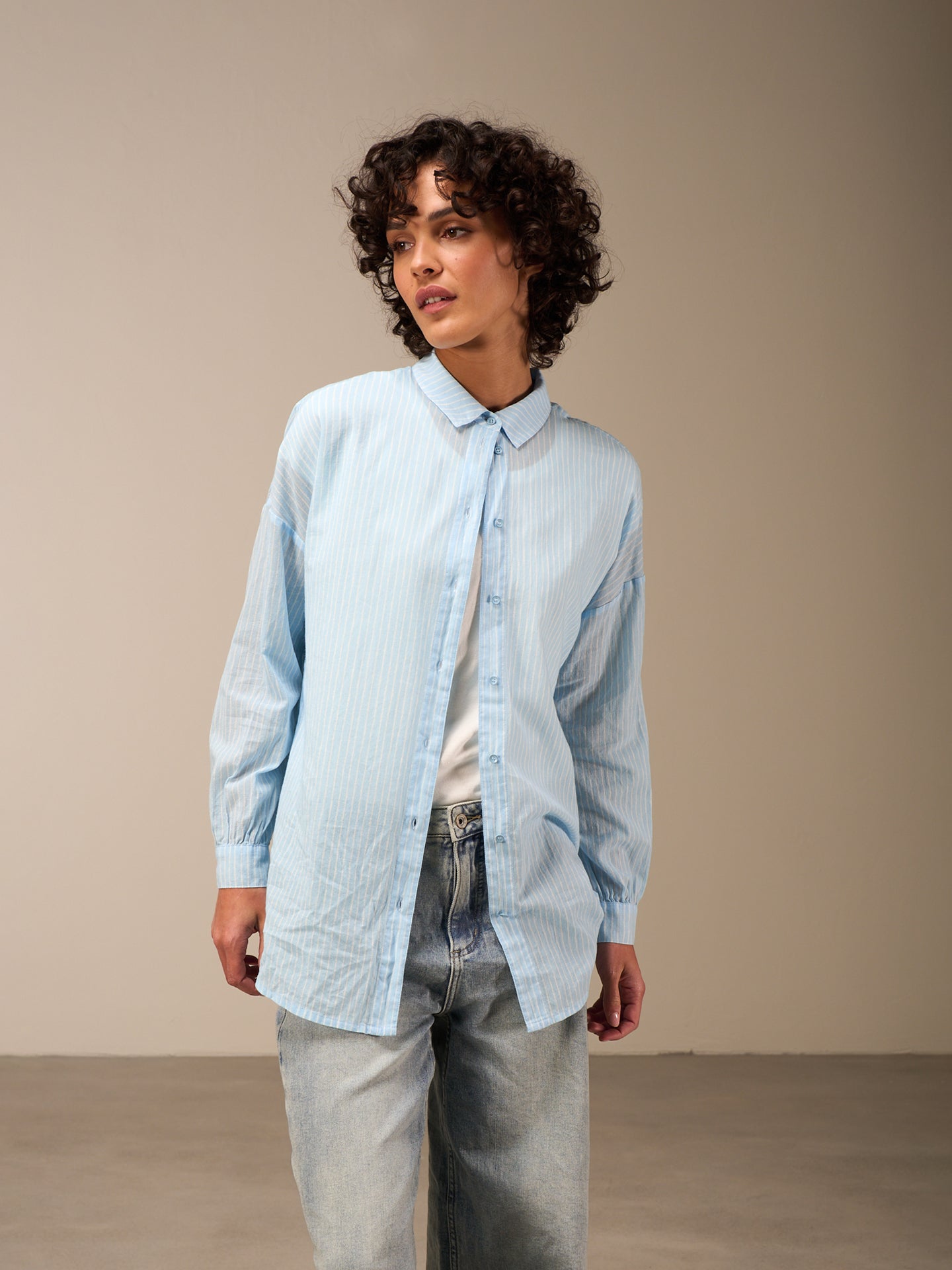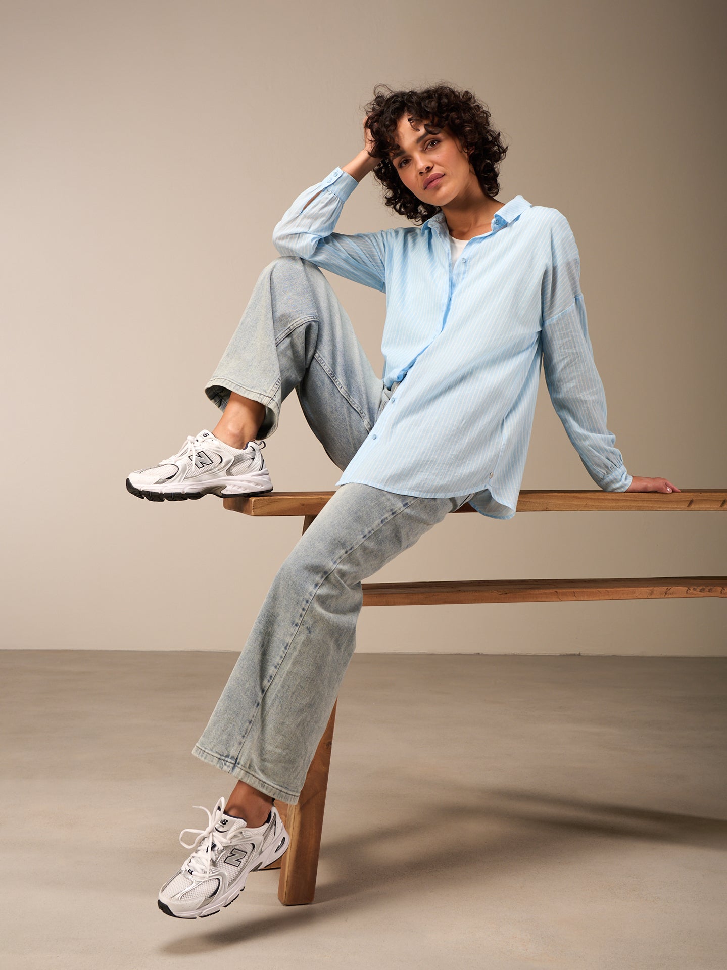 Oversize geschnittene Hemdbluse mit langen Ärmeln und Manchetten mit Knopf aus leichter 100% Bio-Baumwolle aus zertifiziertem Anbau.