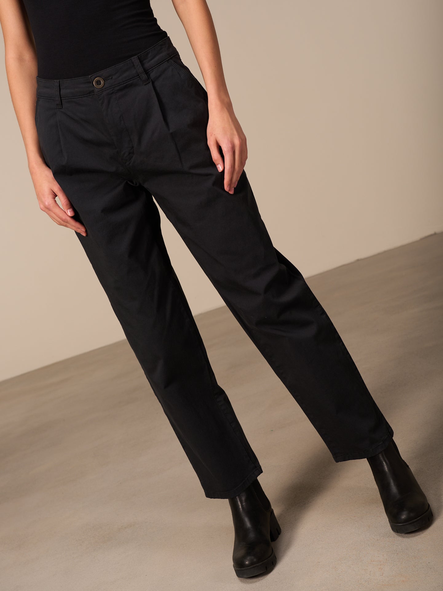 Locker sitzende Hose in angesagter O-Shape-Form mit mittelhohem Bund aus aufgerautem, angenehmen Stoff mit leichtem Satin Look.