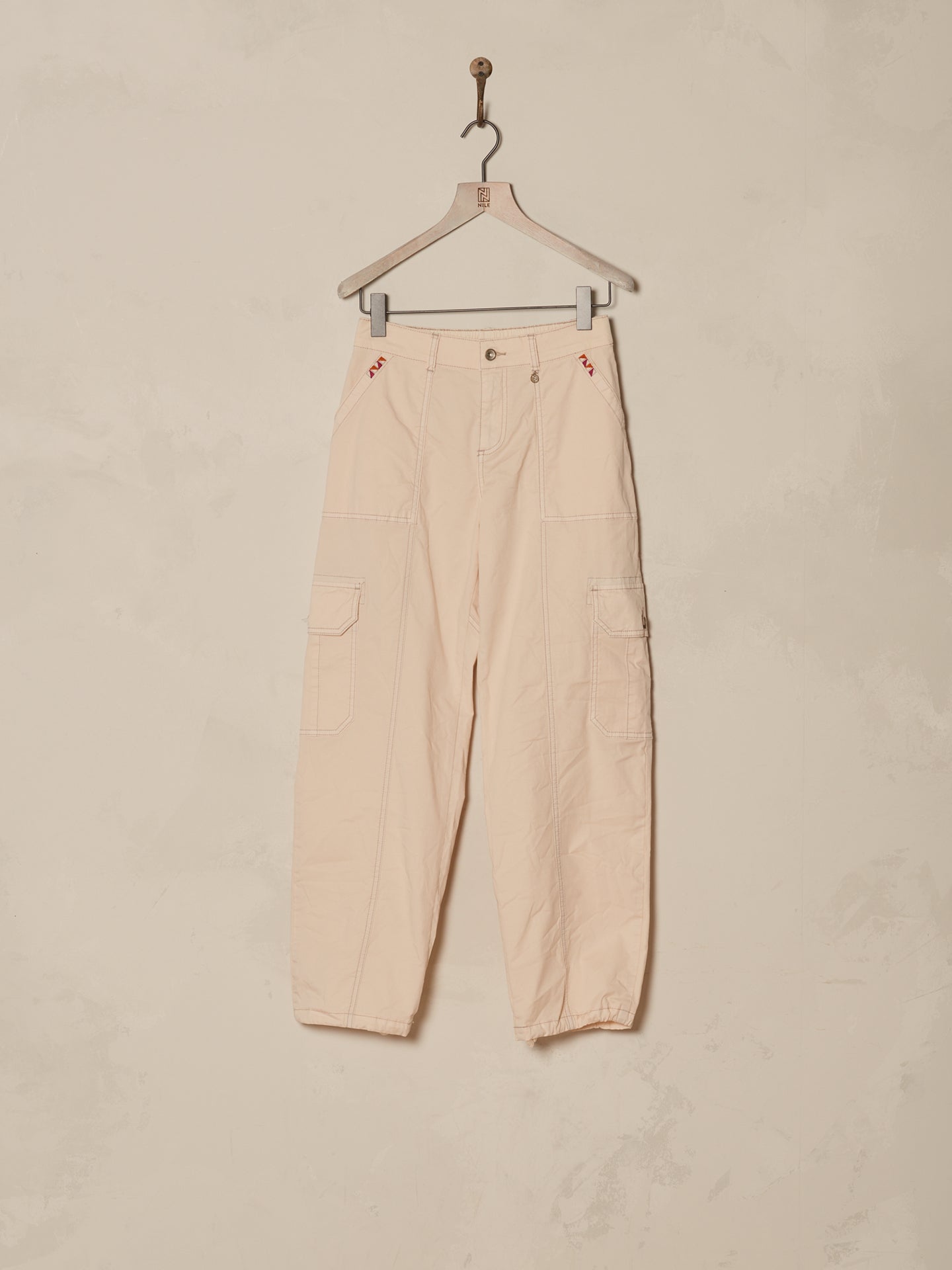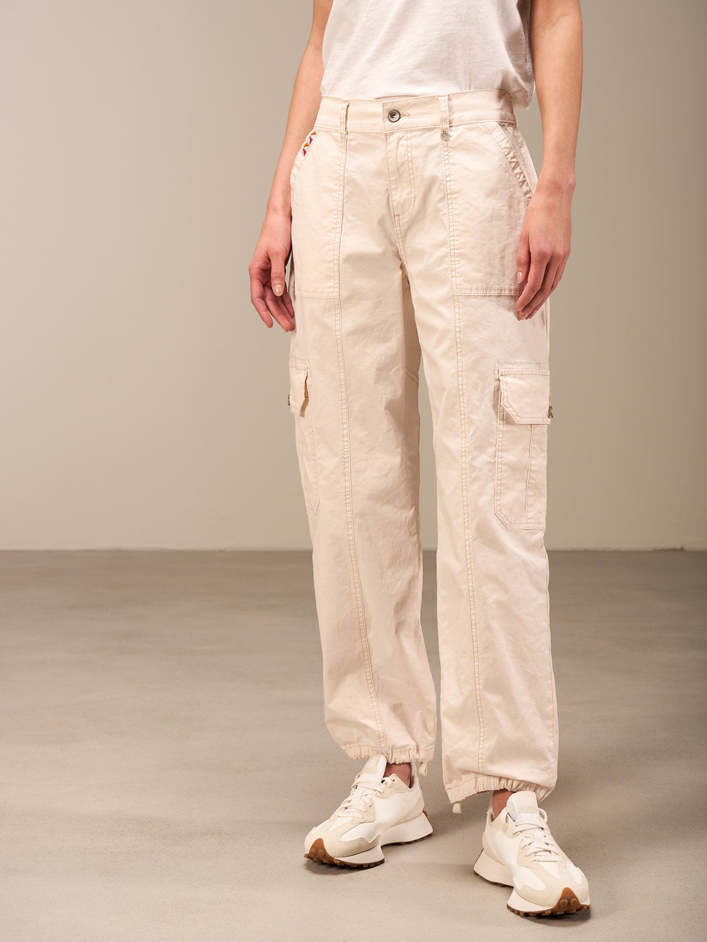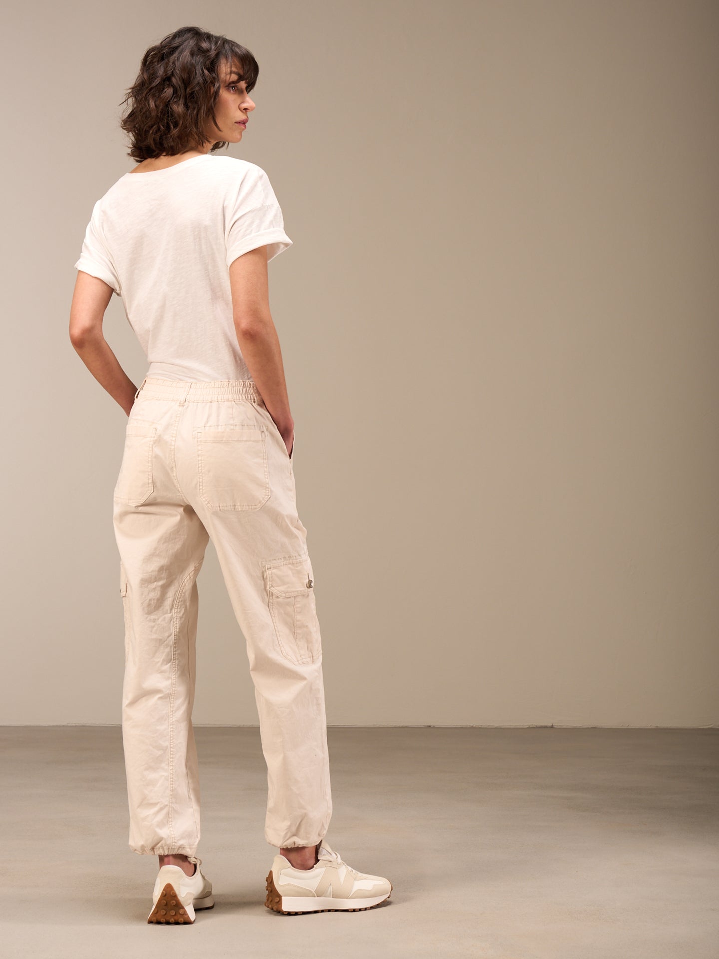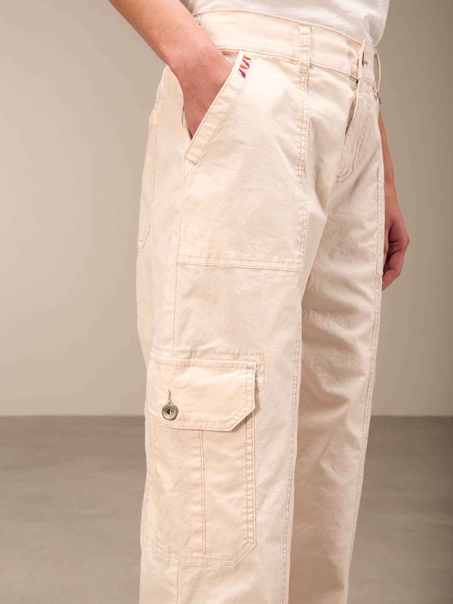 Lockere Hose im Cargostyle mit mittelhohem Bund und Gürtelschlaufen. Für den coolen Look sorgen die raffinierten Verschnittlinien und die aufgesetzten Klappentaschen am Hosenbein. Der elastische Beinabschluss und die Flachkordel darin zum Verstellen der Saumweite werten die Hose zusätzlich auf. 98% Bio-Baumwolle aus zertifiziertem Anbau und 2% Elasthan. Stückgefärbt. Unregelmässigkeiten in der Farbe machen das Stück einzigartig. Der Ausbleicheffekt wird beim Waschen verstärkt.