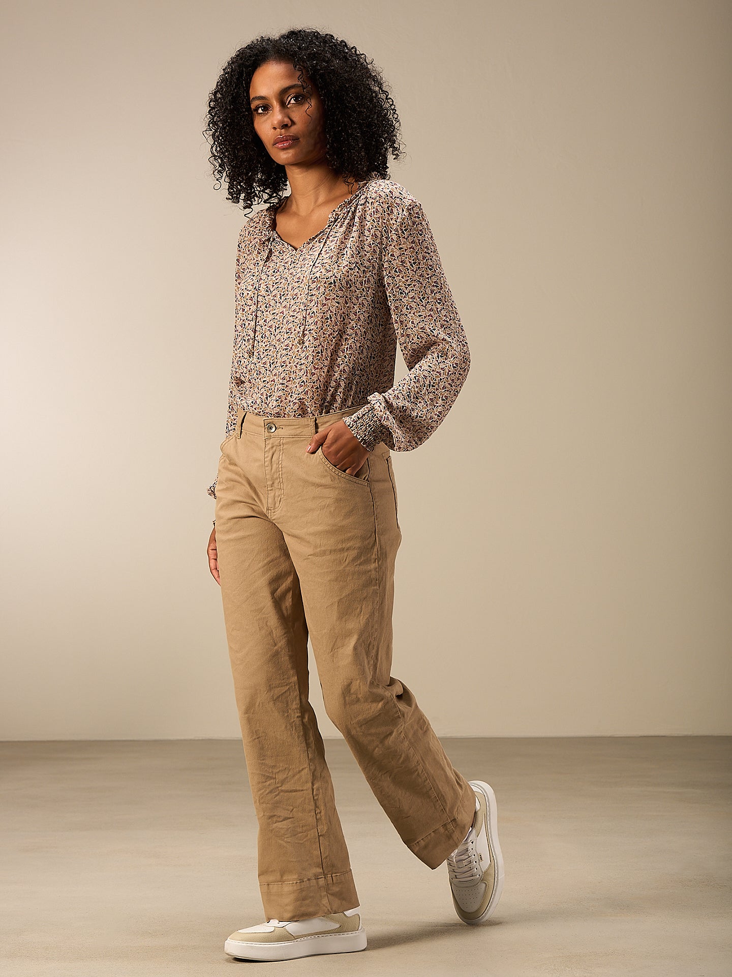 In der Hüfte anliegende elastische Hose mit feiner Struktur und mittelhohem Hosenbund und gerade geschnittenem Bein. Der breite Saumumschlag wertet die Hose zusätzlich auf. 98% Bio-Baumwolle aus zertifiziertem Anbau und 2% Elasthan. Unregelmässigkeiten in der Farbe machen das Stück einzigartig. Der Ausbleicheffekt wird beim Waschen verstärkt.