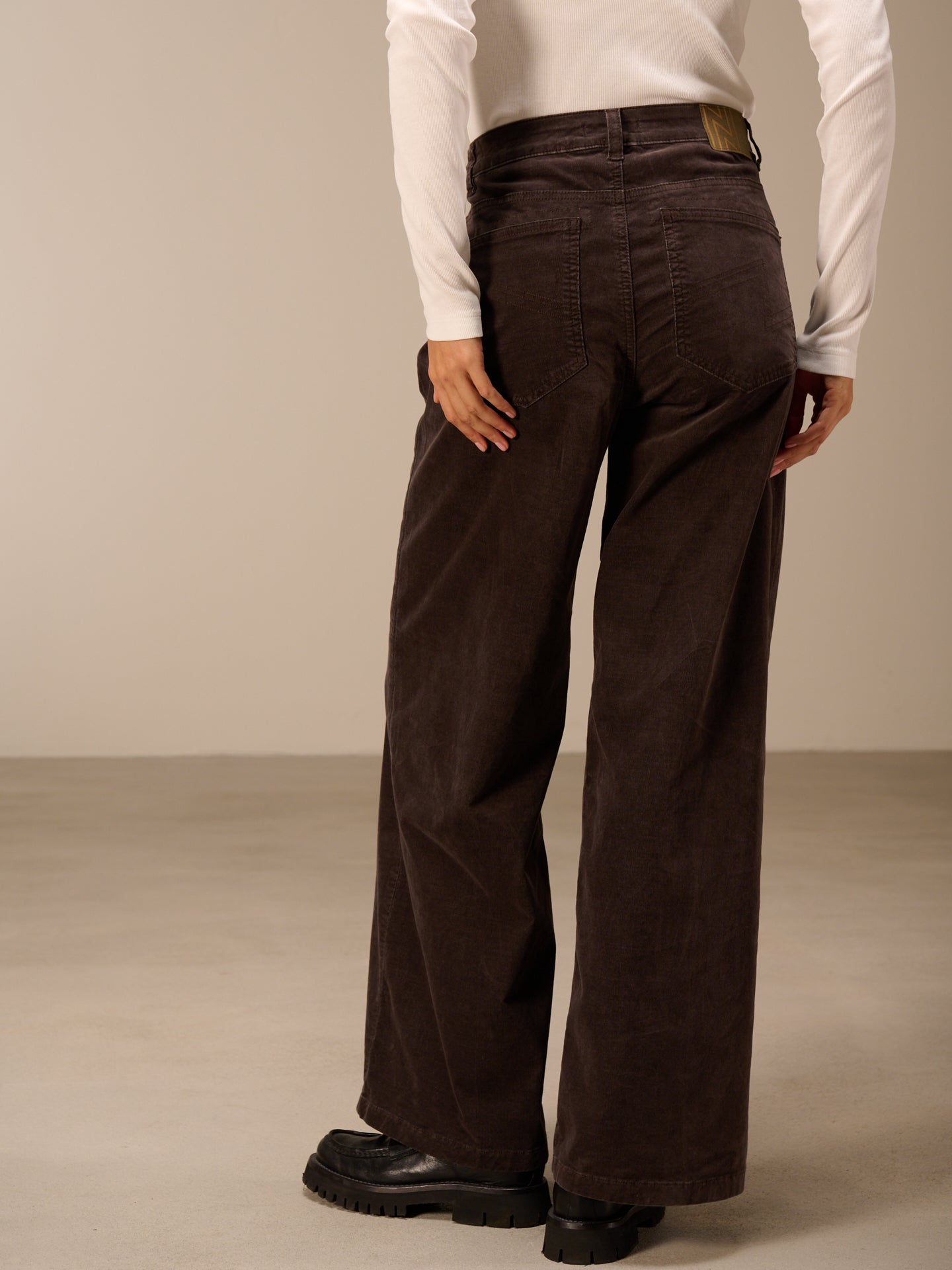 Hose mit weitem, dezent ausgestelltem Bein und einem mittelhohen Bund. Die Hose ist stückgefärbt, was zu Unregelmässigkeiten in der Farbe führt, den Ausbleicheffekt verstärkt und das Stück einzigartig macht.