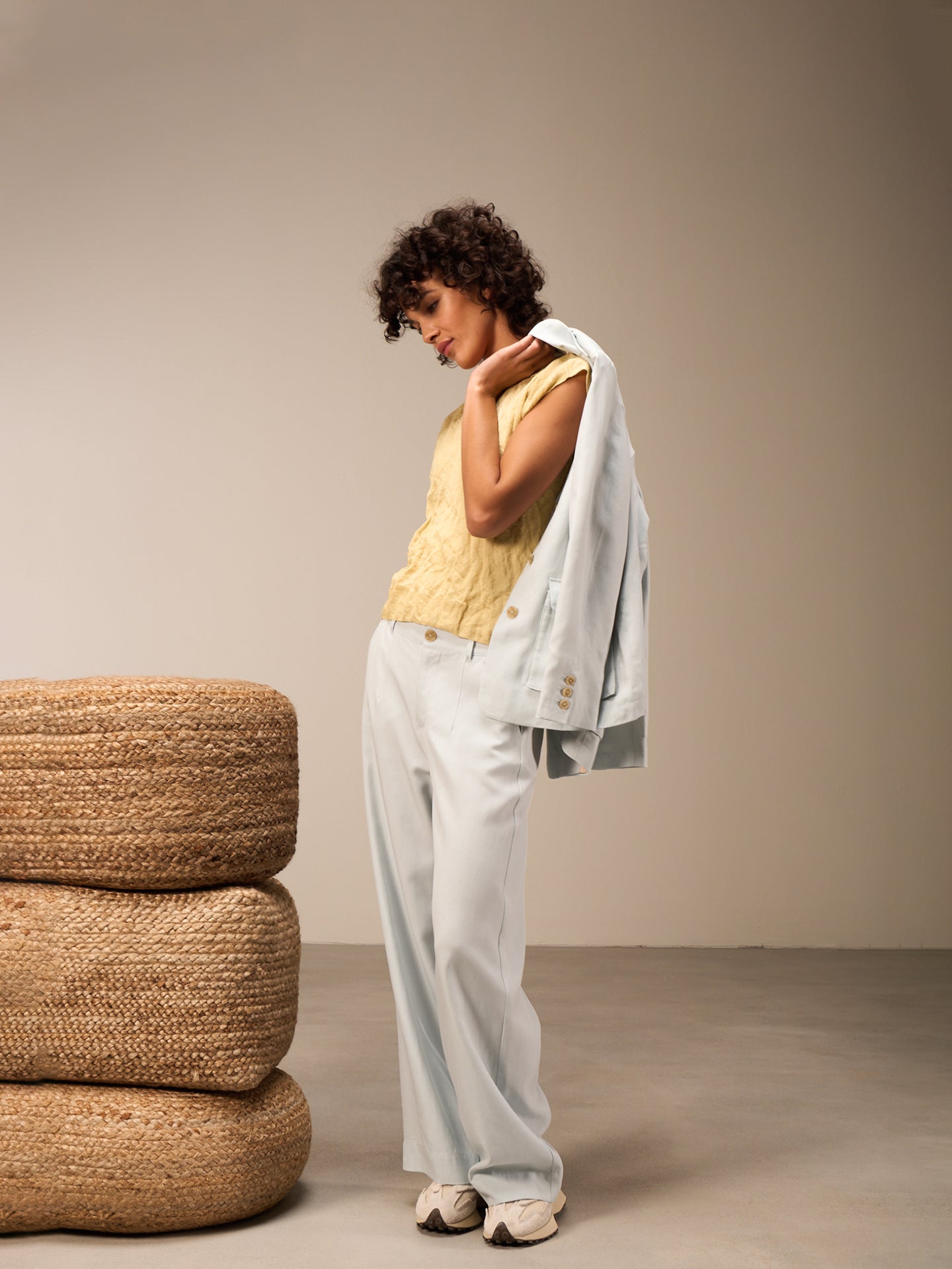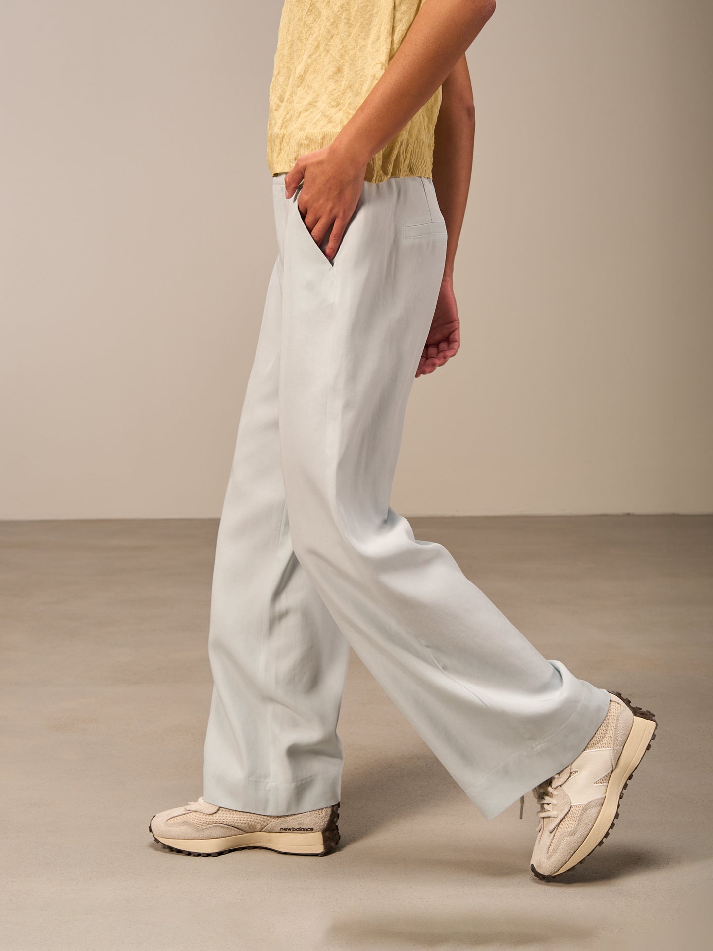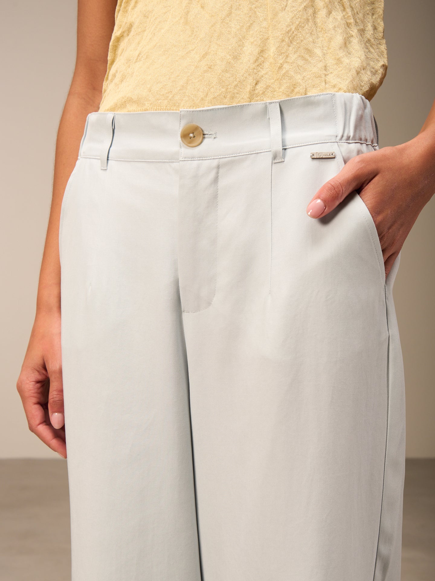 Lange Hose mit Elastikbund hinten für eine bequeme Passform und weitem, fliessendem Bein und einem mittelhohen Bund.