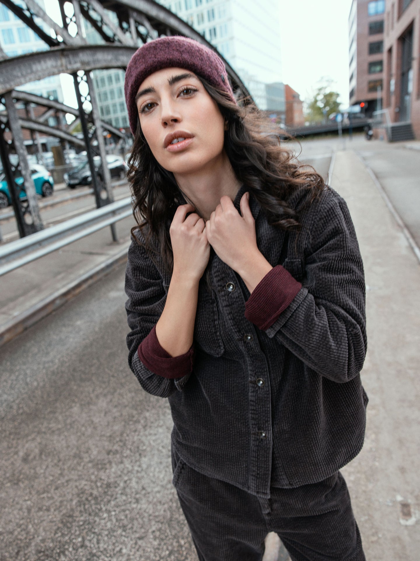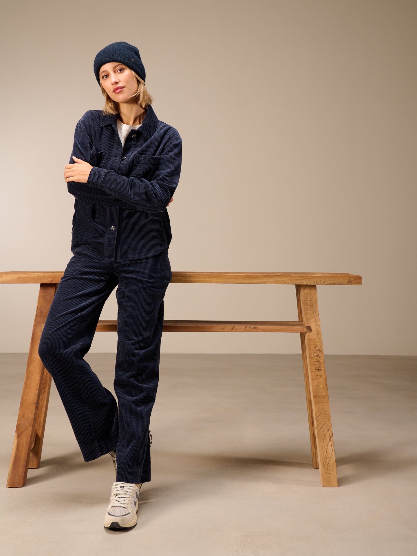 Kurz geschnittene, lässige Jacke in samtartigen Längsrippen mit Hemdkragen und zwei aufgesetzten Brusttaschen. Aus Bio-Baumwolle ohne Stretchanteil. Stückgefärbt. Unregelmässigkeiten in der Farbe machen das Stück einzigartig.