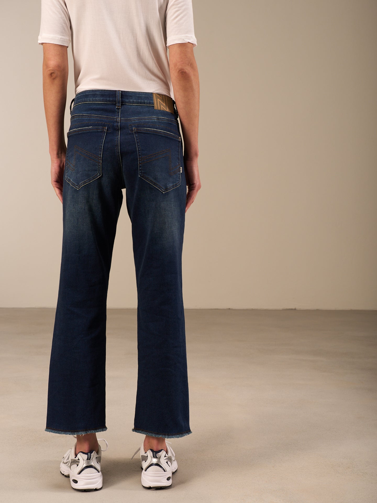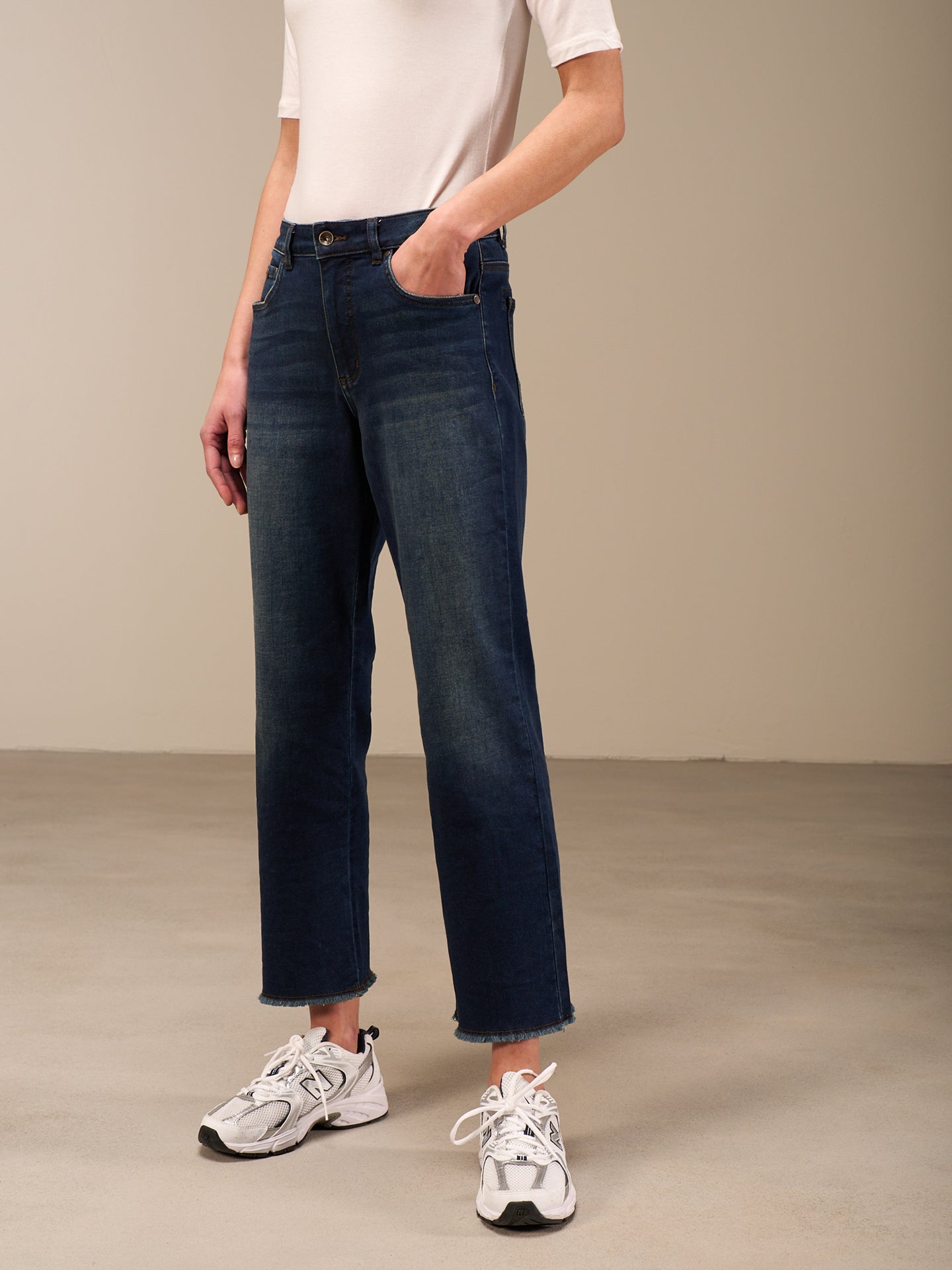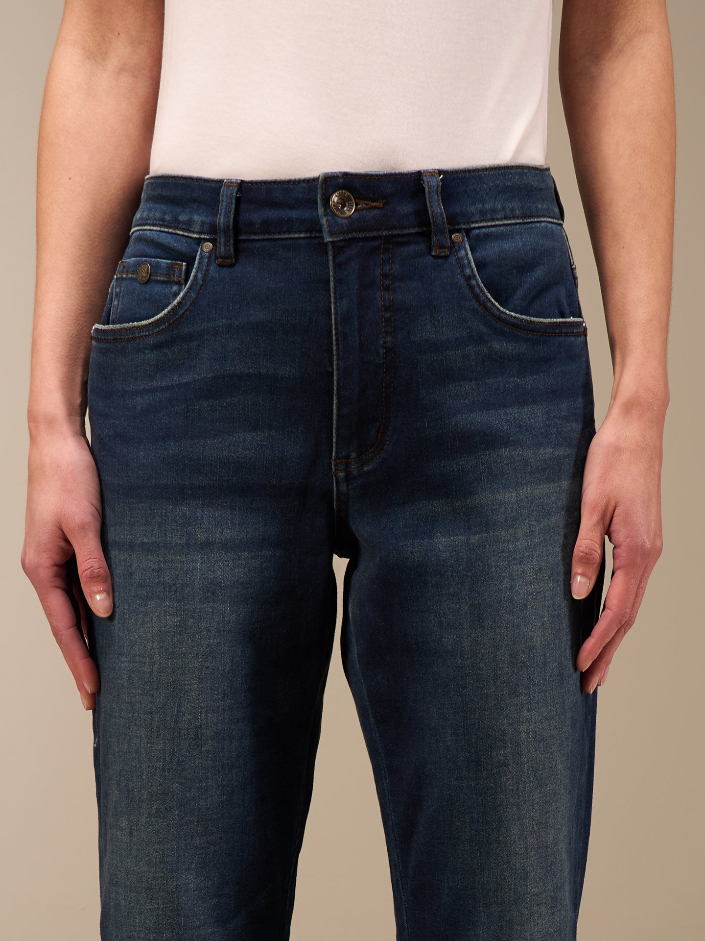 Hose im Bootcut-Schnitt mit dezent ausgestelltem Bein und körperbetontem Sitz am Oberschenkel. Der dekorative Fransenabschluss rundet den Style ab. 63% Bio-Baumwolle aus zertifiziertem Anbau. Durch den hohen Anteil von 24% Elasthan, 12% Viskose und 1% Polyester entsteht ein wunderbar stretchiges Tragegefühl. Durch spezielle Waschungen wird der gewünschte Farbeffekt erreicht. Unregelmässigkeiten in der Farbe machen das Stück einzigartig. Der Ausbleicheffekt wird verstärkt.