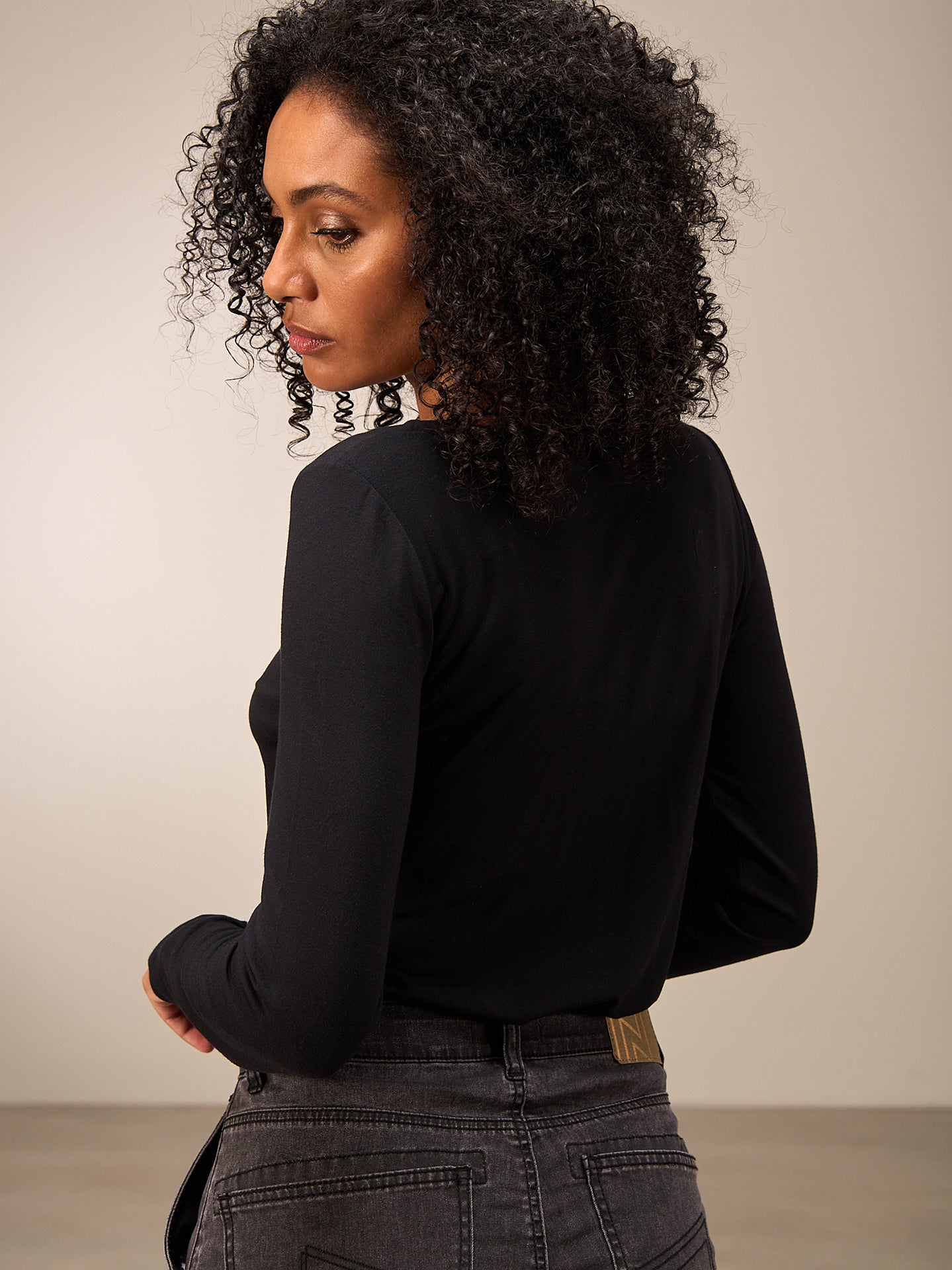Locker geschnittenes Langarmshirt mit Rundhalsausschnitt und dekorativen Seitenschlitzen. 69% Modal ( TENCELTM-zertifiziert ), 26% Lyocell und 5% Elasthan.