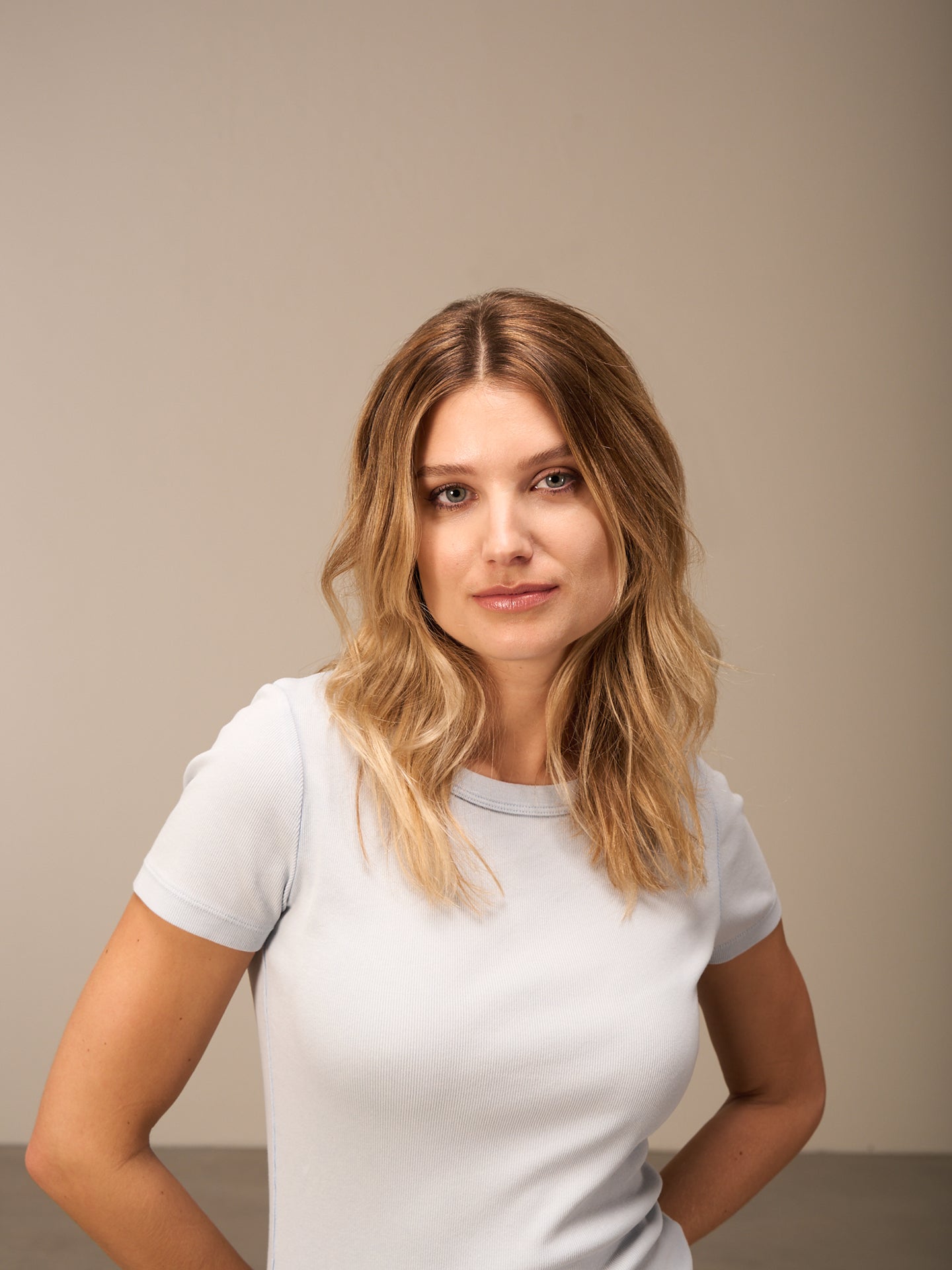 Figurbetontes Kurzarmshirt mit hohem Rundhalsausschnitt in weicher Rippqualität. Stückgefärbt. 94% GOTS-zertifizierte Bio-Baumwollqualität und 6% Elasthan.