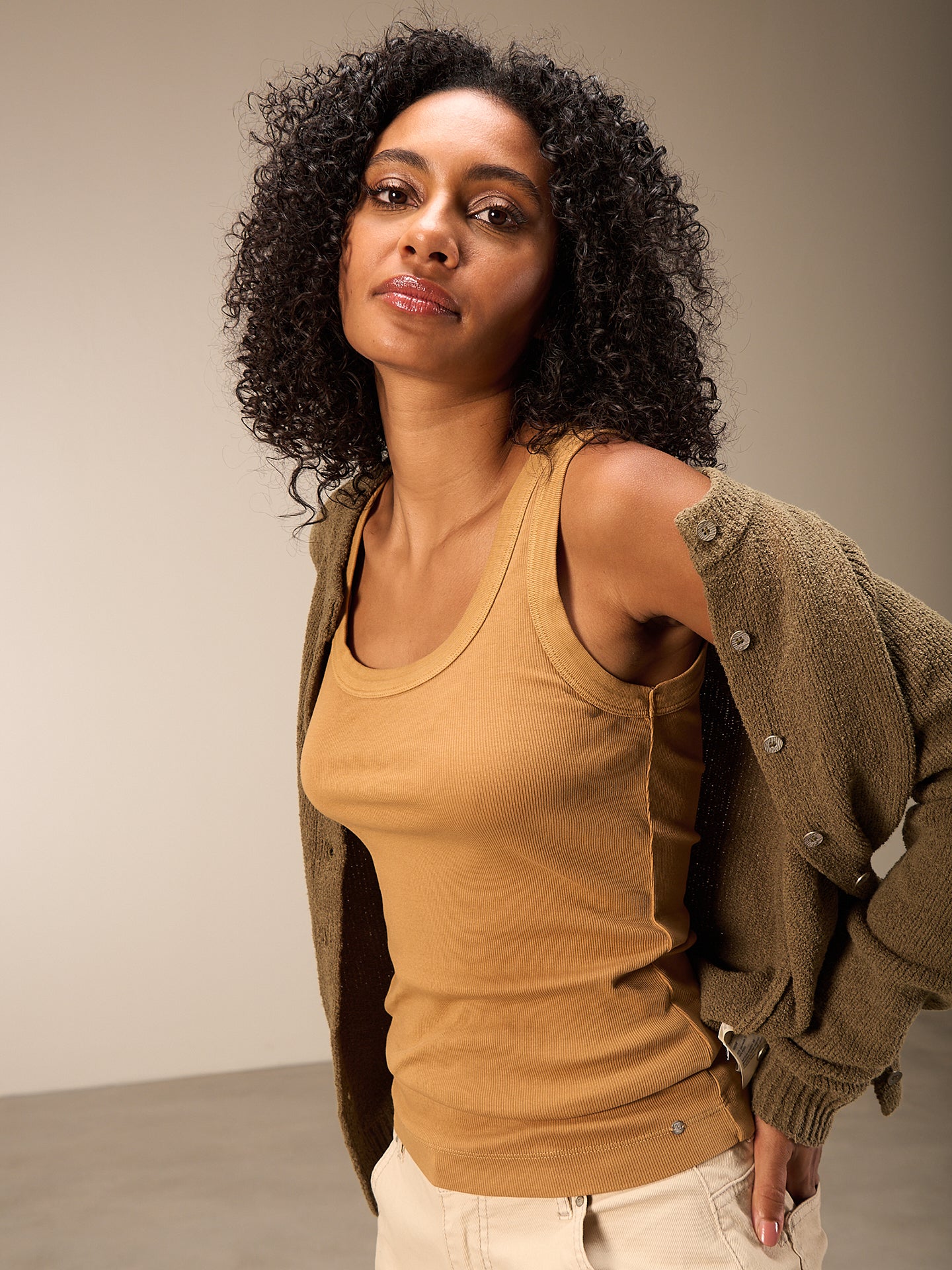 Figurbetontes Top mit Rundhalsausschnitt in weicher Rippqualität. Stückgefärbt. 94% GOTS-zertifizierte Bio-Baumwollqualität und 6% Elasthan.