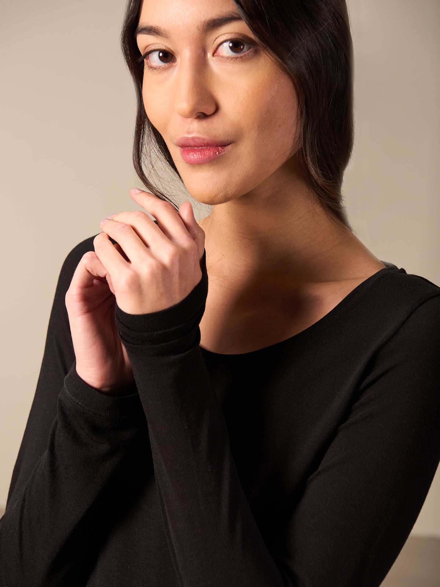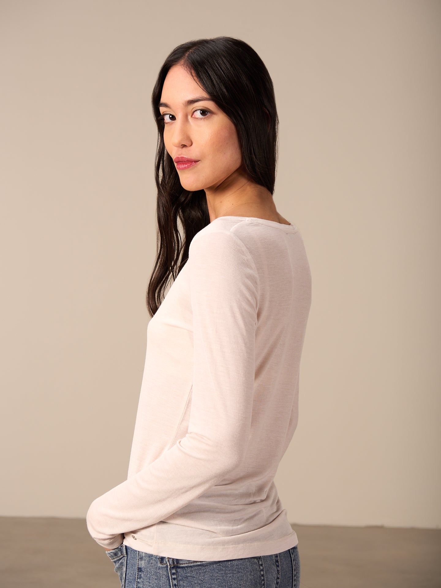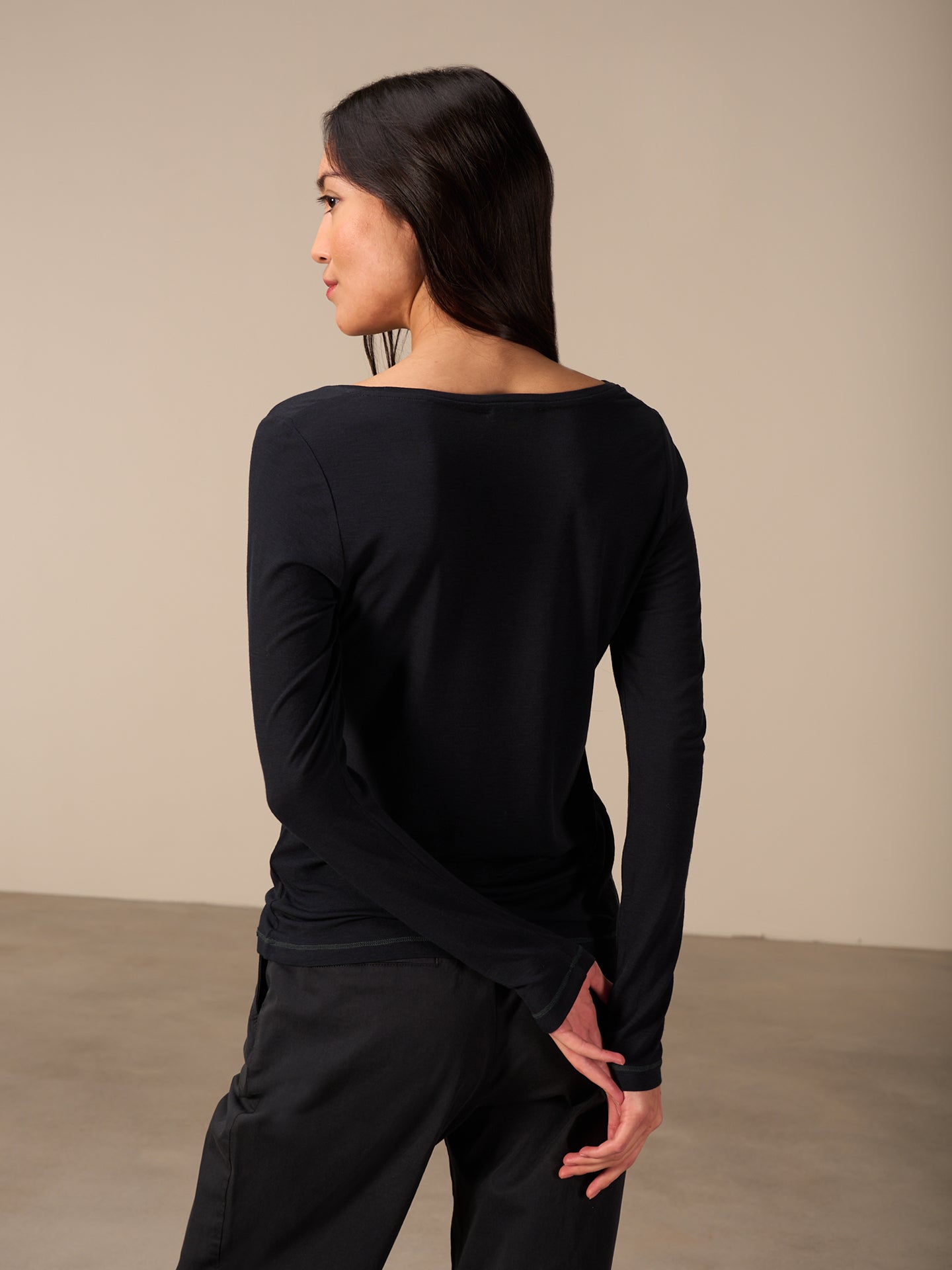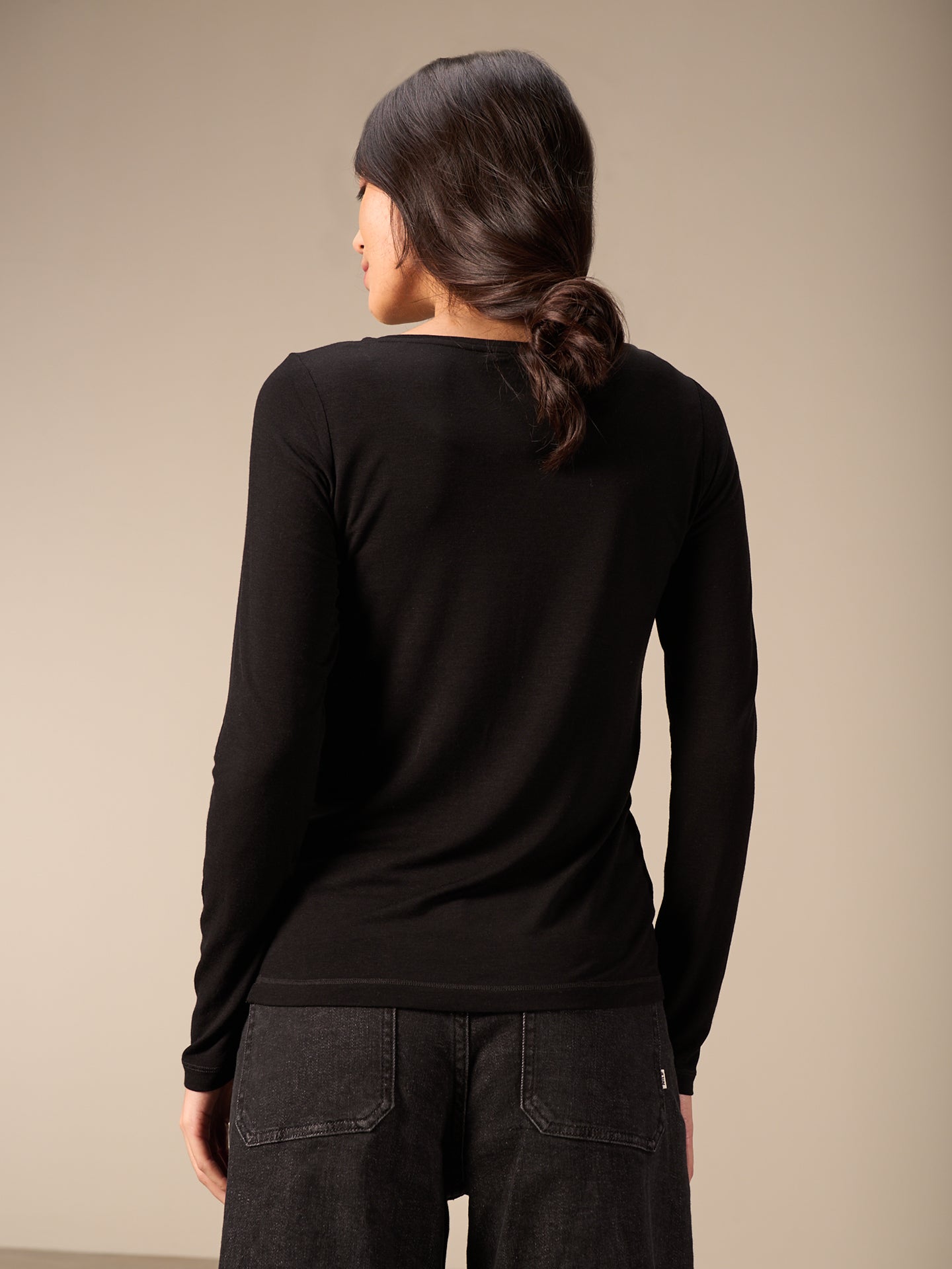 Locker geschnittenes Langarmshirt mit Rundhalsausschnitt und dekorativen Seitenschlitzen.