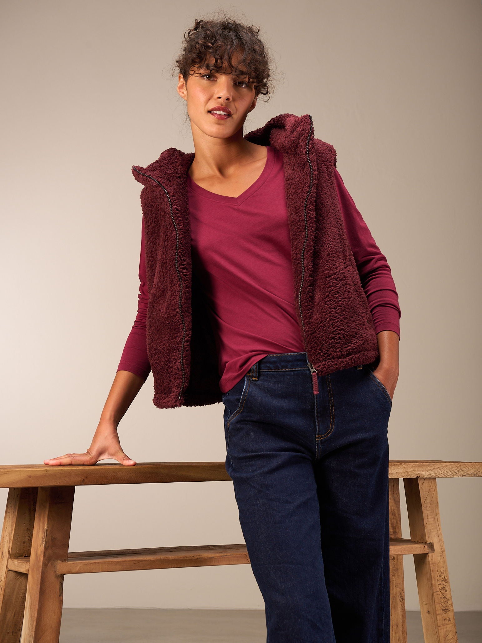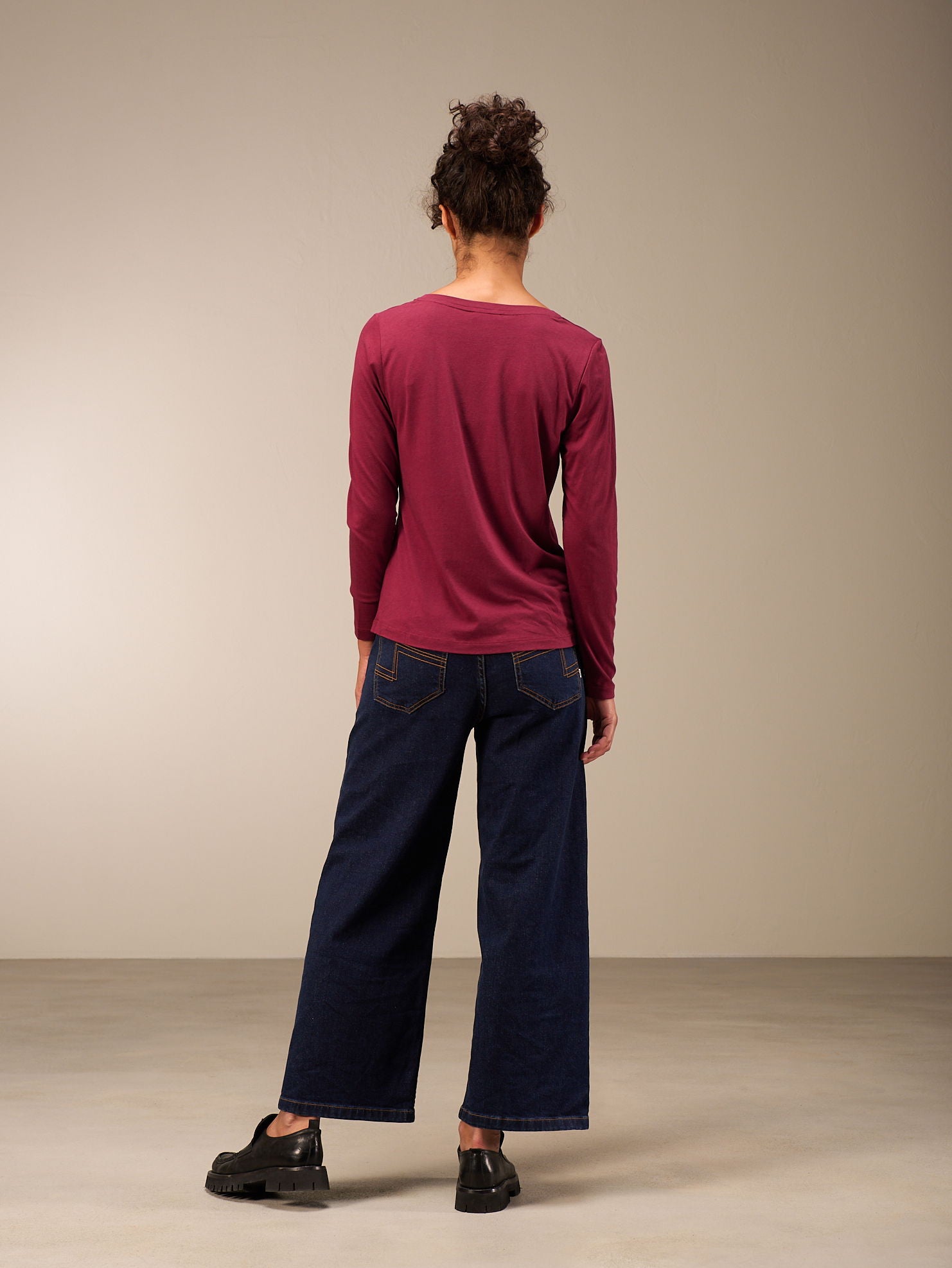 Lässig geschnittenes Langarm Shirt mit V-Ausschnitt und langen schmalen Ärmeln.