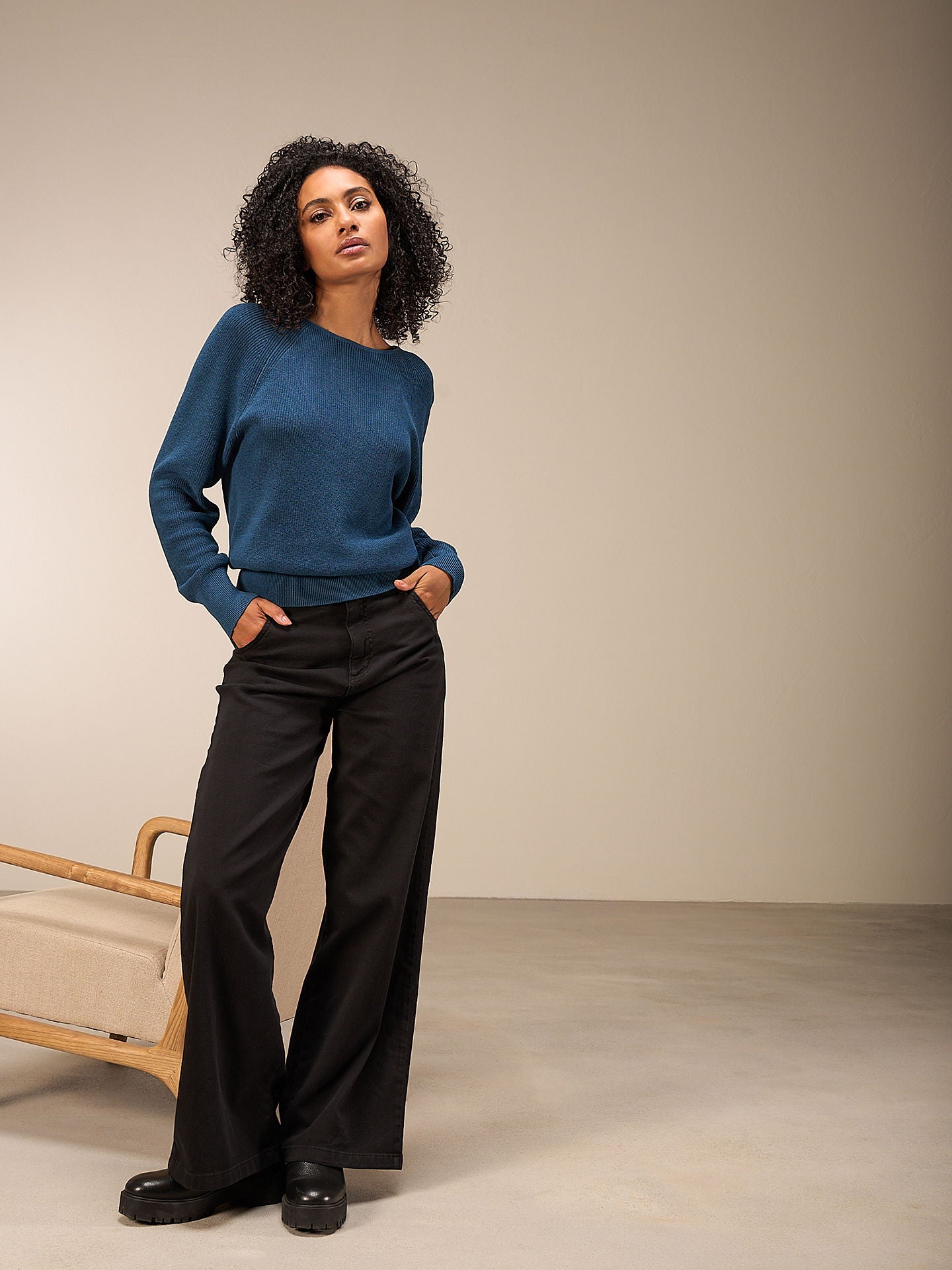 Lockerer Pullover mit spannendem Strickmustermix in Melangegarn, weiten Raglanärmeln und Rippenborte an Ärmeln und Saum. 60% Bio-Baumwolle aus OCS-zertifiziertem Anbau und 40% recyceltes Polyester. Der Organic Content Standard (OCS) überprüft den Anteil an biologisch angebauten Materialien in einem Endprodukt und stellt durch lückenlose Rückverfolgbarkeit sicher, dass die Angaben zum biologischen Materialanteil korrekt sind.